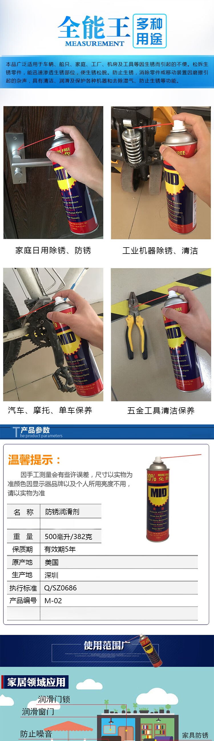 MID anti-rust lubricant anti-rust oil rust remover bolt loosening agent 500ML330g single 330g