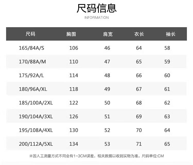 China (cm) 165 / 88-90 170 / 96-98 175 / 108-110 180 / 118-122 185 / 126-130