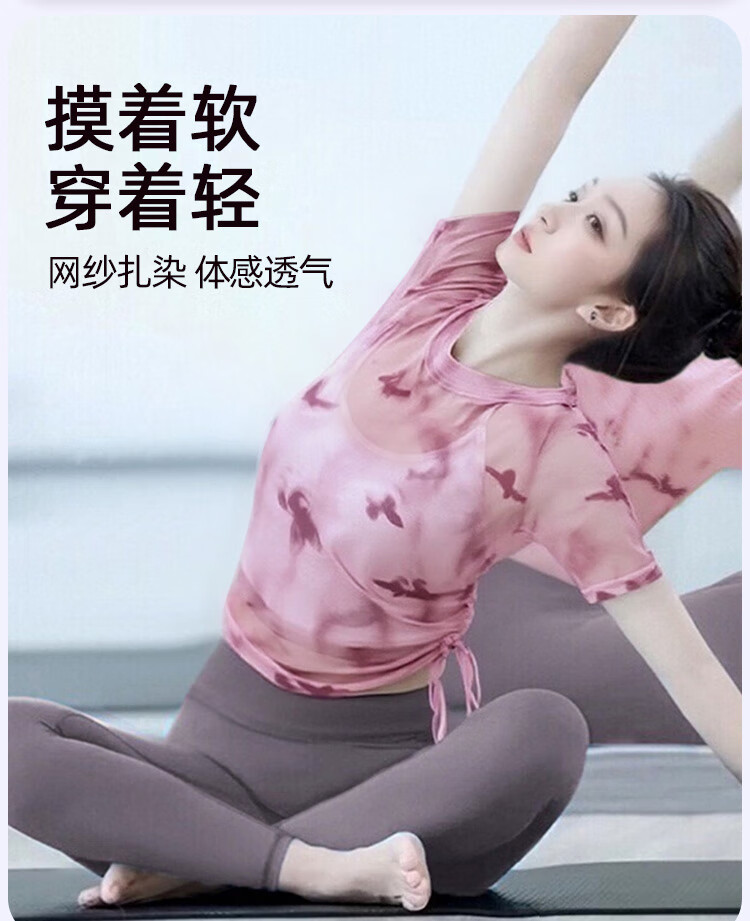 Double show 2025 super hot yoga wear Chinese style sports blouse dance training Pilates short-sleeved tops high-end fitness suit pink blouse + white bra + Haiyueyan pants M 80-100