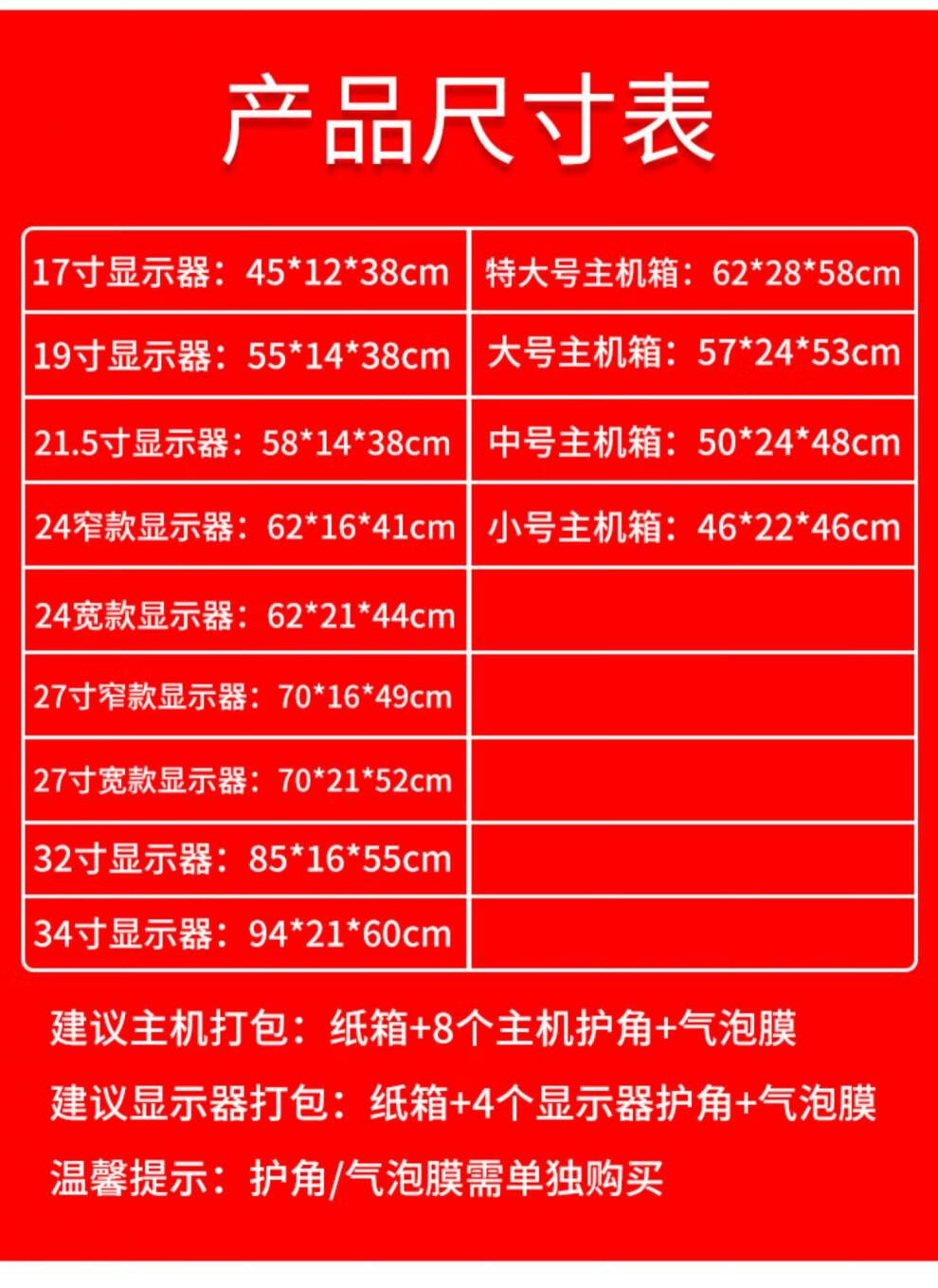 Shantou Lincun monitor packaging box with foam 24-inch desktop computer carton 32 host packaging box 27 curved screen box single box with drawings host box large