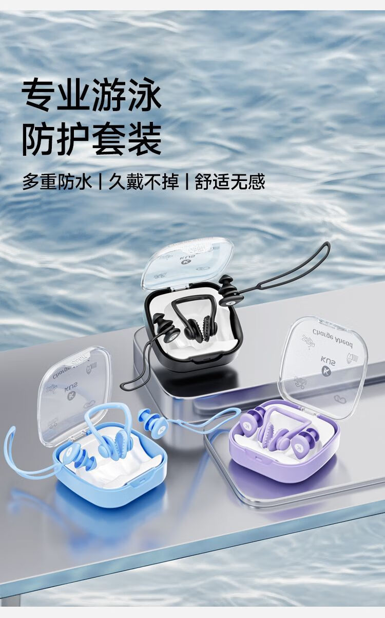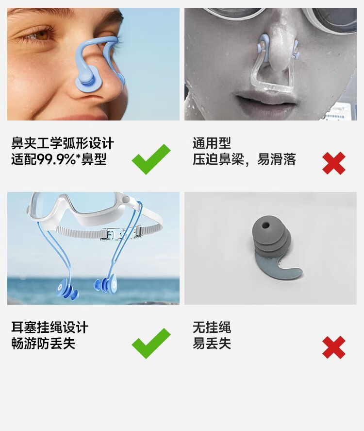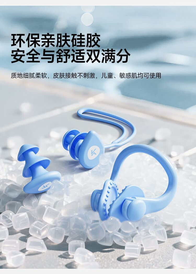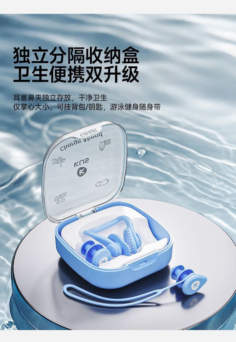 Children's swimming earplugs waterproof professional bathing anti-water ingress no sound insulation anti-choking artifact adult nose clip set clear sky blue nose clip + earplugs universal style - detachable lanyard