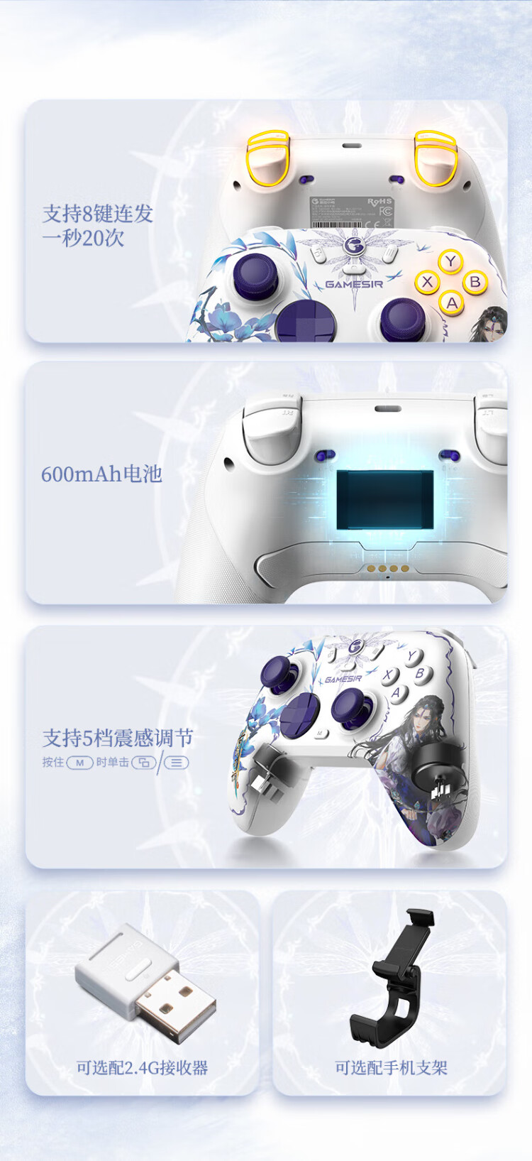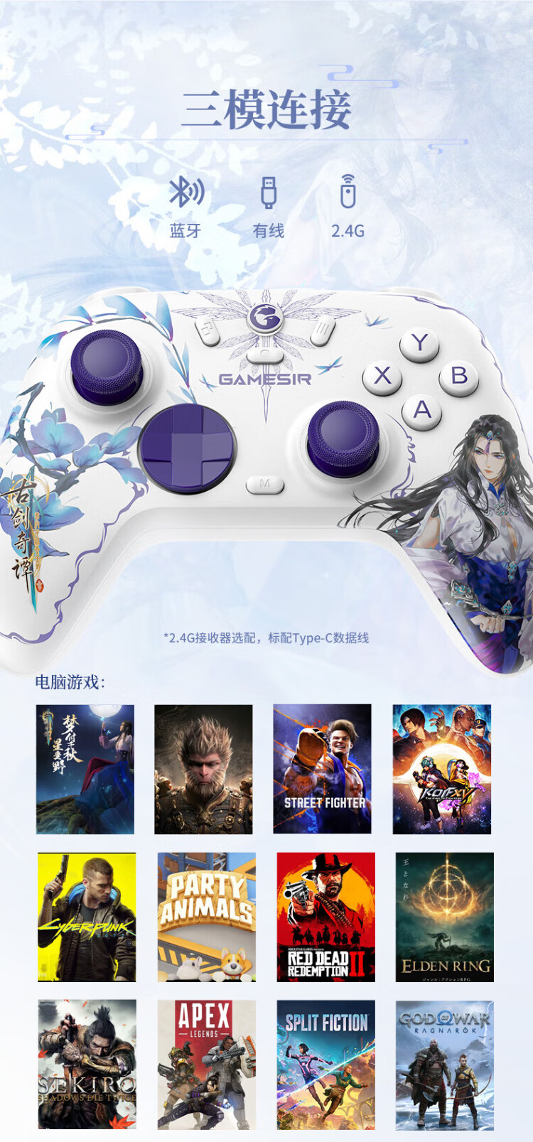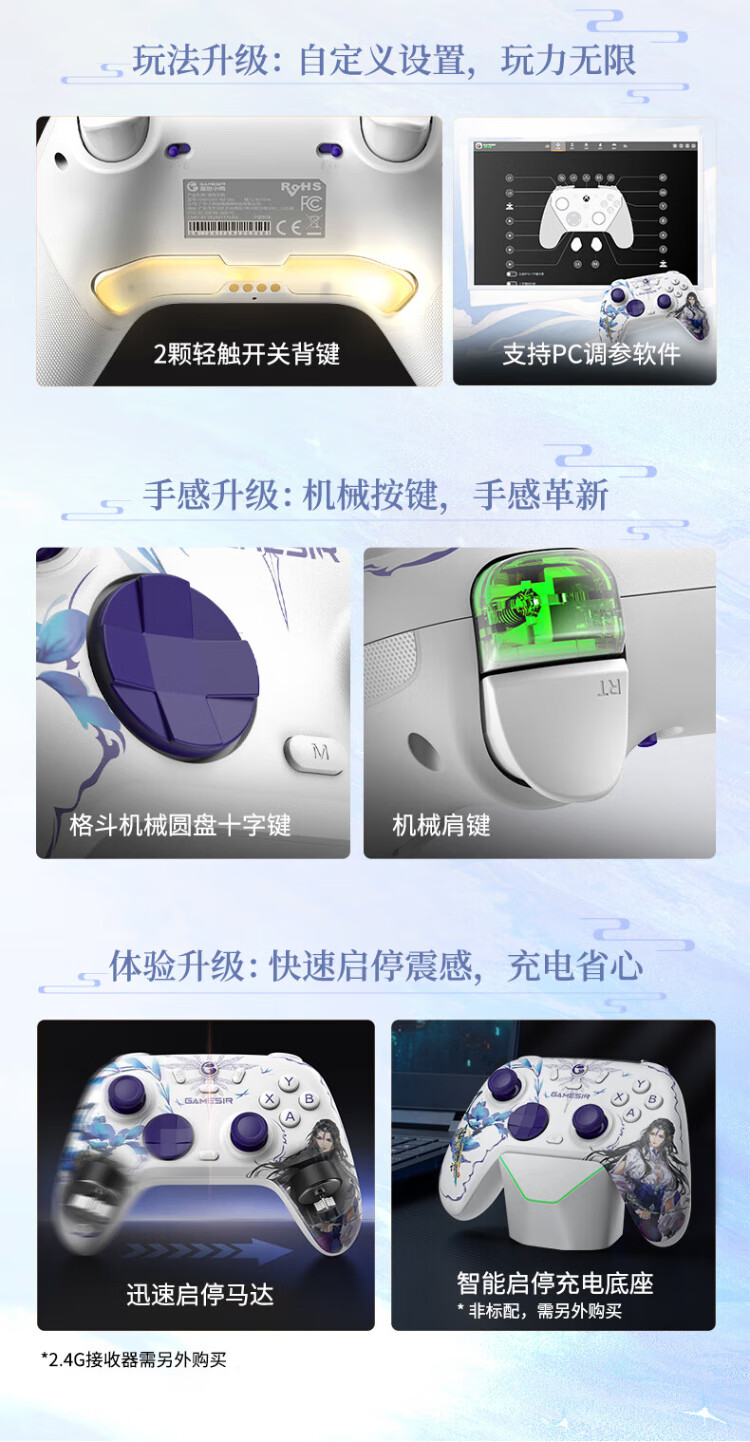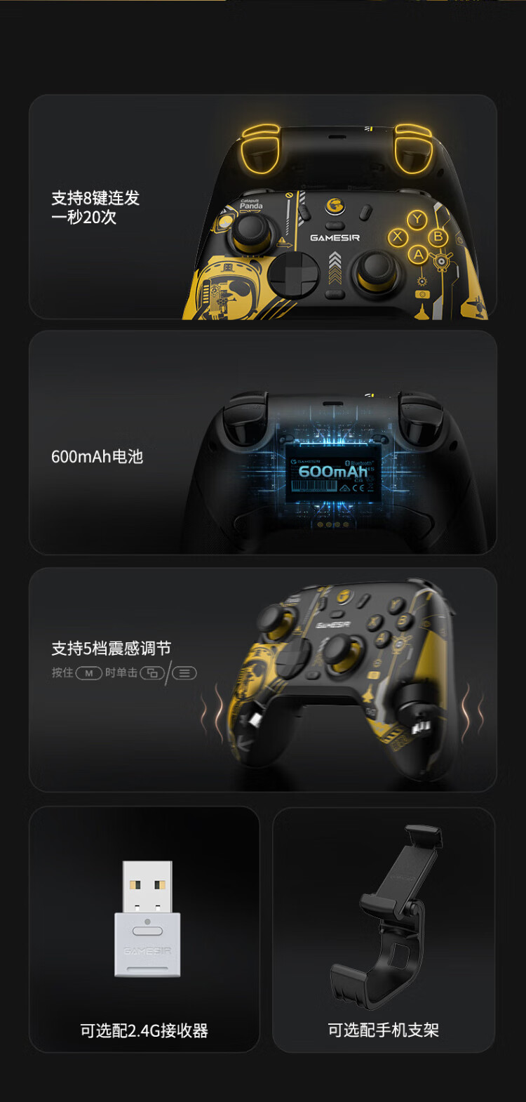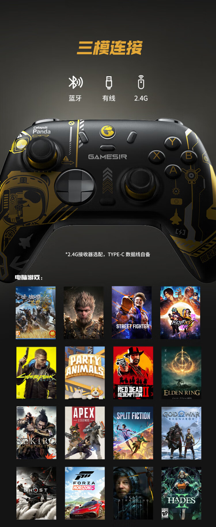 GAMESIR Venus 2 Wireless Game Controller Suitable for Switch/Switch2 Controller DW12C Mobile Phone NS Android Apple PC Computer TV Steam Genshin Impact Pokémon ZA Shipboard Panda Co-branded Model + Receiver + Charging Base