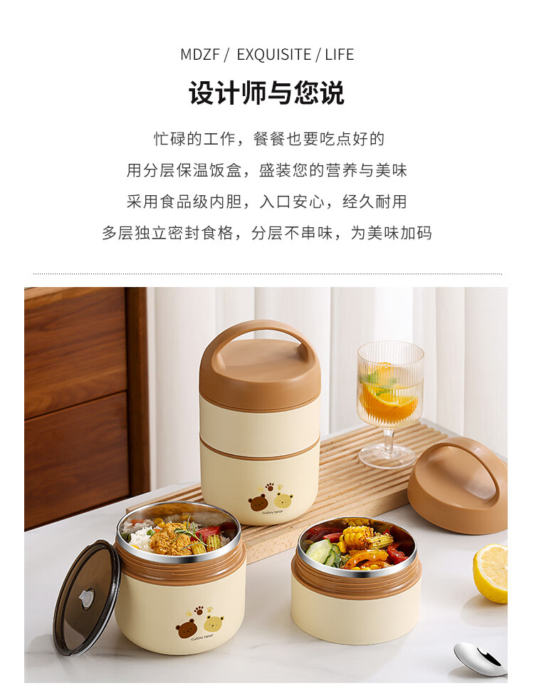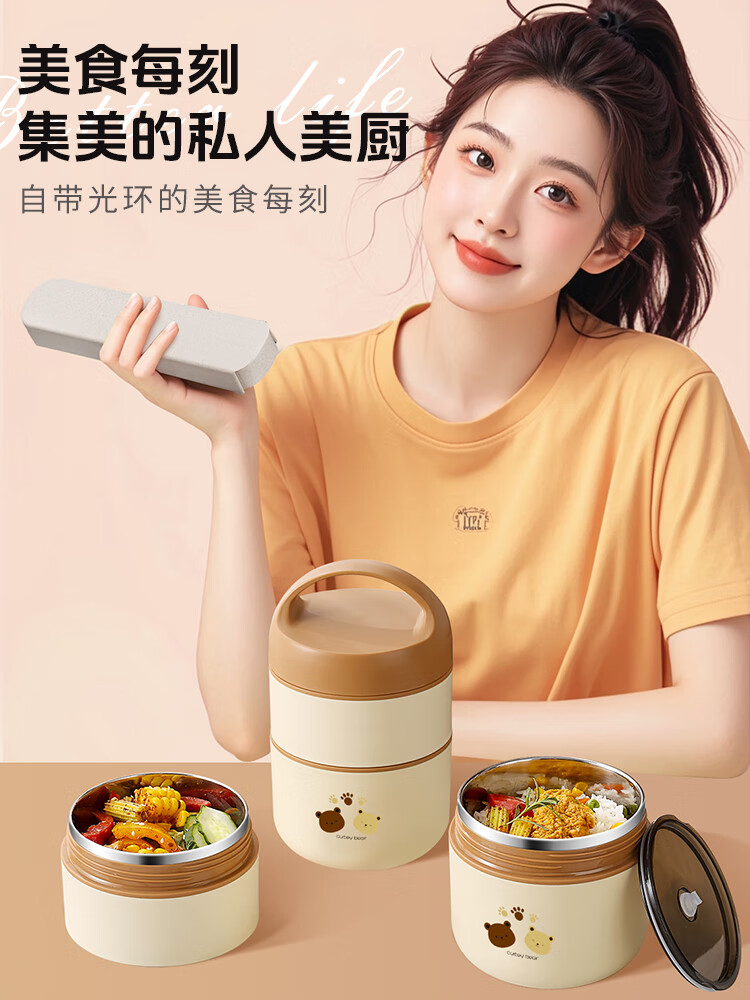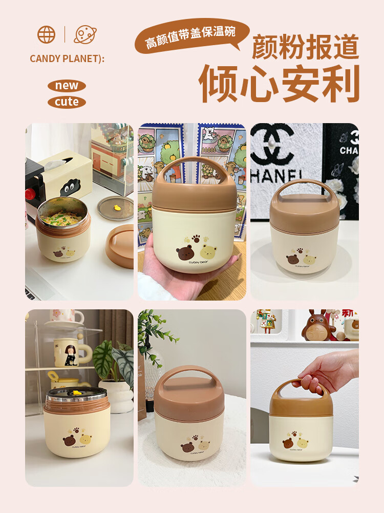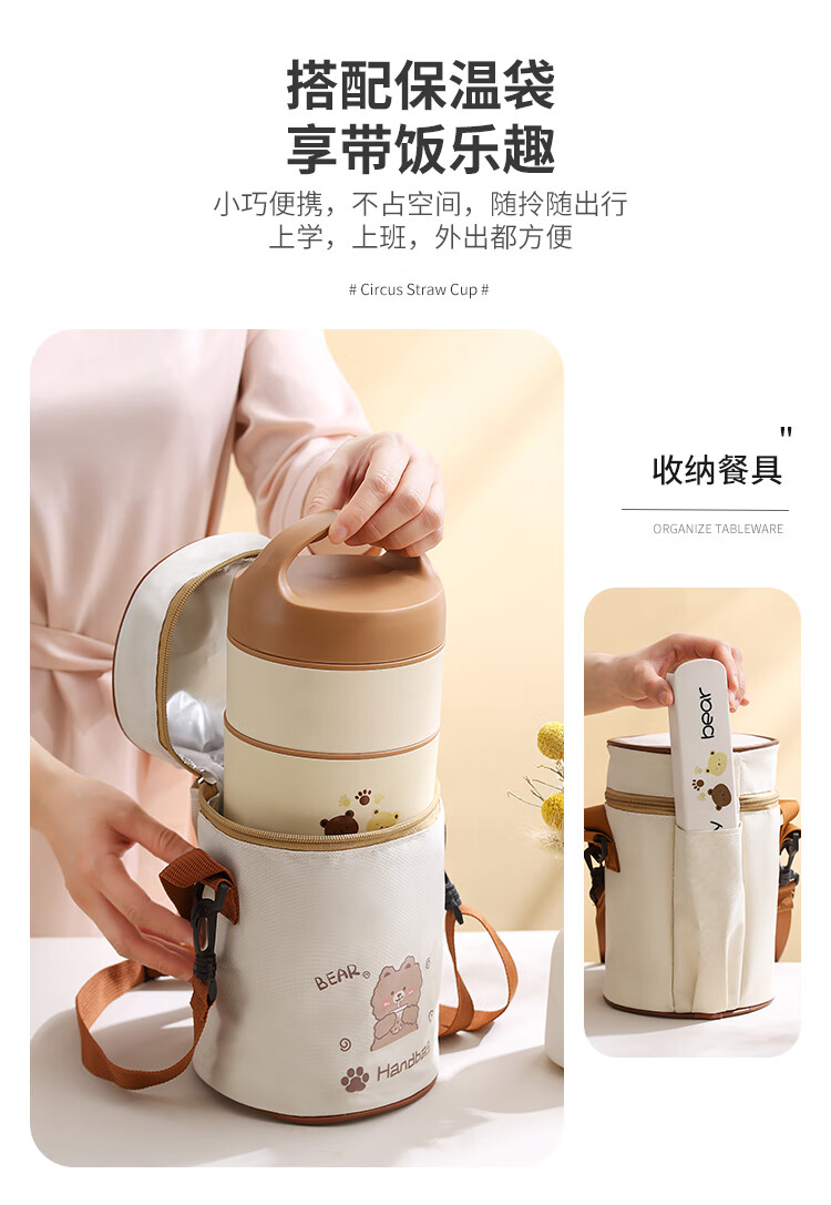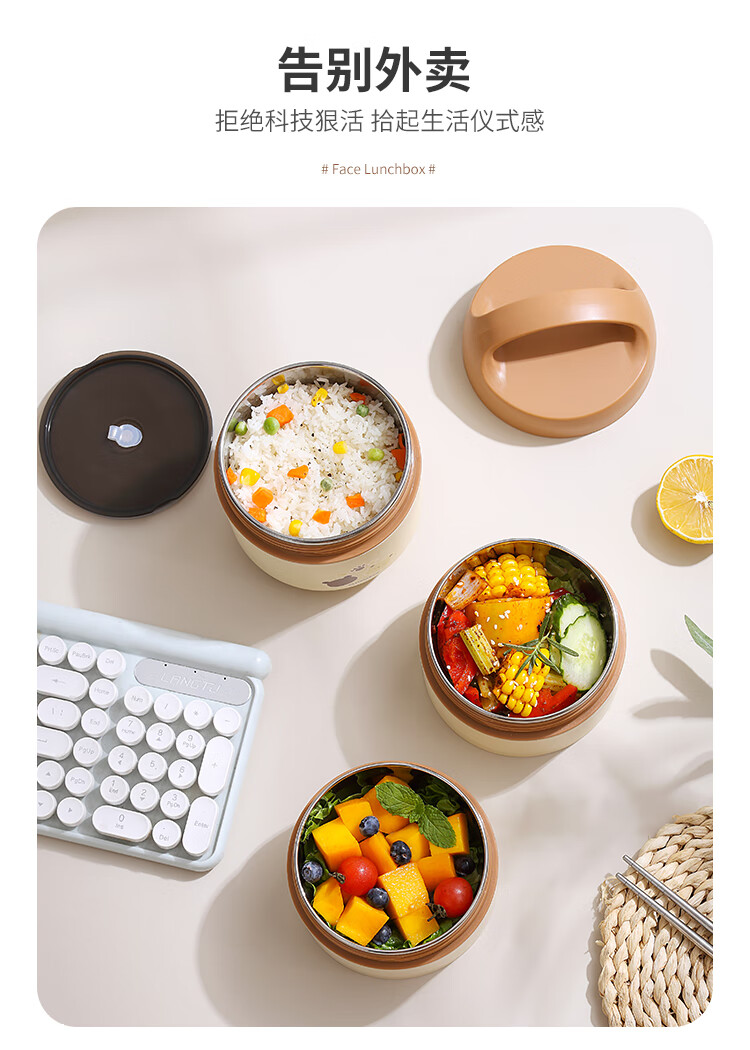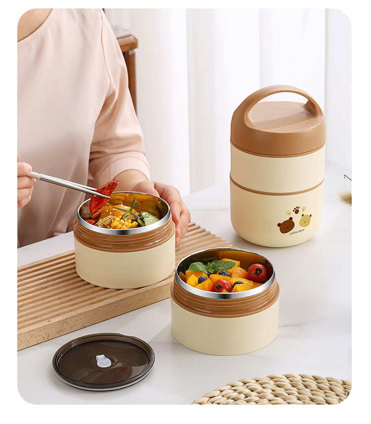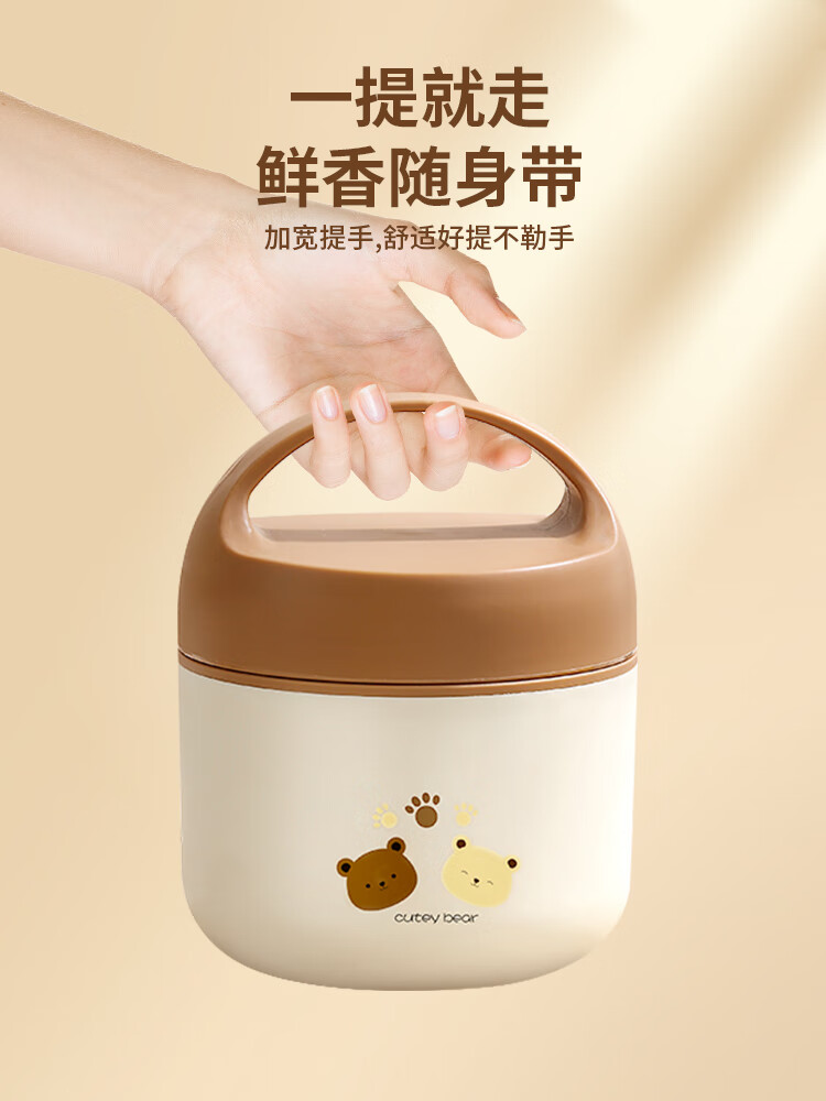 WCZ German brand office worker insulated bowl with lid, breakfast lunch box, portable soup bowl, lunch box, microwaveable 304 handle lunch box, single layer