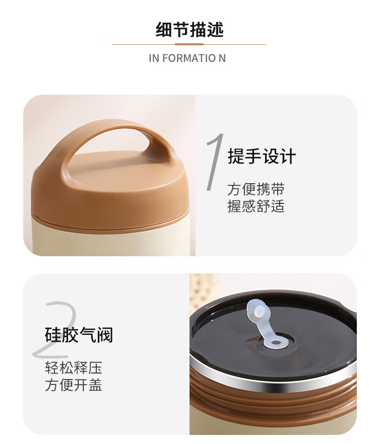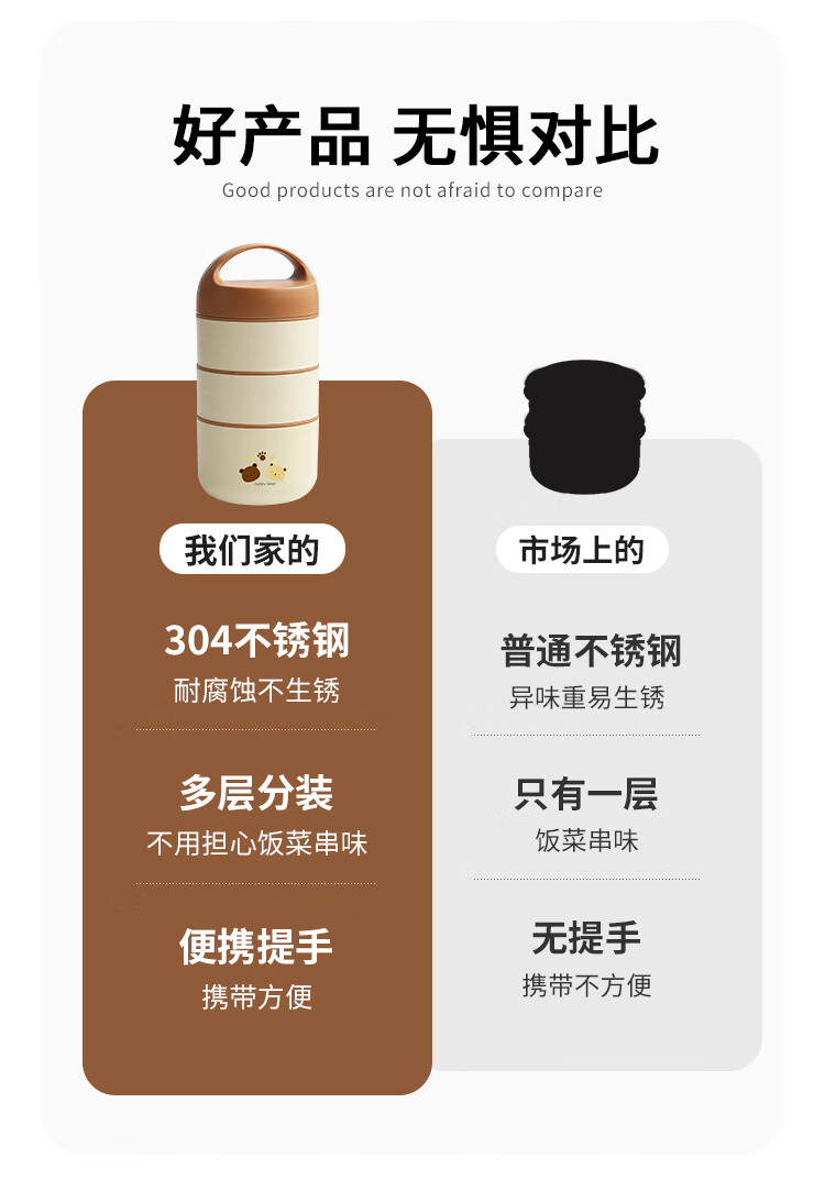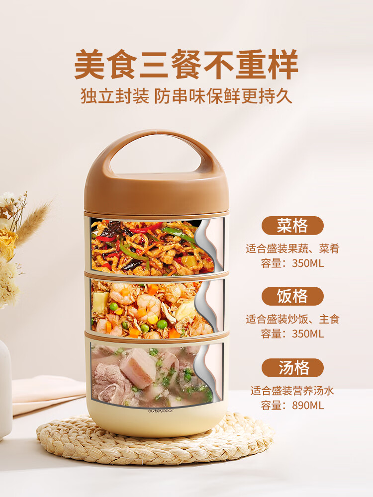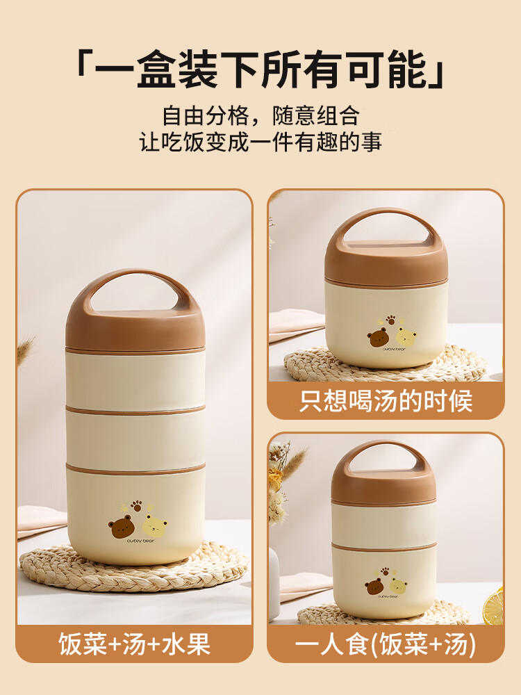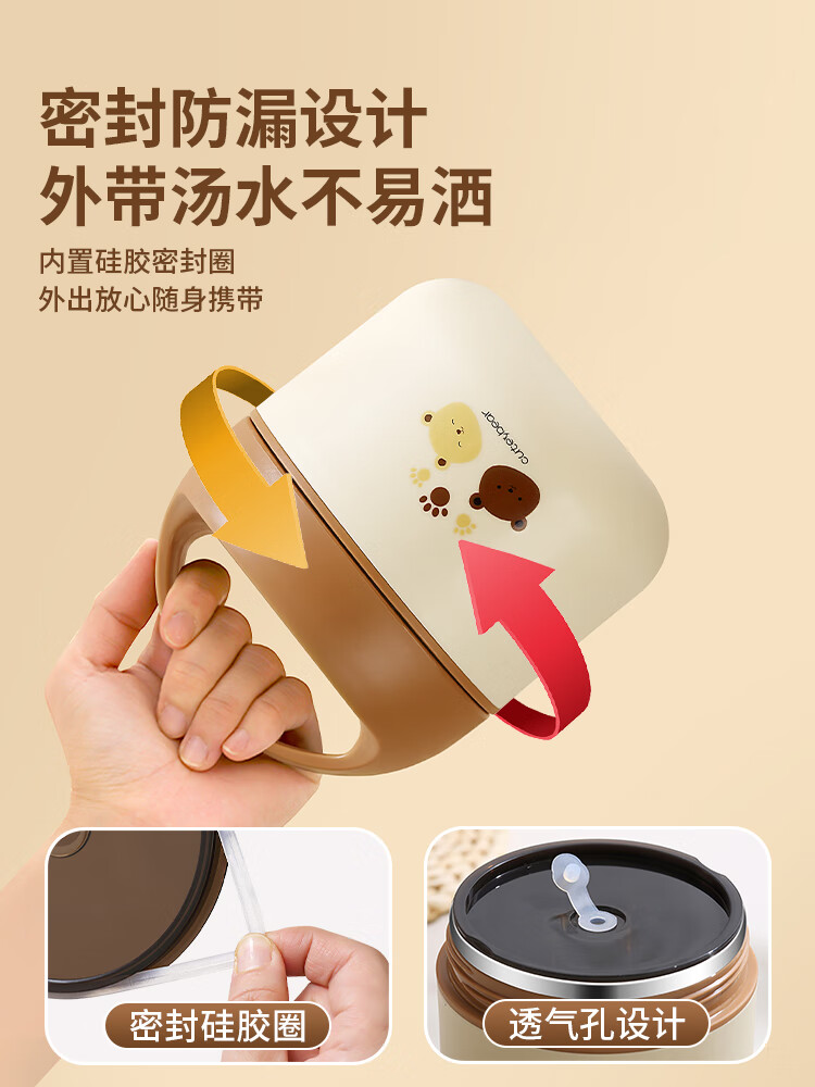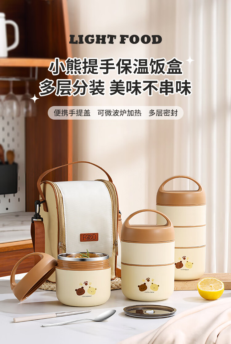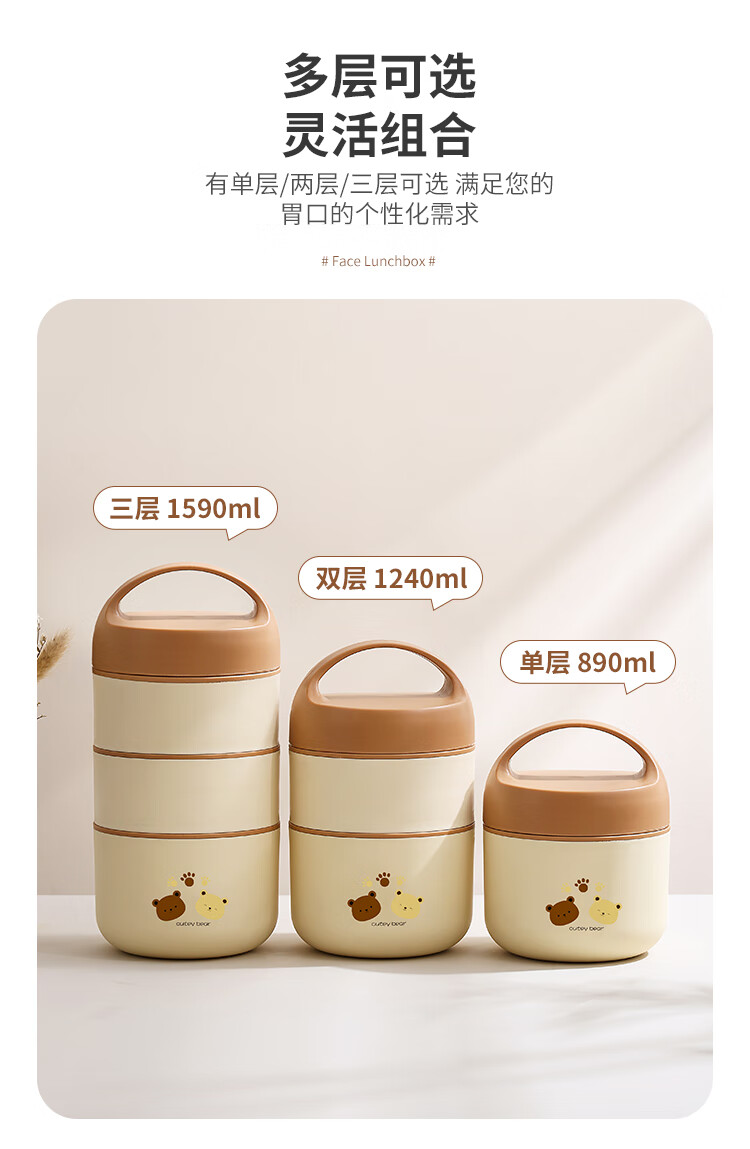 WCZ German brand office worker insulated bowl with lid, breakfast lunch box, portable soup bowl, lunch box, microwaveable 304 handle lunch box, single layer