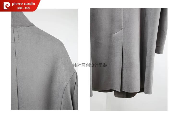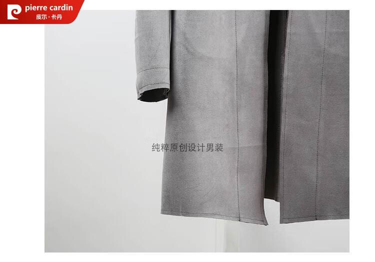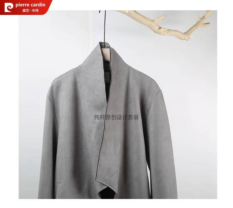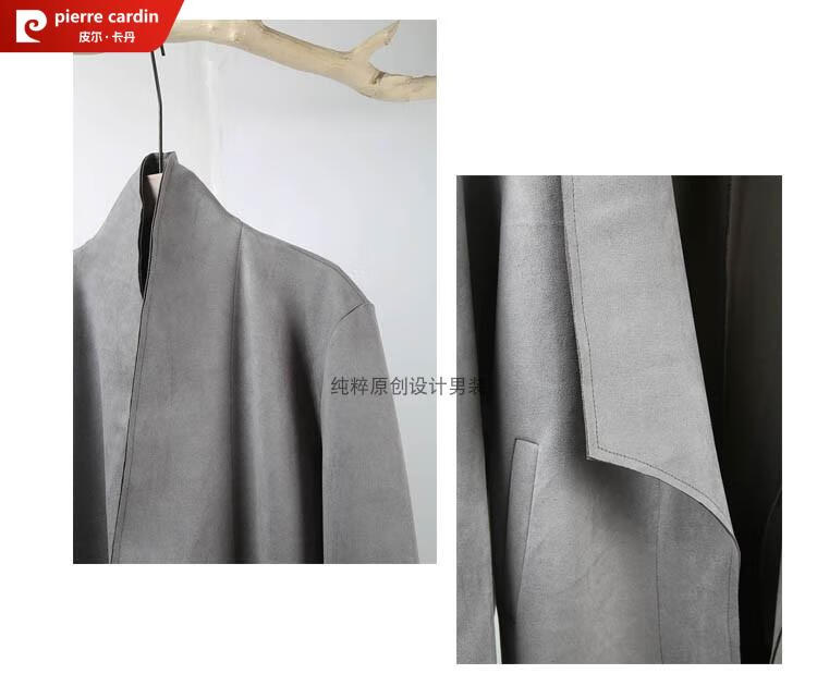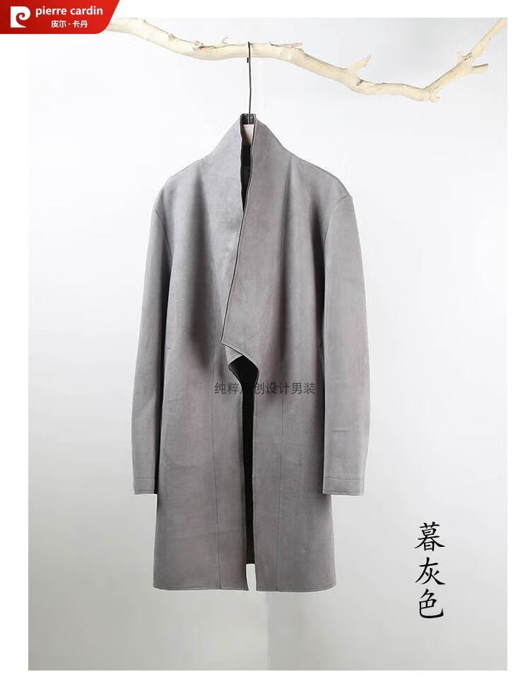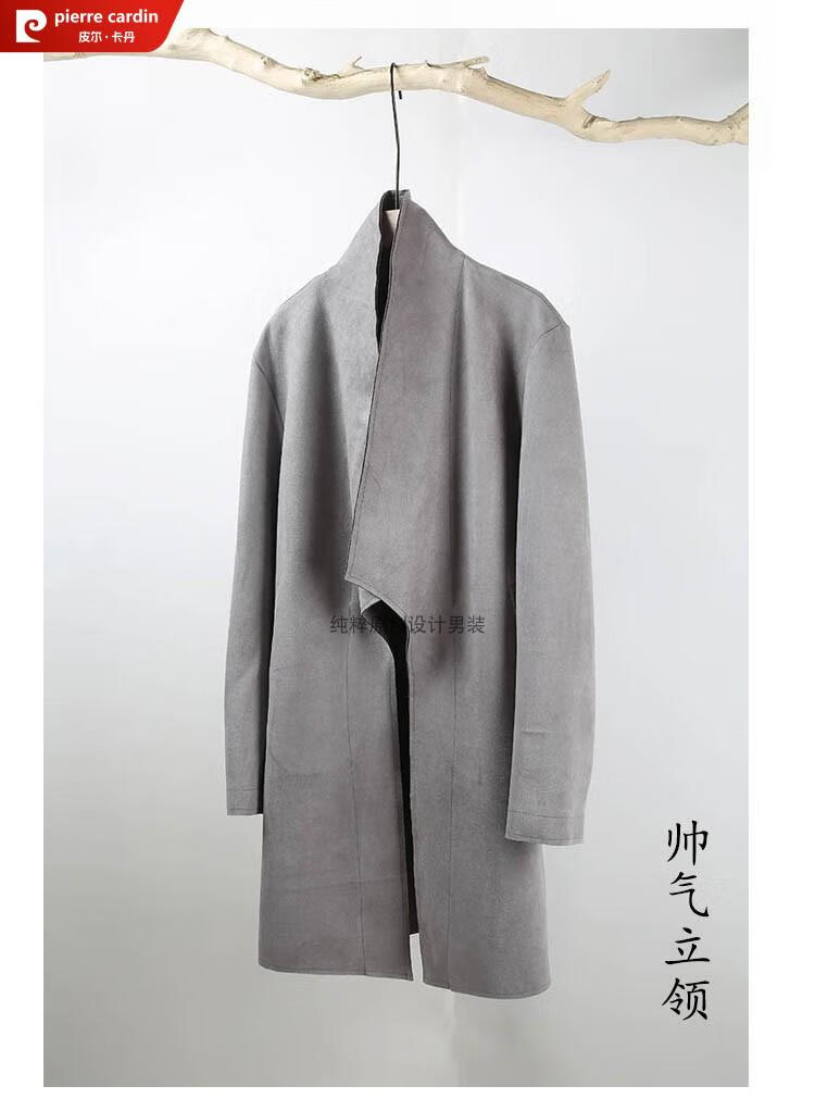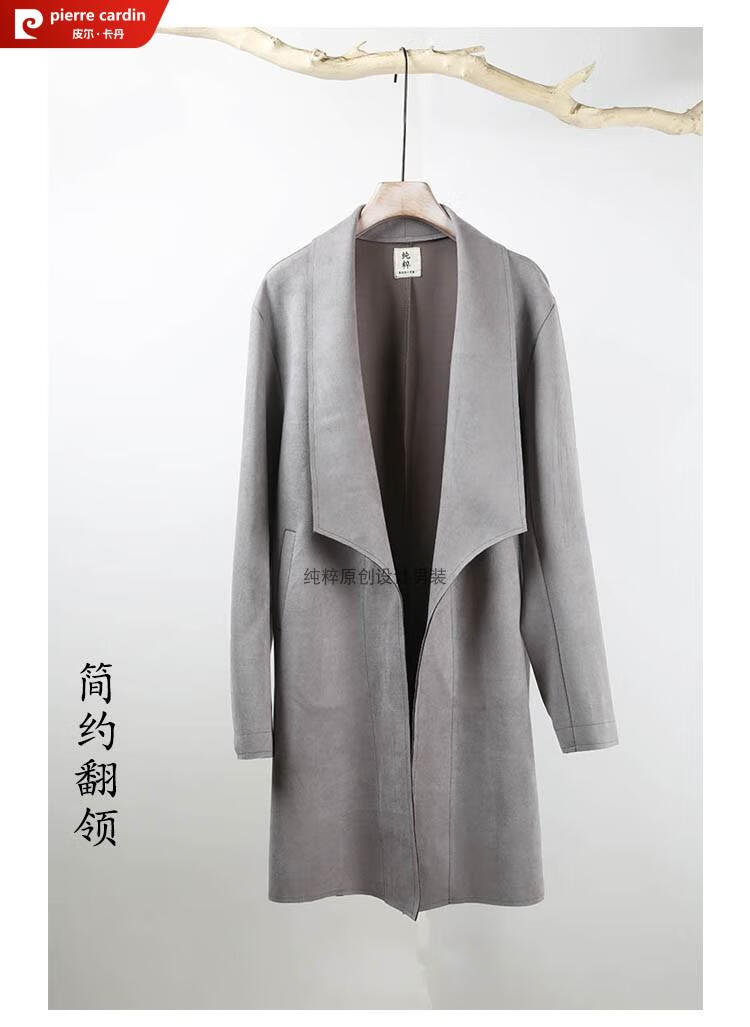 Pierre Cardin Chinese style suede windbreaker men's spring and autumn retro mid-length original Japanese stand collar Korean style buckskin velvet jacket gray twilight gray XL