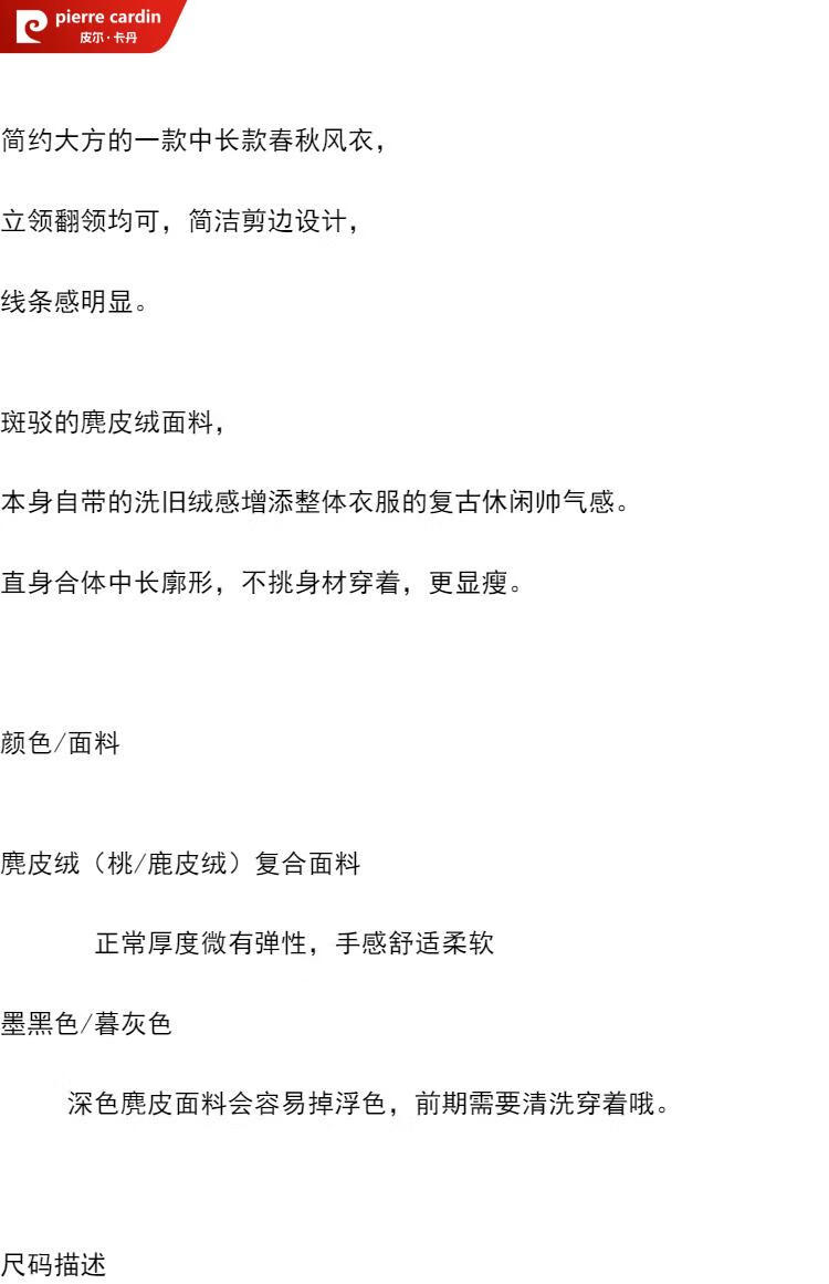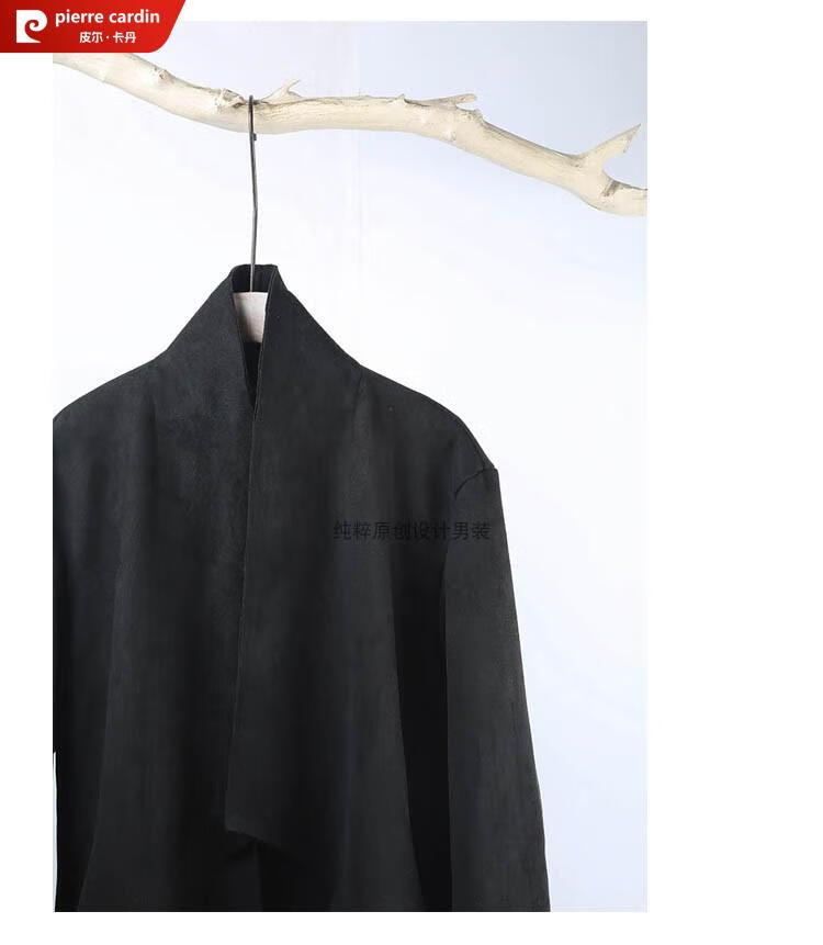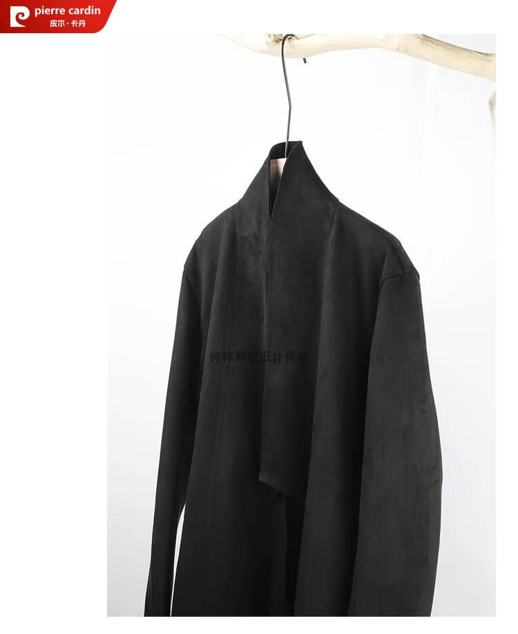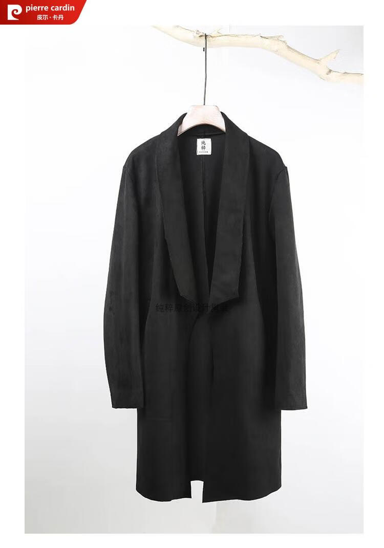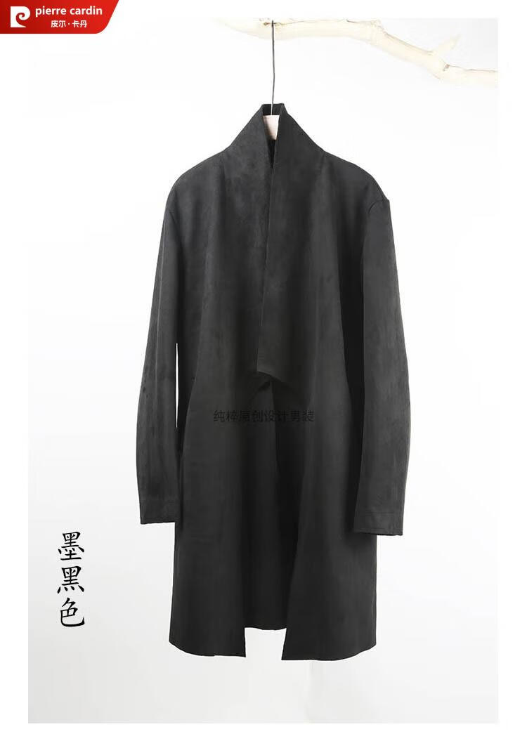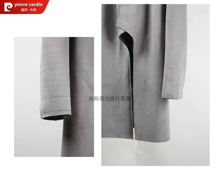 Pierre Cardin Chinese style suede windbreaker men's spring and autumn retro mid-length original Japanese stand collar Korean style buckskin velvet jacket gray twilight gray XL