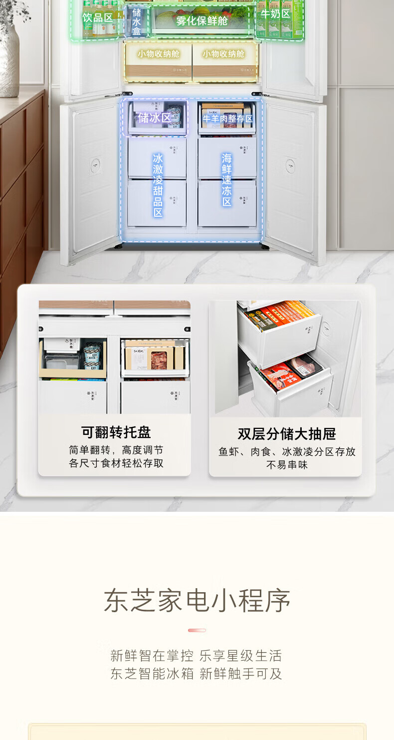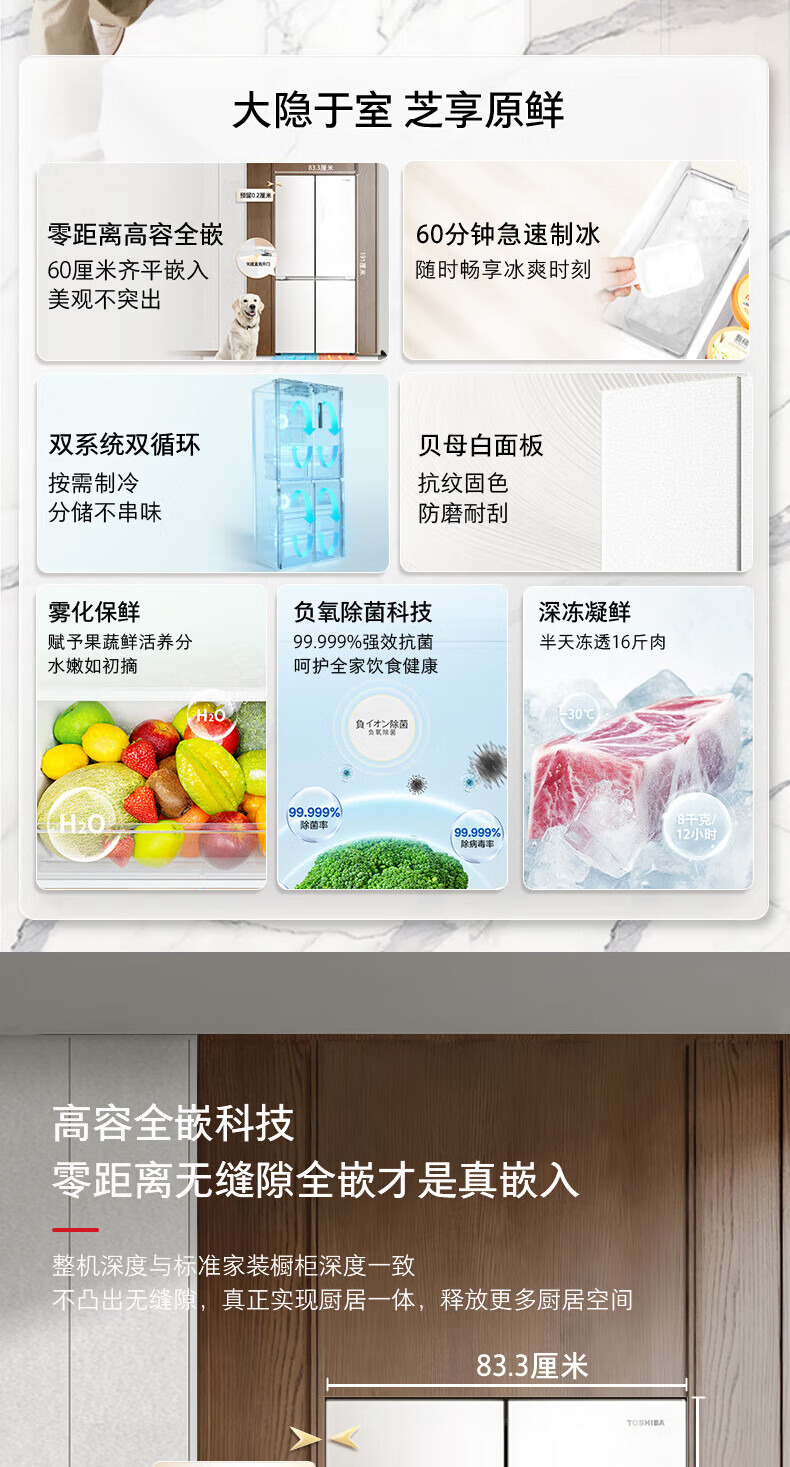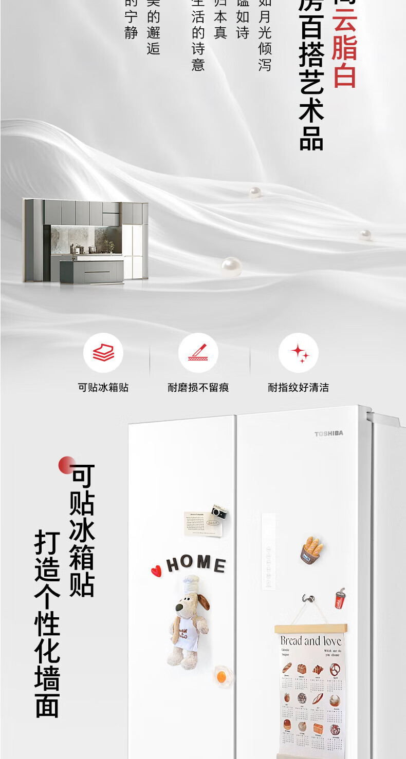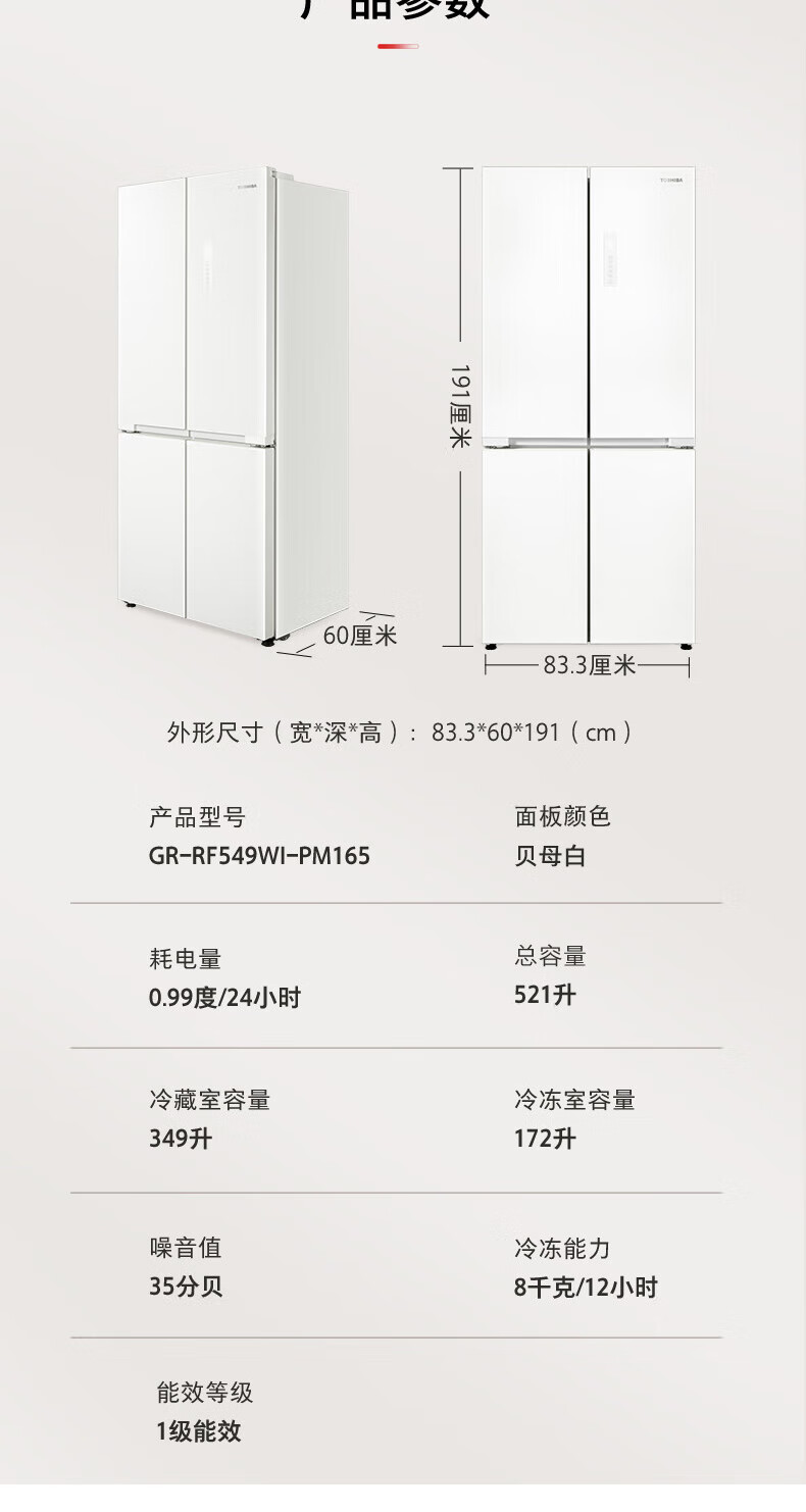 Toshiba White Pearl 549 dual system refrigerator home 60cm ultra-thin zero-embedded frequency conversion cross double-open four-door automatic ice-making home refrigerator GR-RF549WI-PM165 White Pearl 549 zero-embedded cross dual system