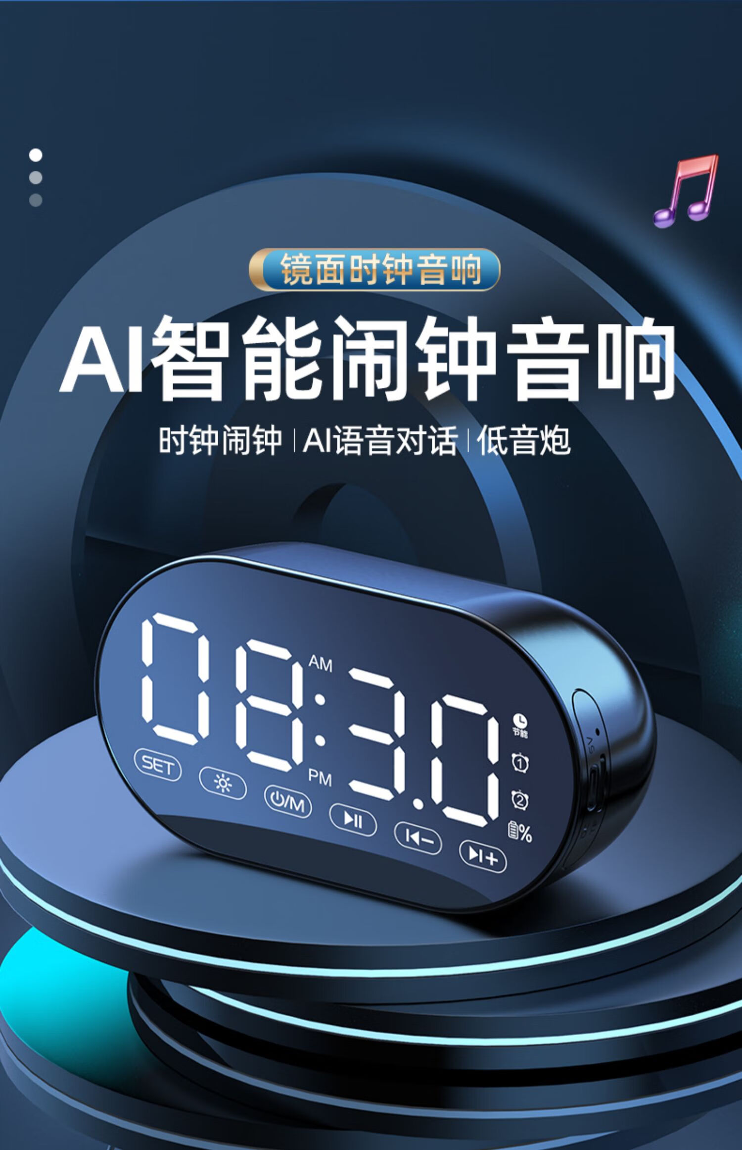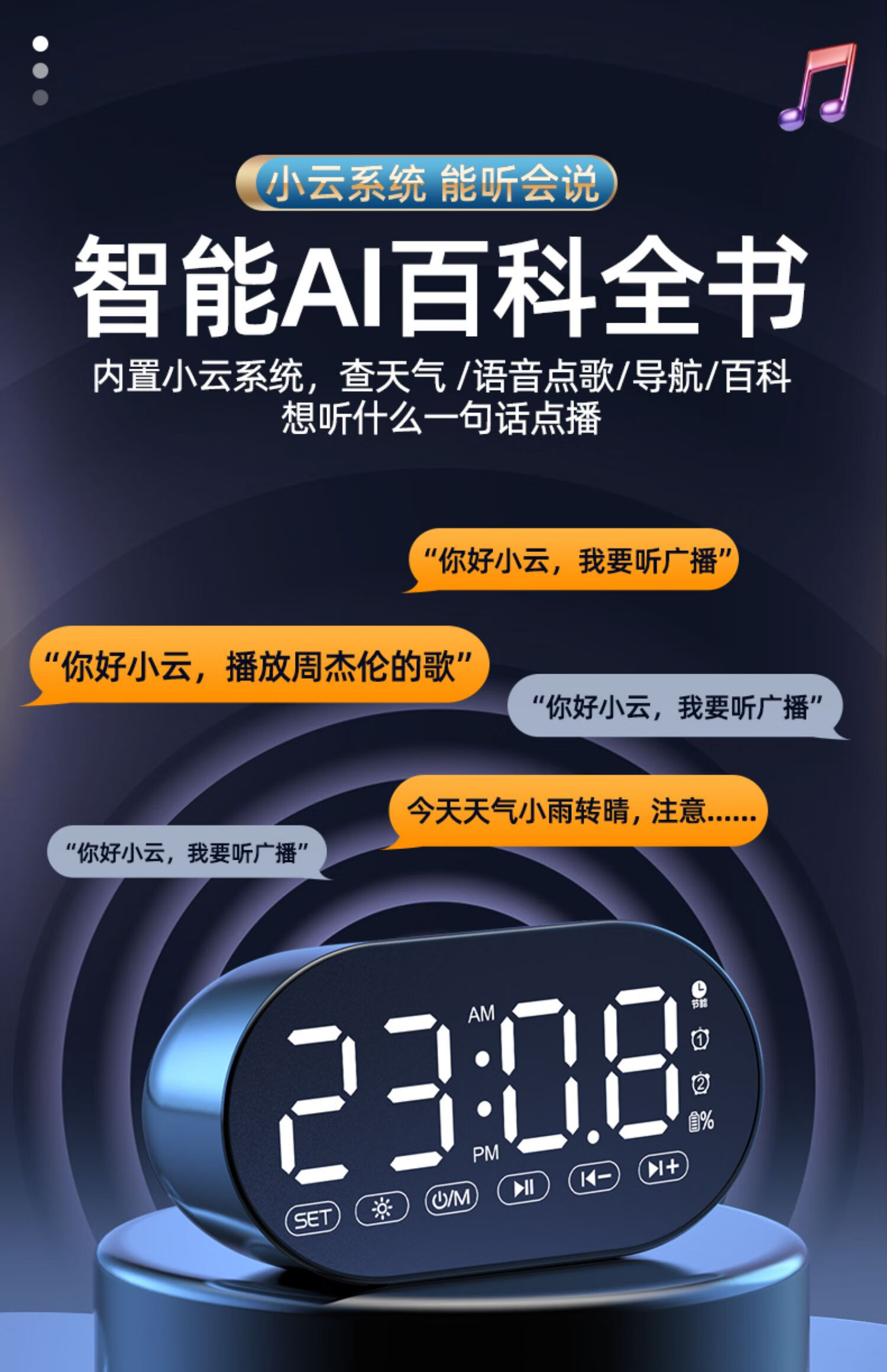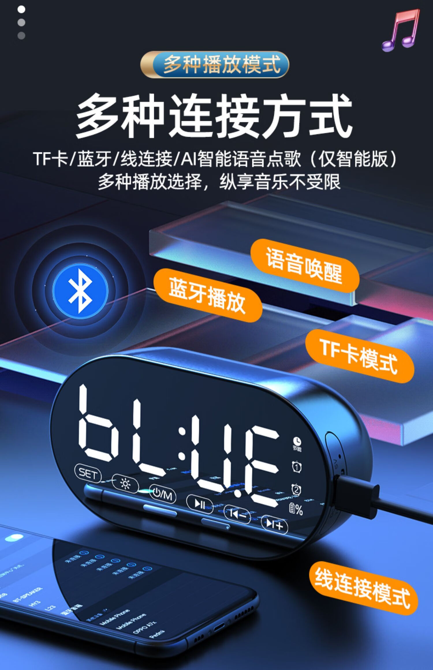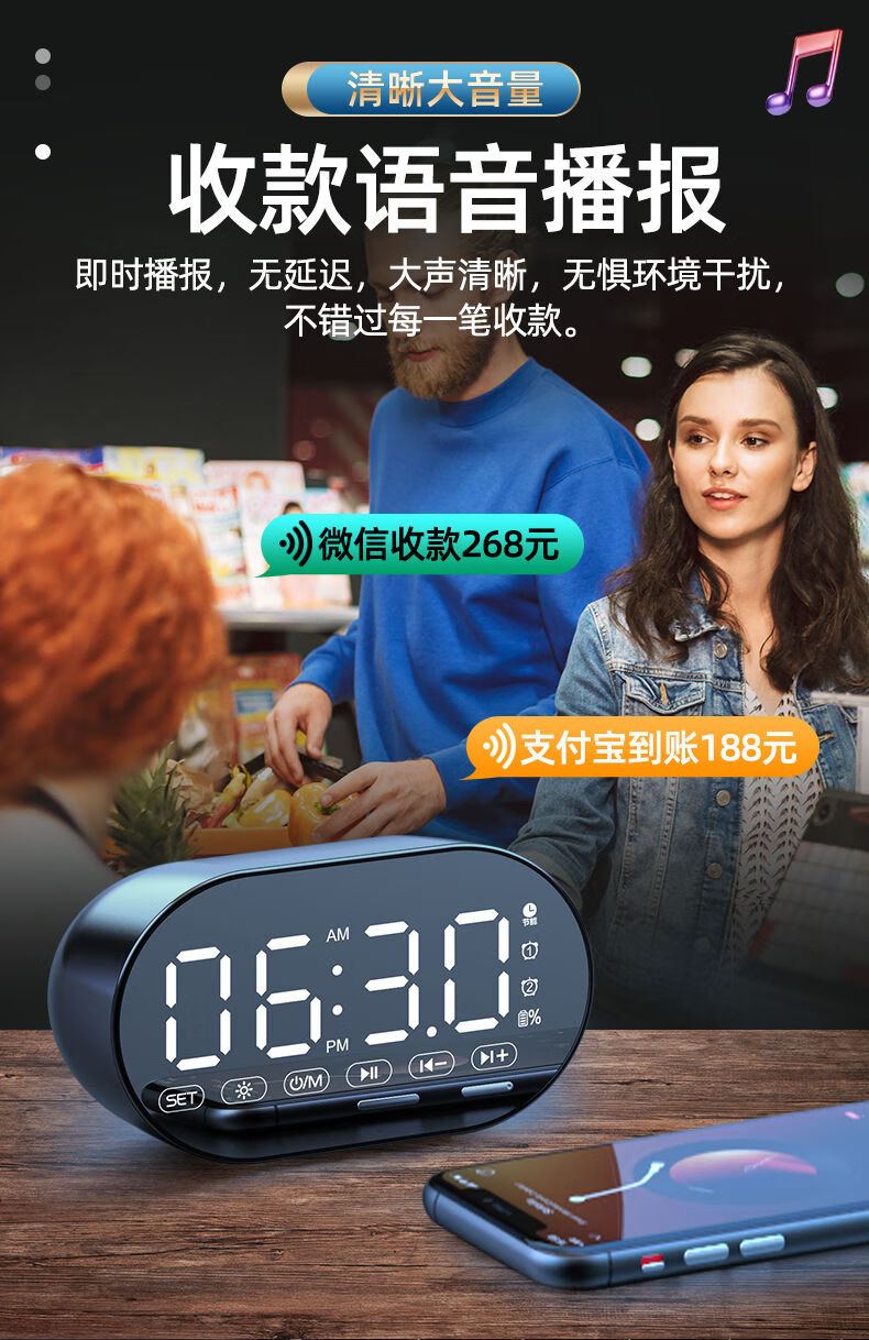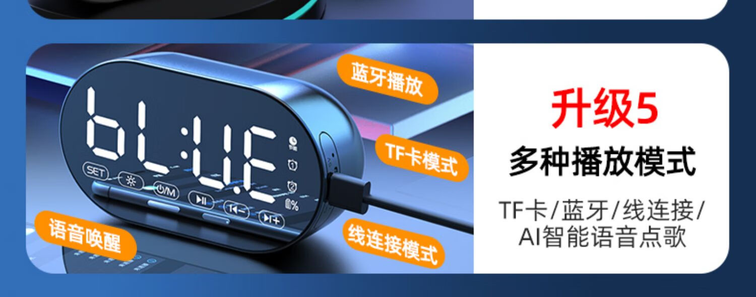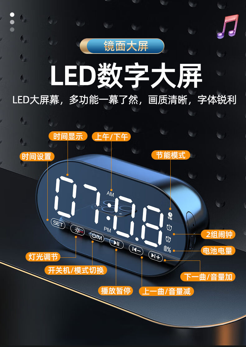 HILINK Huawei's preferred AI wireless multi-function student alarm clock smart Bluetooth speaker high volume wake-up artifact mini subwoofer black | flagship version HD voice + dual alarm clock + H official standard configuration