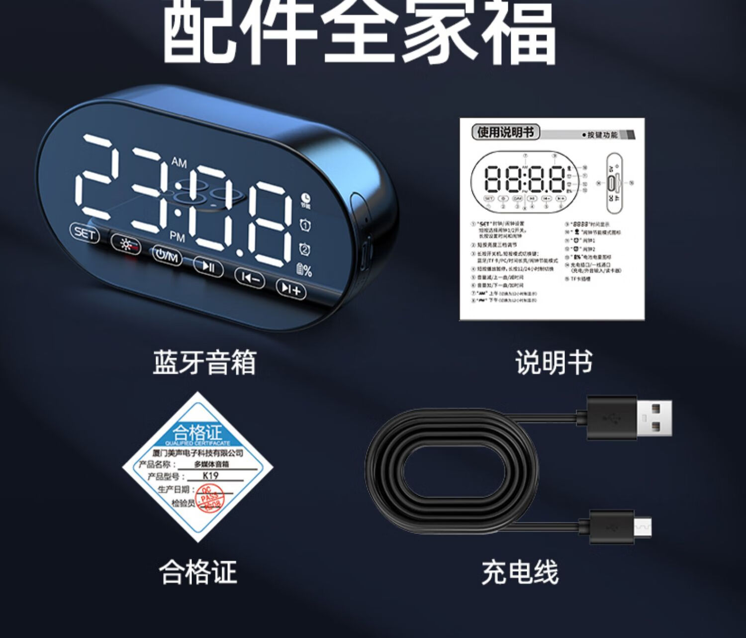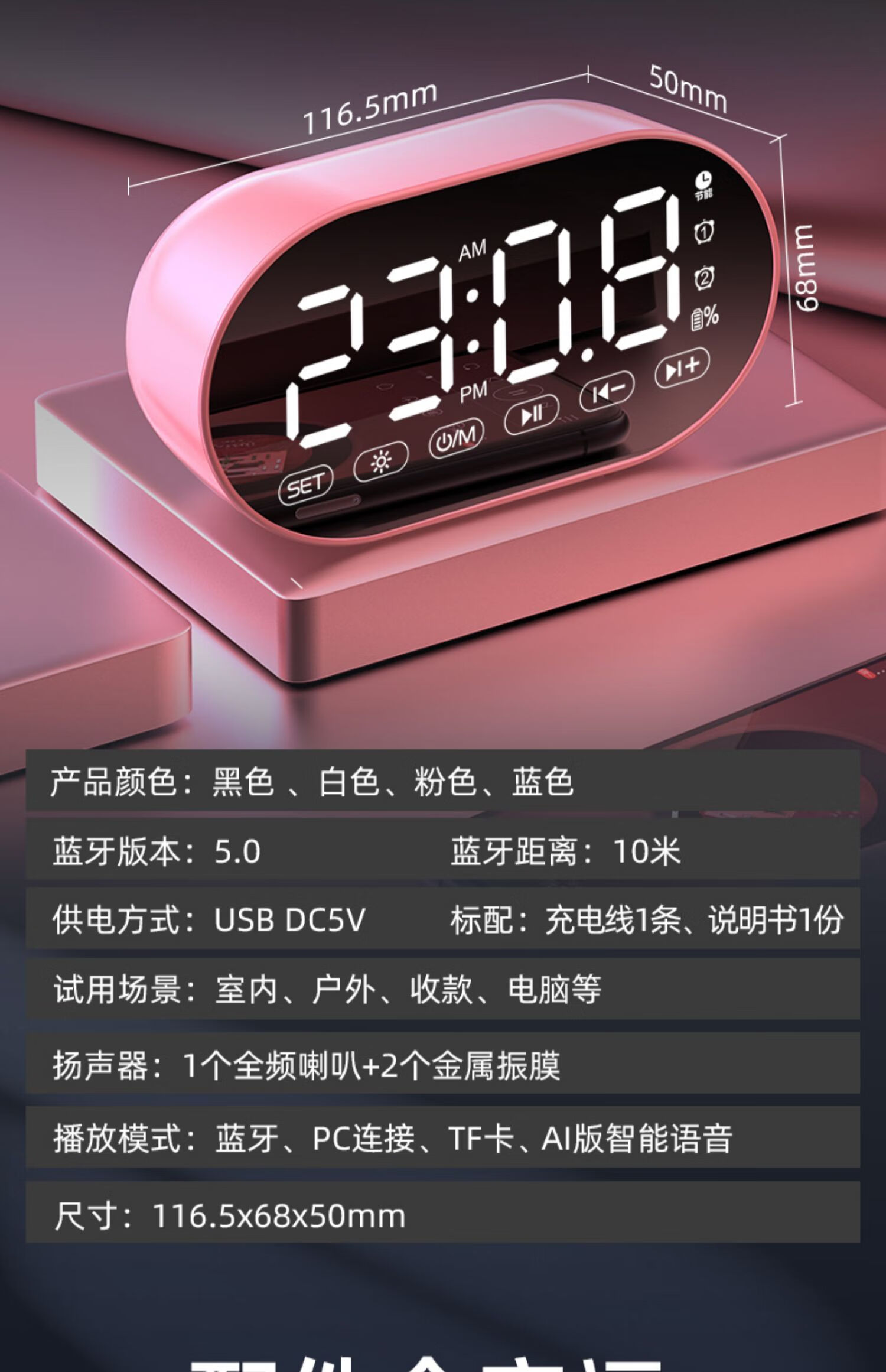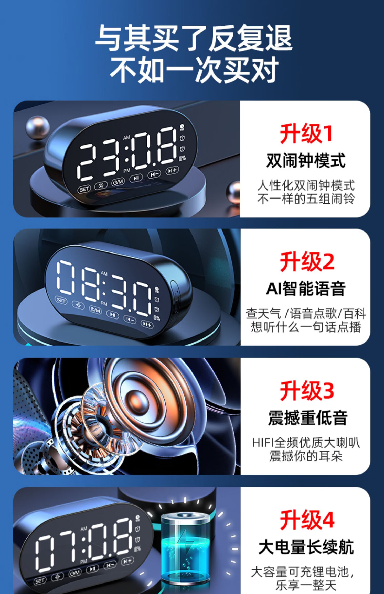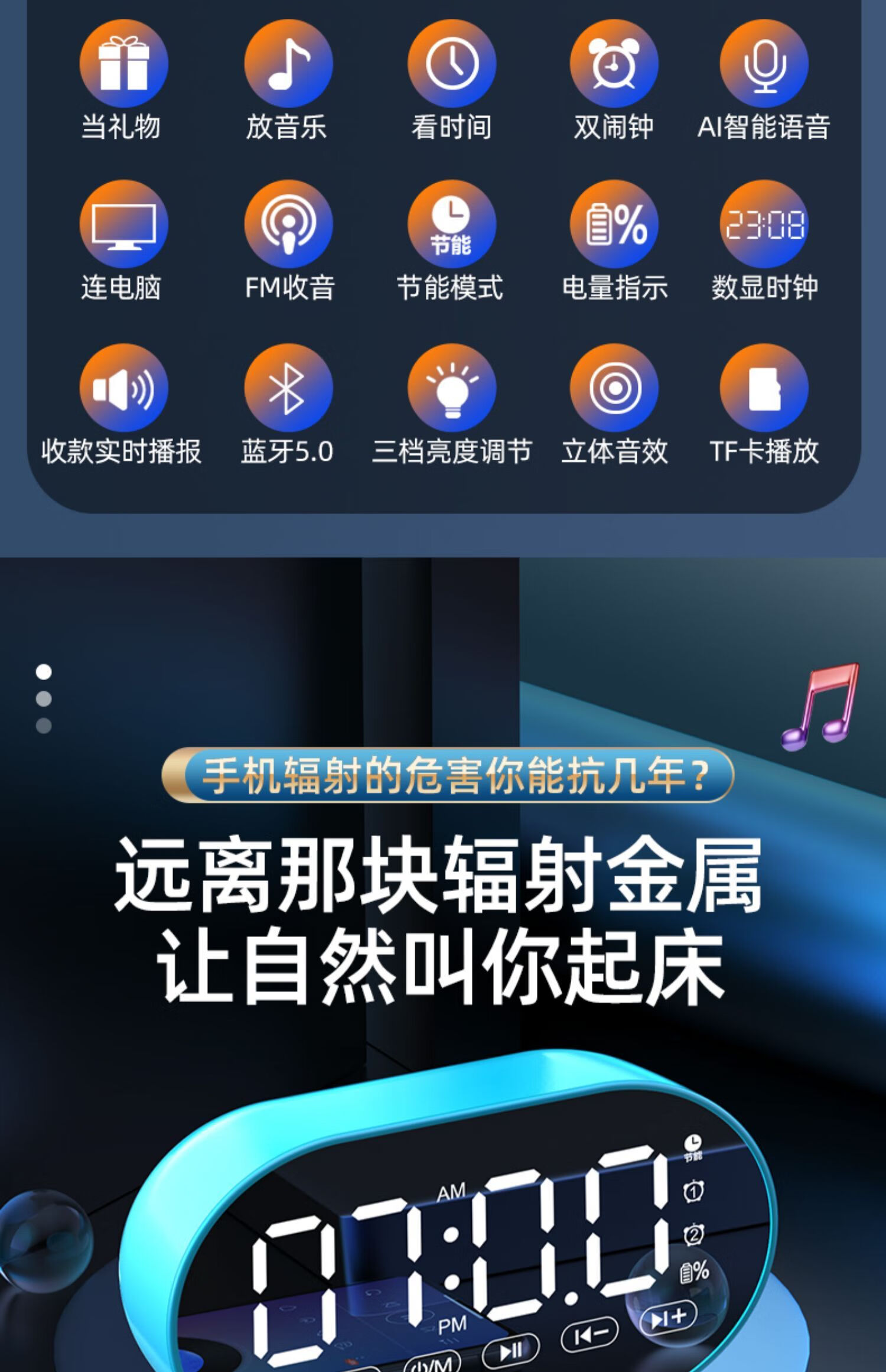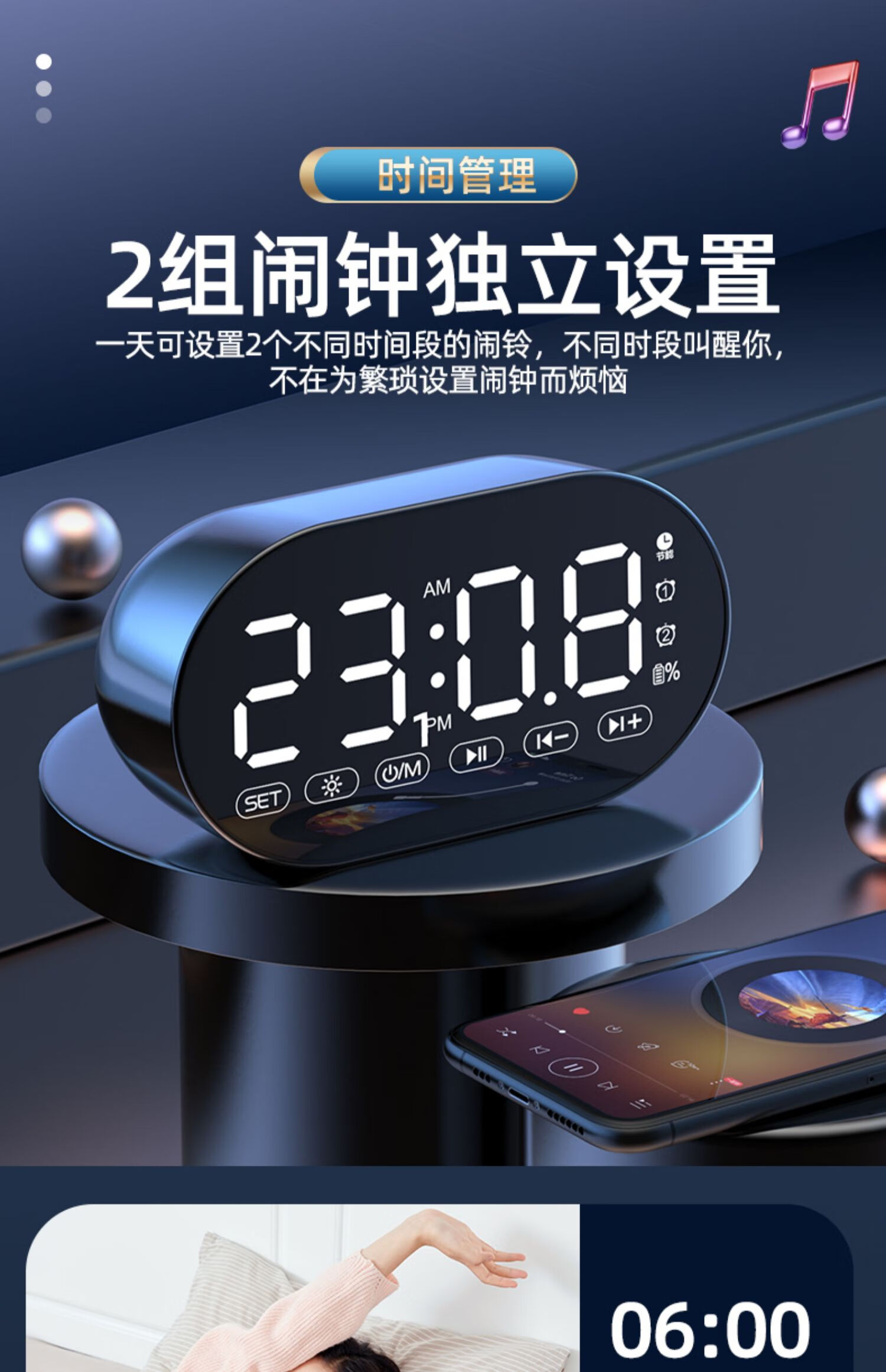 HILINK Huawei's preferred AI wireless multi-function student alarm clock smart Bluetooth speaker high volume wake-up artifact mini subwoofer black | flagship version HD voice + dual alarm clock + H official standard configuration