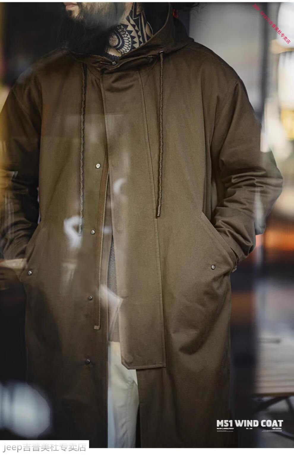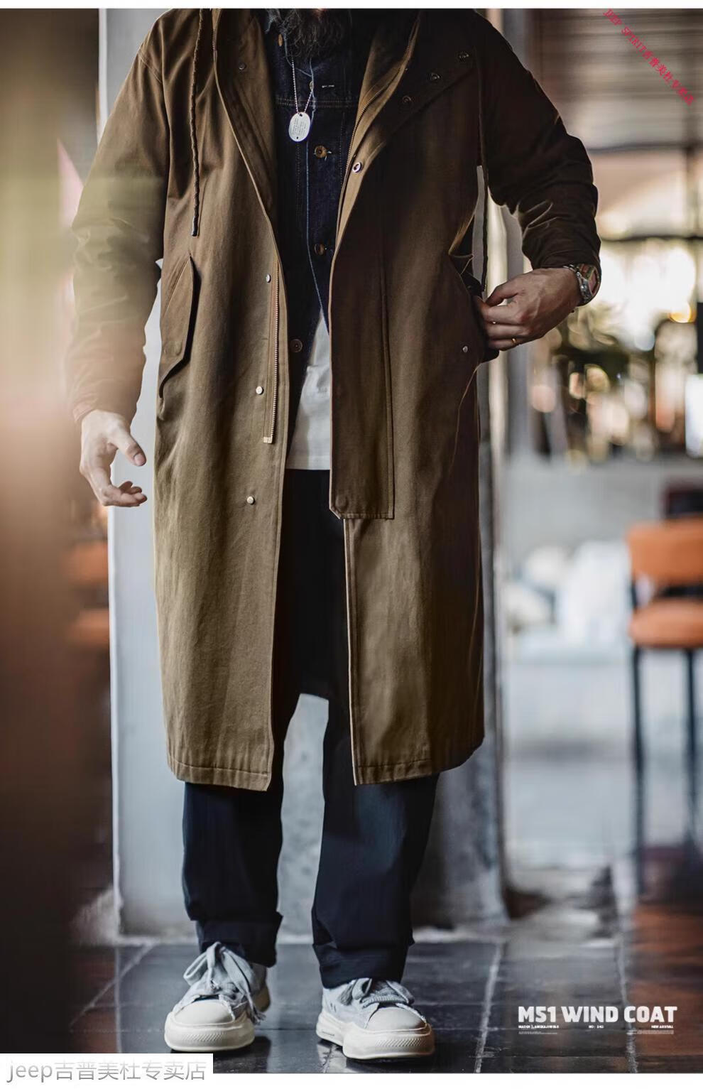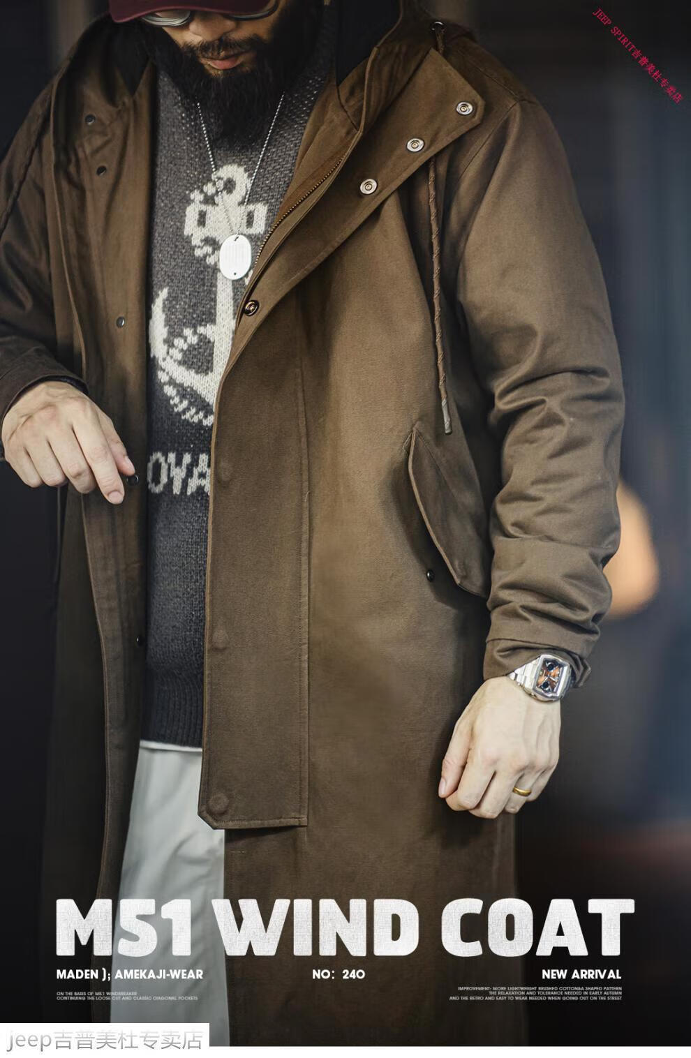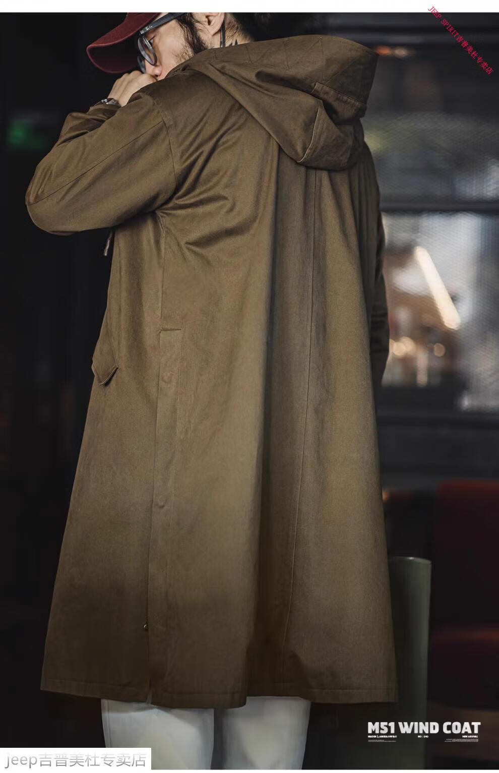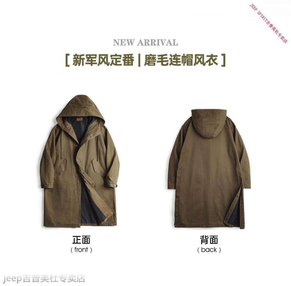 JEEP SPIRIT Jeep Workwear American Retro M51 Brushed Hooded Windbreaker Military Style Loose Cotton Mid-Length Jacket Men's Autumn Brown Loose Too Large L