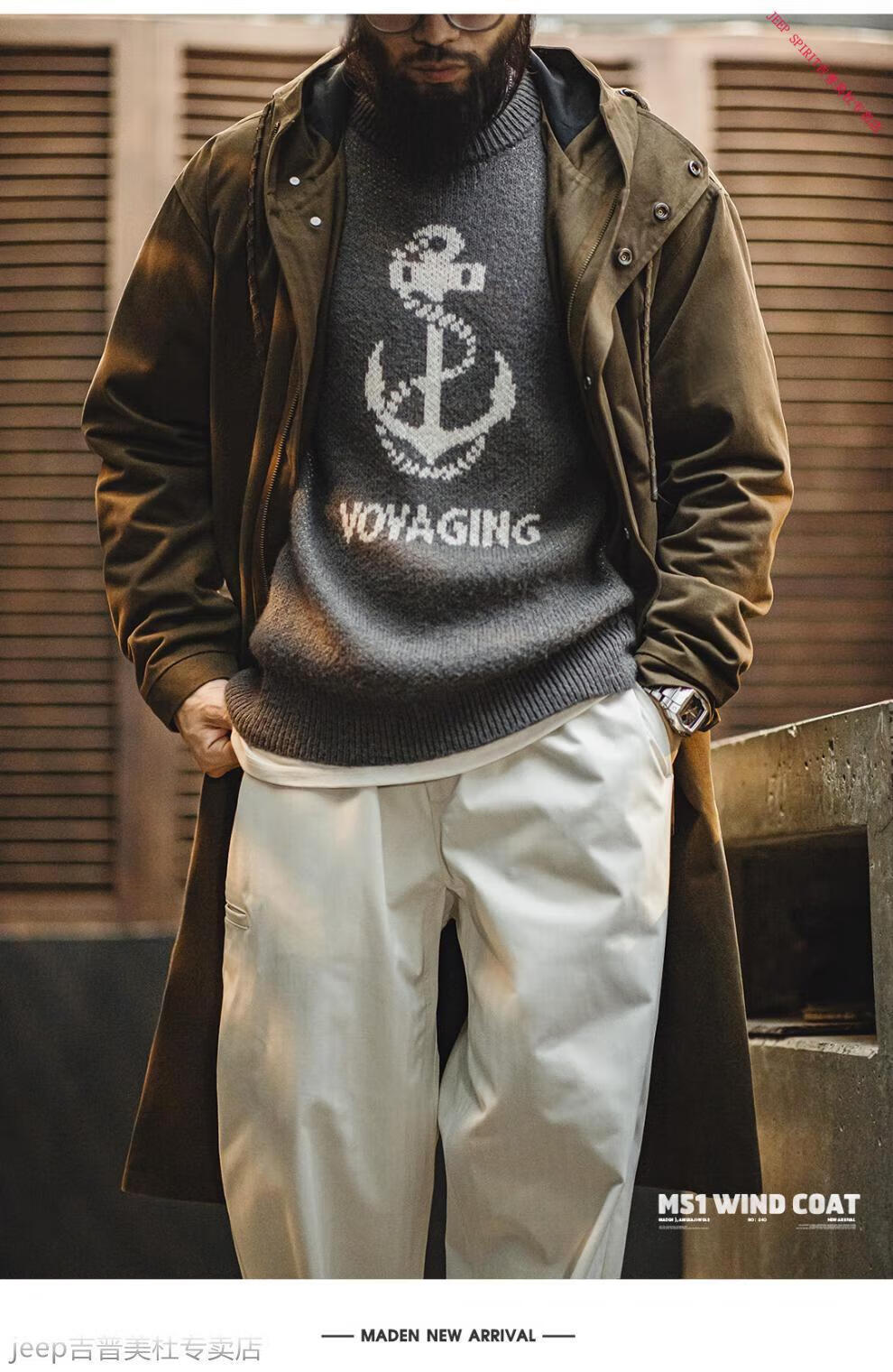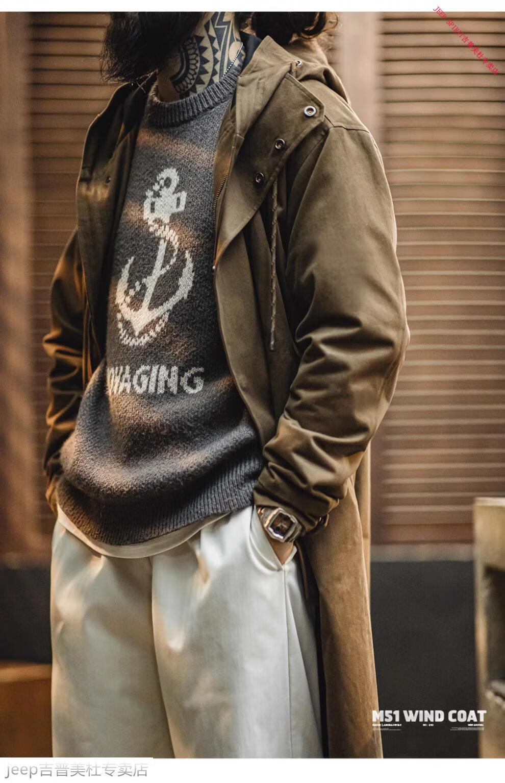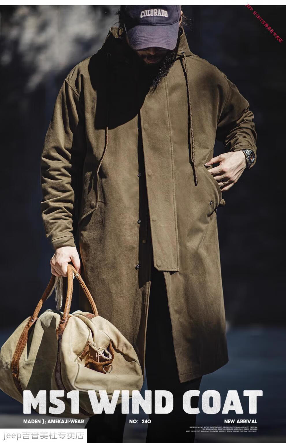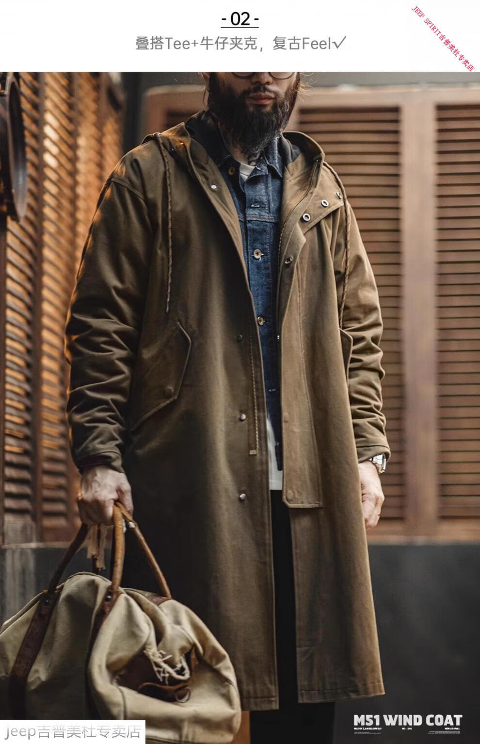 JEEP SPIRIT Jeep Workwear American Retro M51 Brushed Hooded Windbreaker Military Style Loose Cotton Mid-Length Jacket Men's Autumn Brown Loose Too Large L