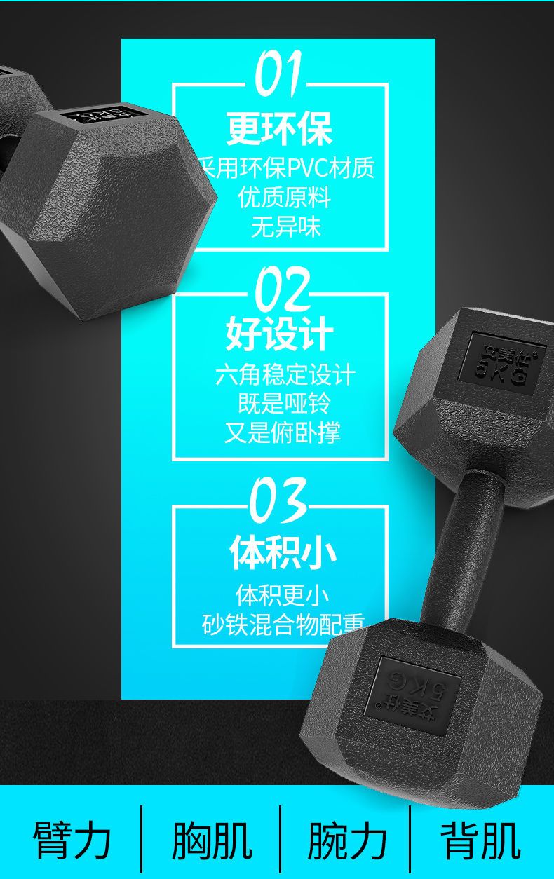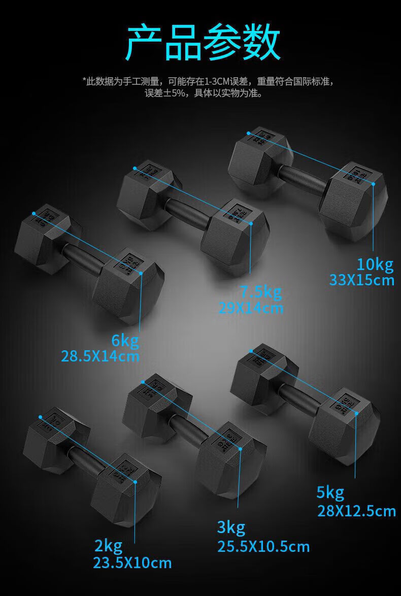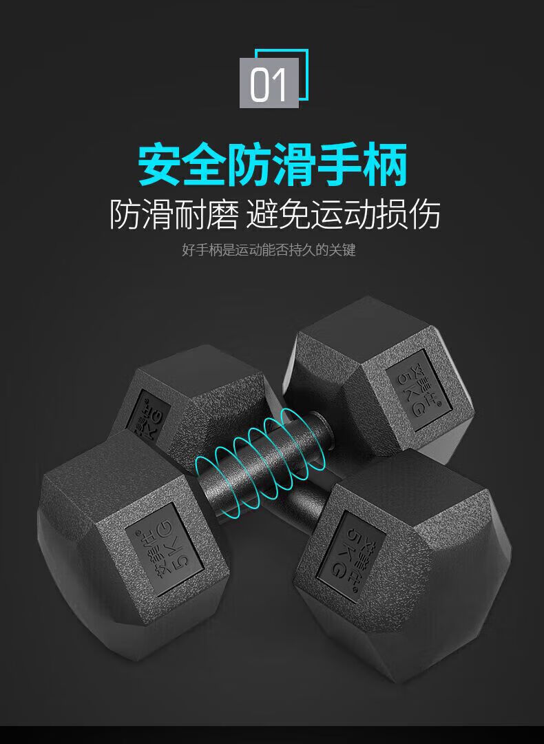 Koinger weightlifting equipment hexagonal dumbbell men's fitness student 2kg 5kg household 10kg rubber-coated arm training for female fitness total weight 10Jin Jin equals 0.5kg one pair (5Jin Jin equals 0.5kg 2)