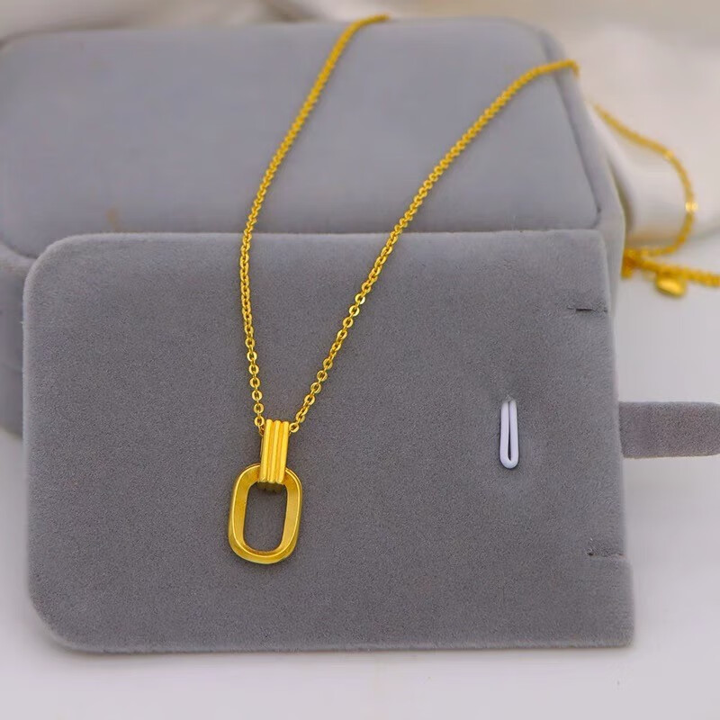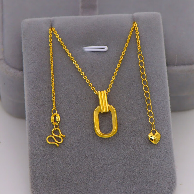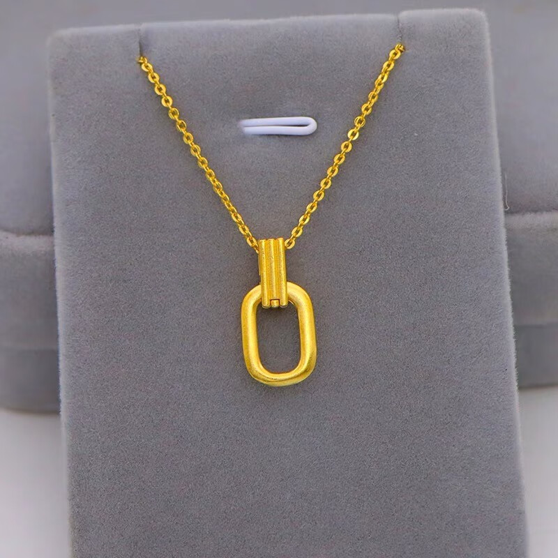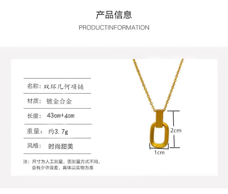 Tongrubi Old Phoenix Gold Store Light Luxury Niche Necklace for Women 18k Yellow Gold Geometric Double Ring Clavicle Chain Sand Geometric Double Ring Necklace