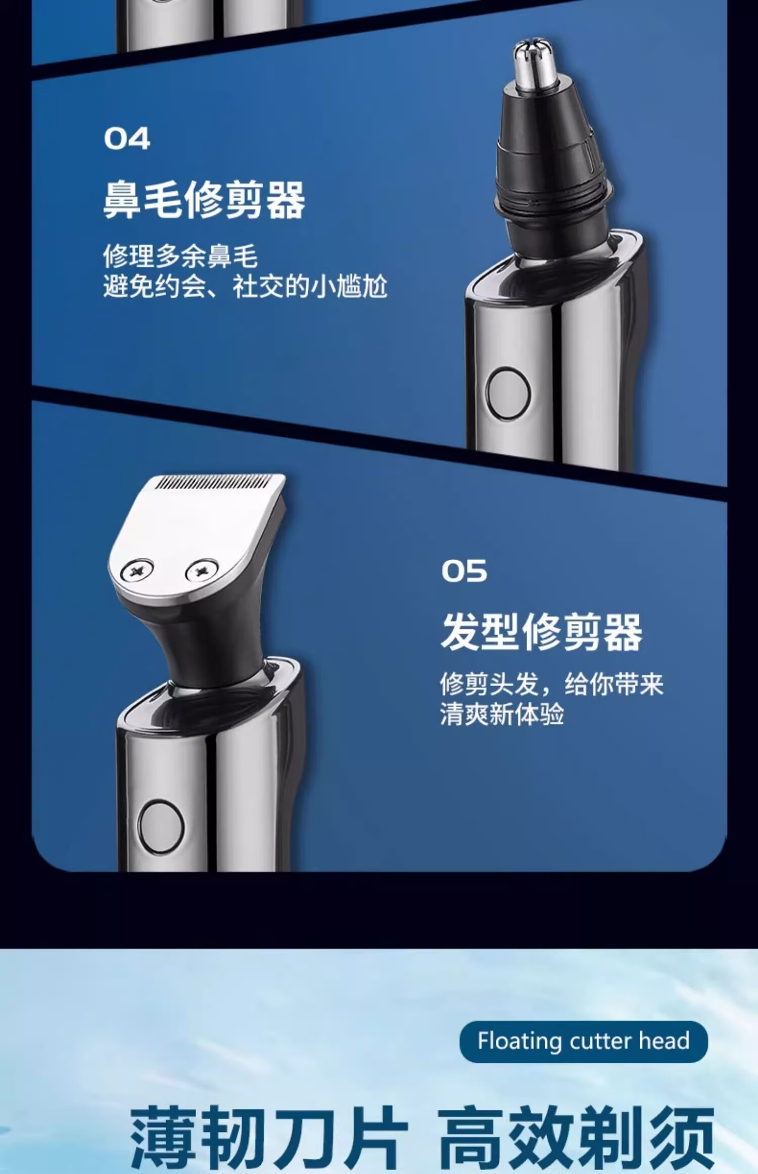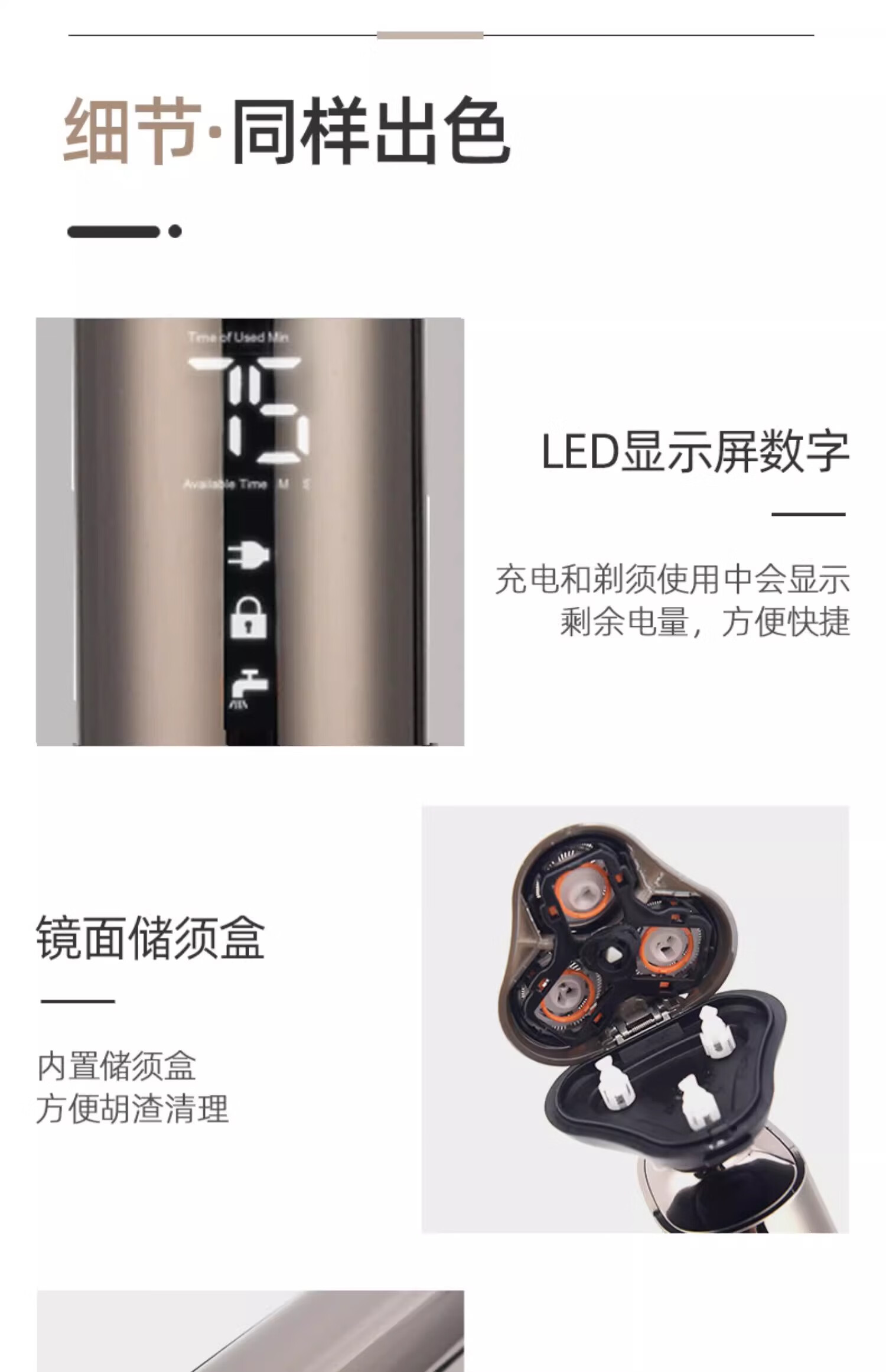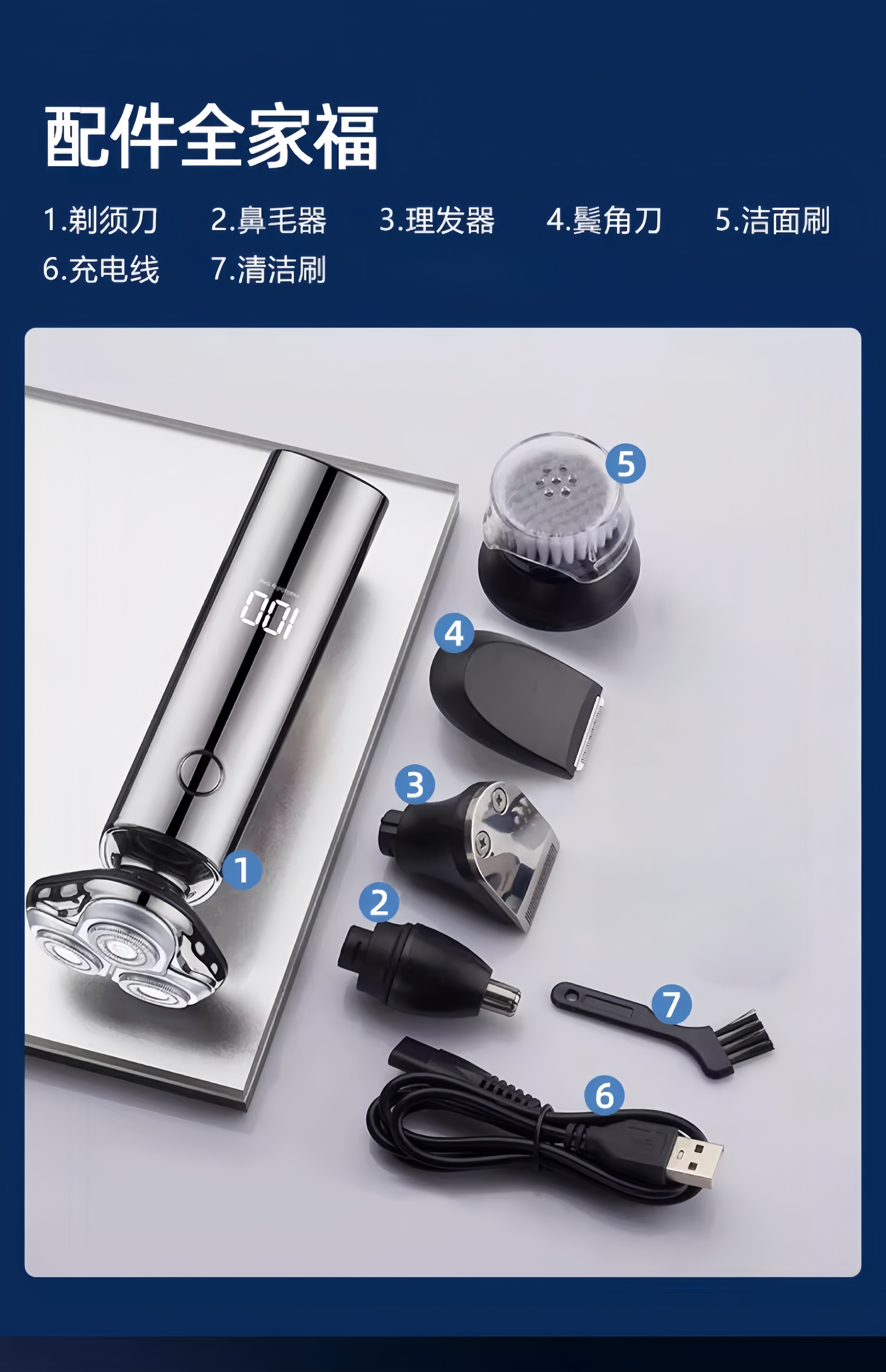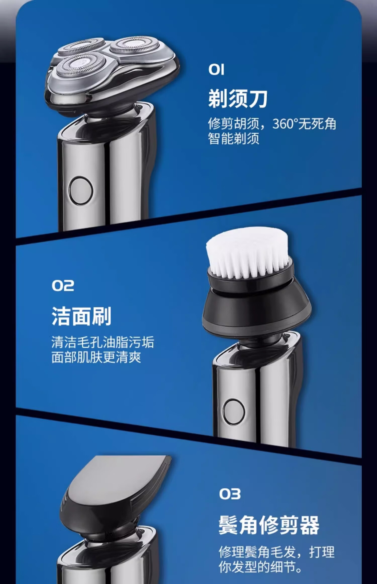 莎蒂【官方正品】德国进口电动剃须刀三头男士多功能2025新款刮胡子旋转式便携款不留黑点刮胡刀原装的 【数显款】配鼻毛器 +理发头+ 鬓角刀+洗脸器 【升级款】90天续航丨升级5W超大功率更干净