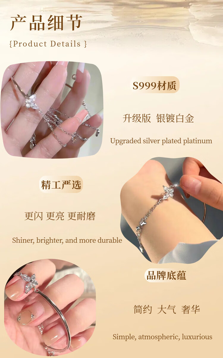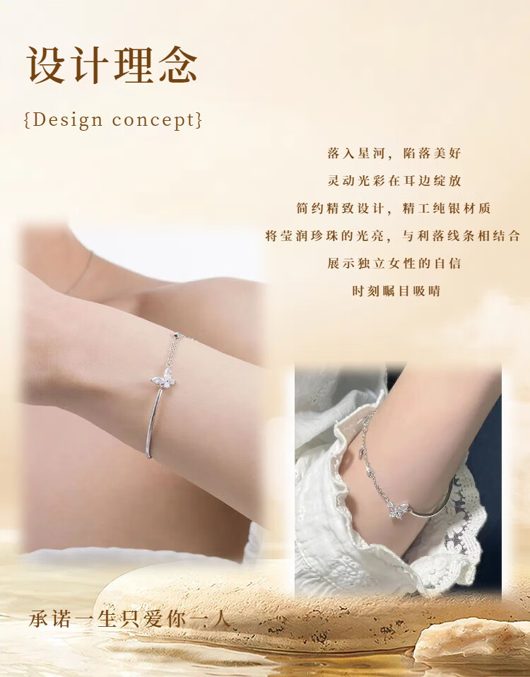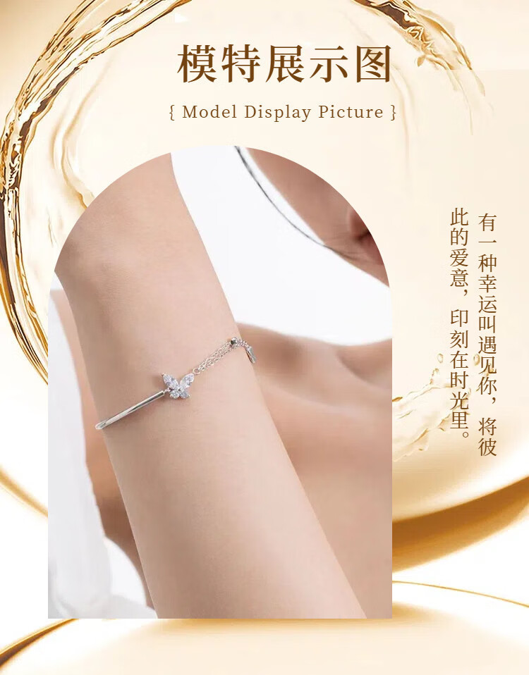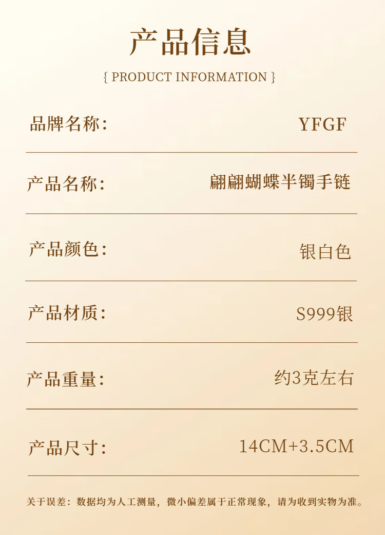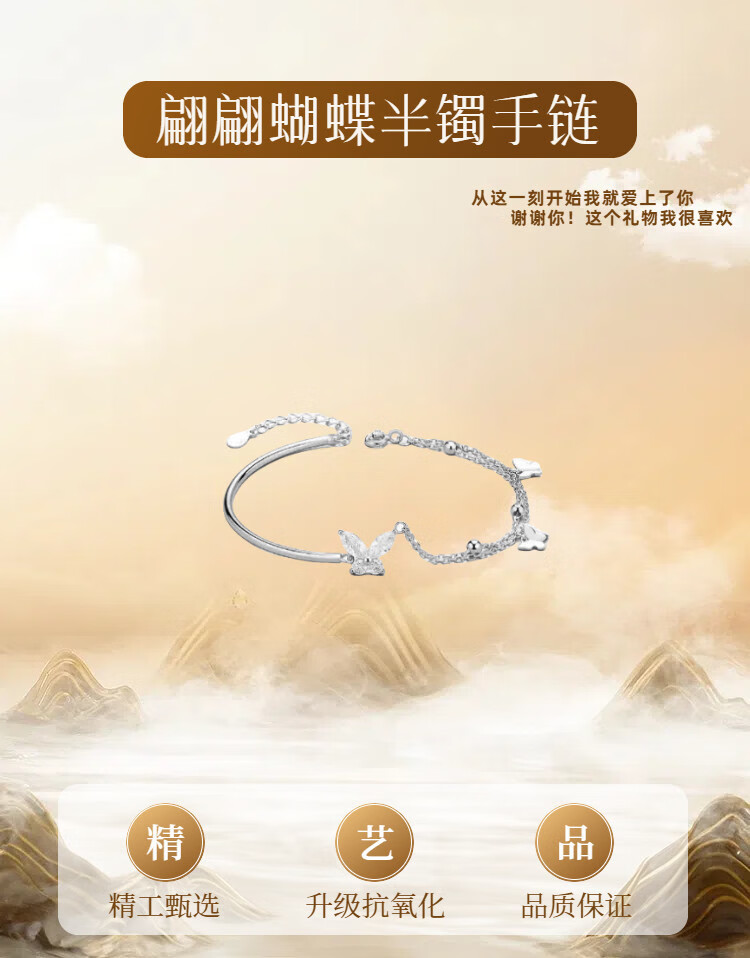 Xiaomeng Lao Phoenix S999 sterling silver half-bracelet butterfly bracelet bracelet half-chain new ins design niche light luxury bestie gift YFGF beige mini jewelry bag with material certificate Pianpian butterfly half-bracelet