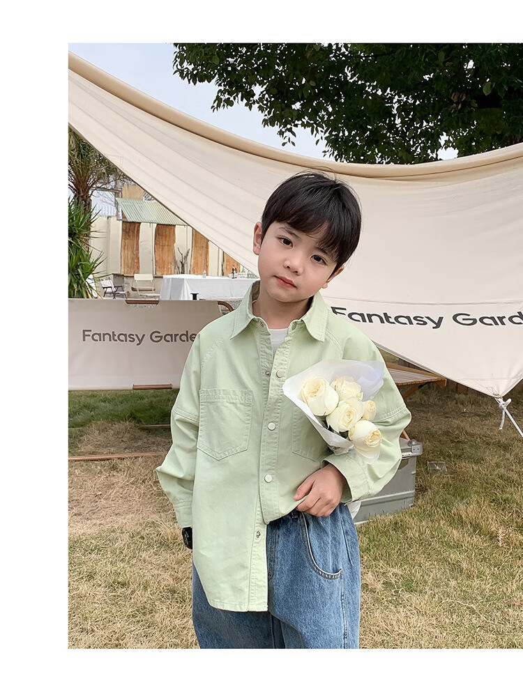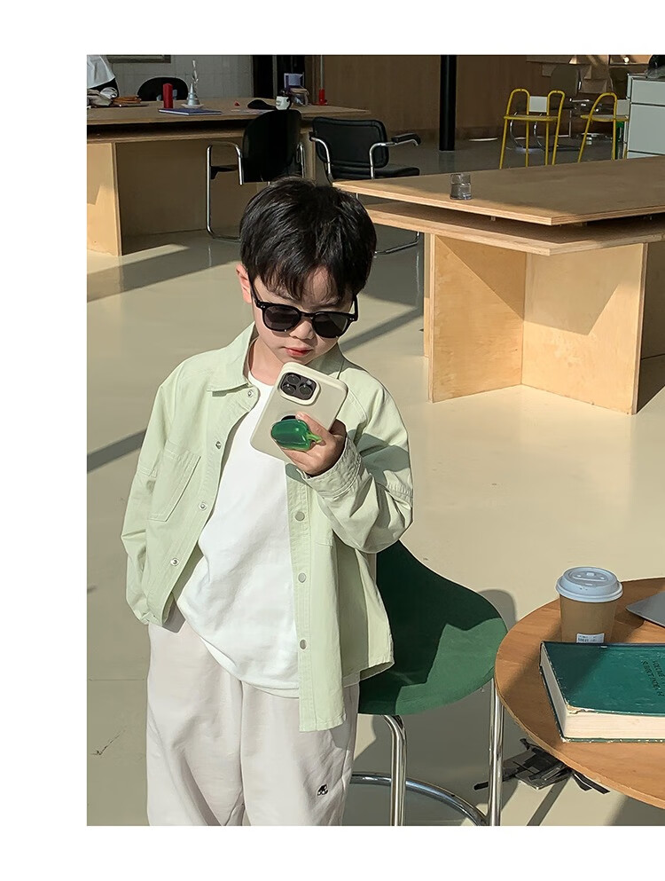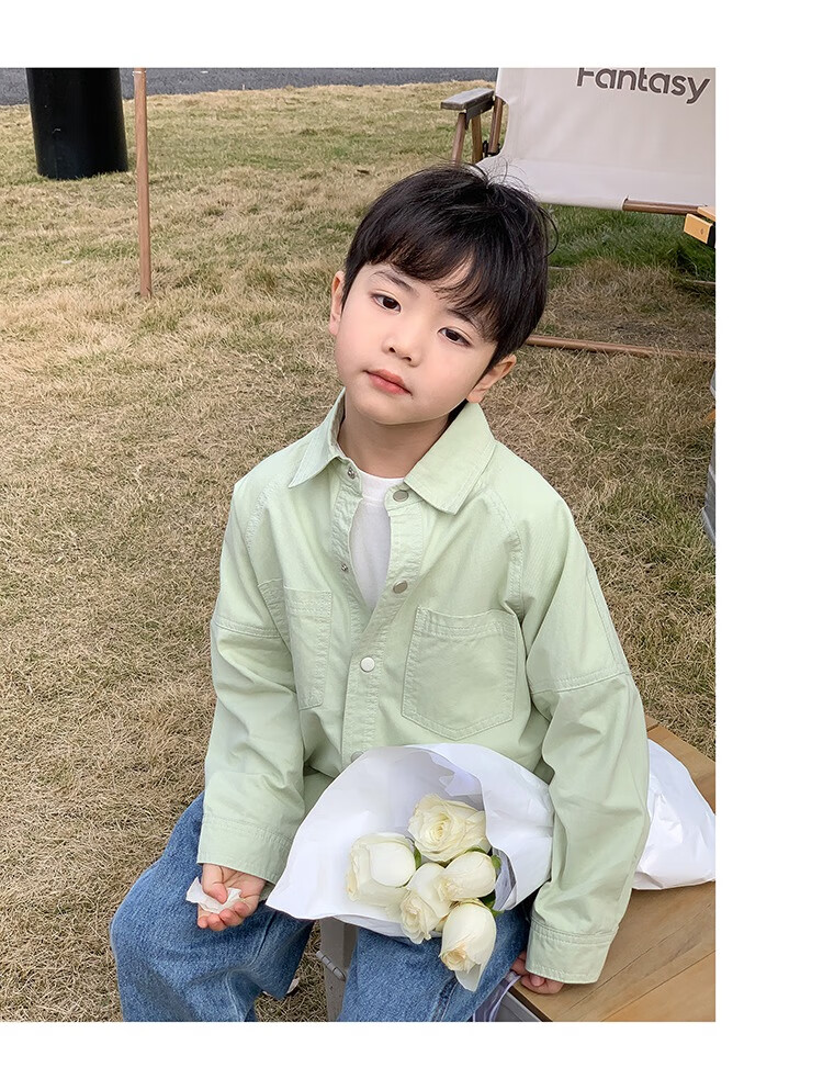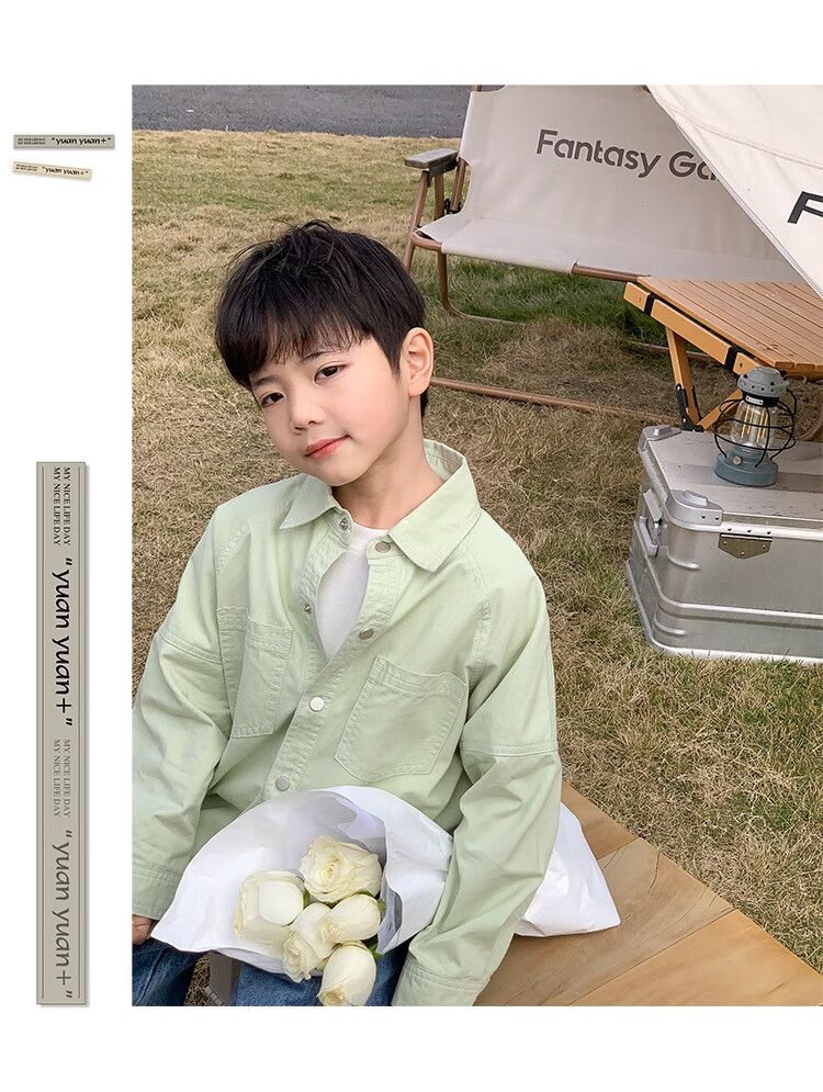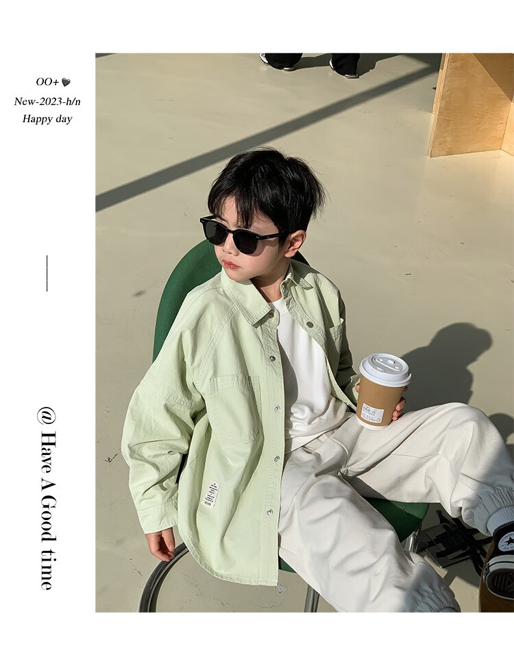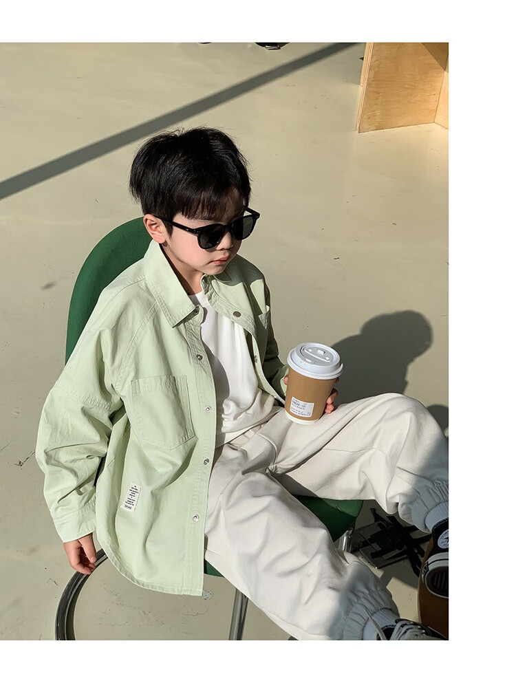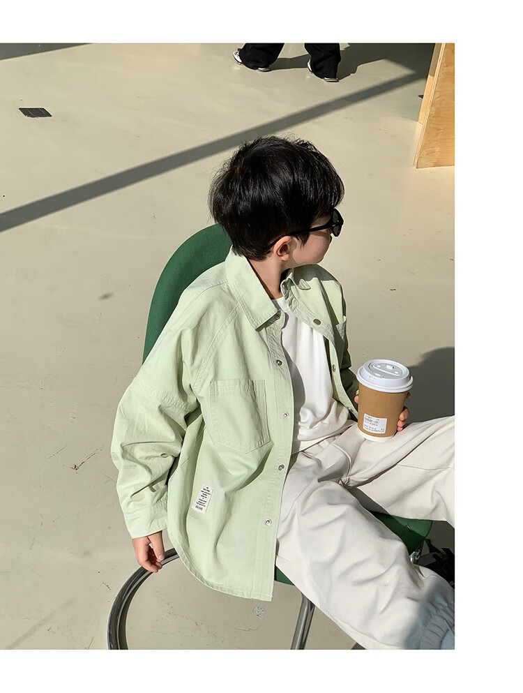 Children's clothing boys' contrasting line shirts 2025 new children's shirts spring and autumn styles for medium and large children long-sleeved trendy autumn tops green 130