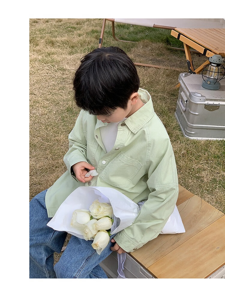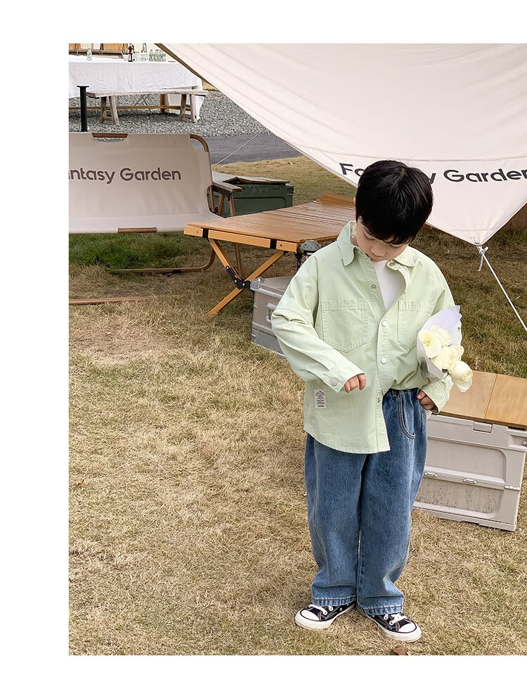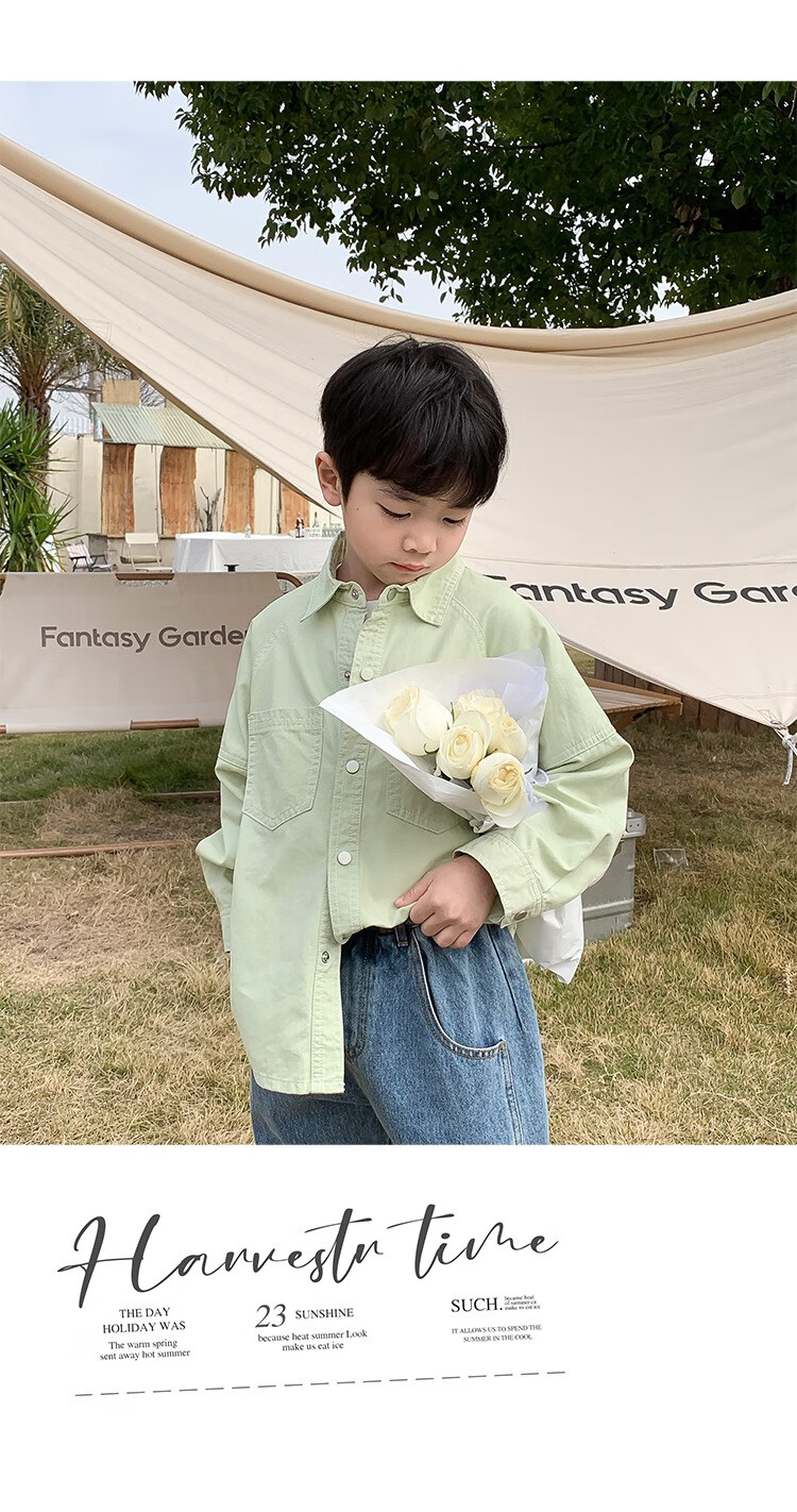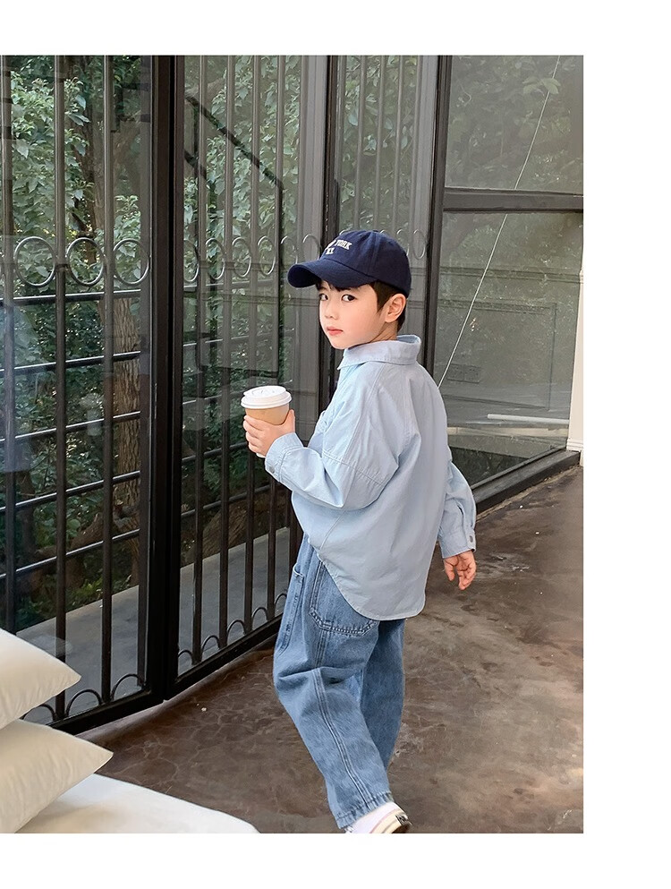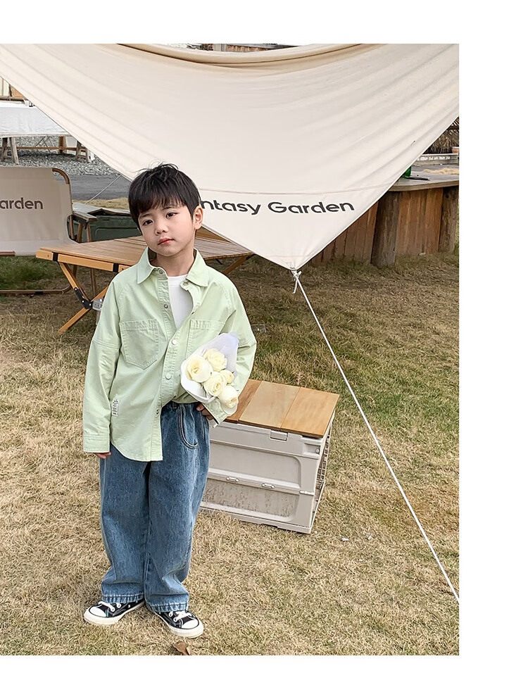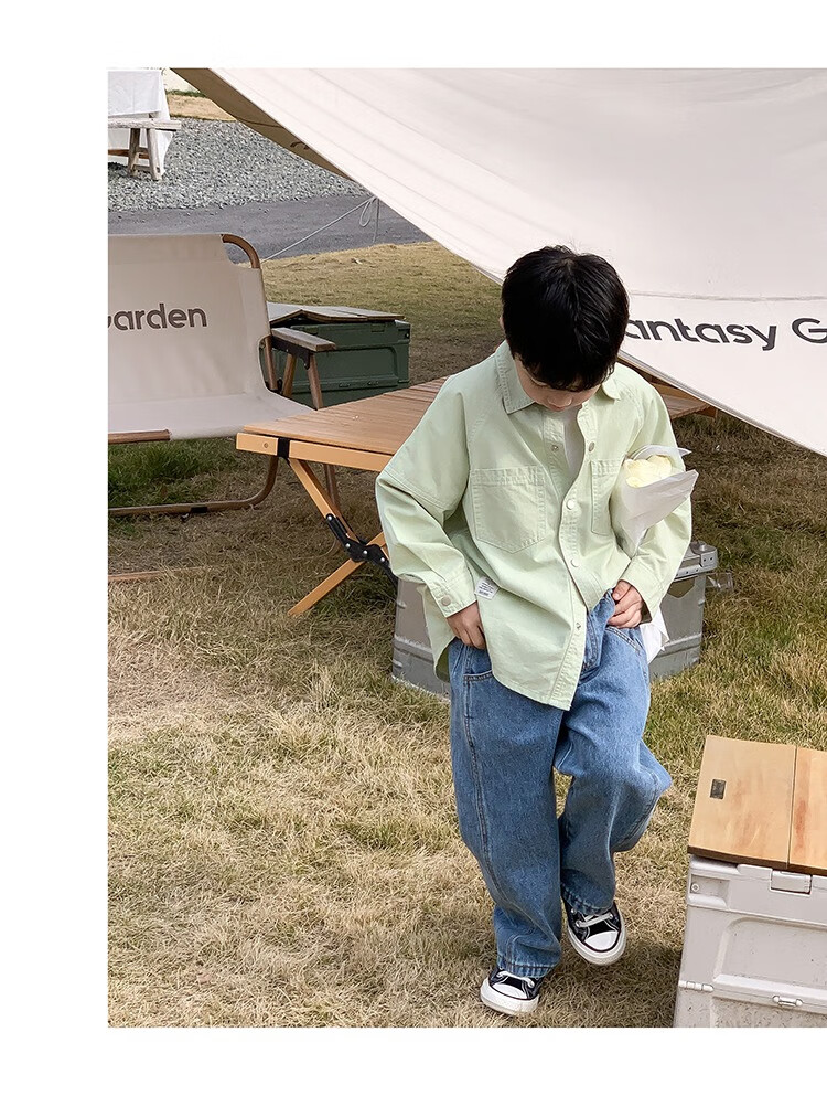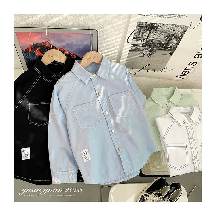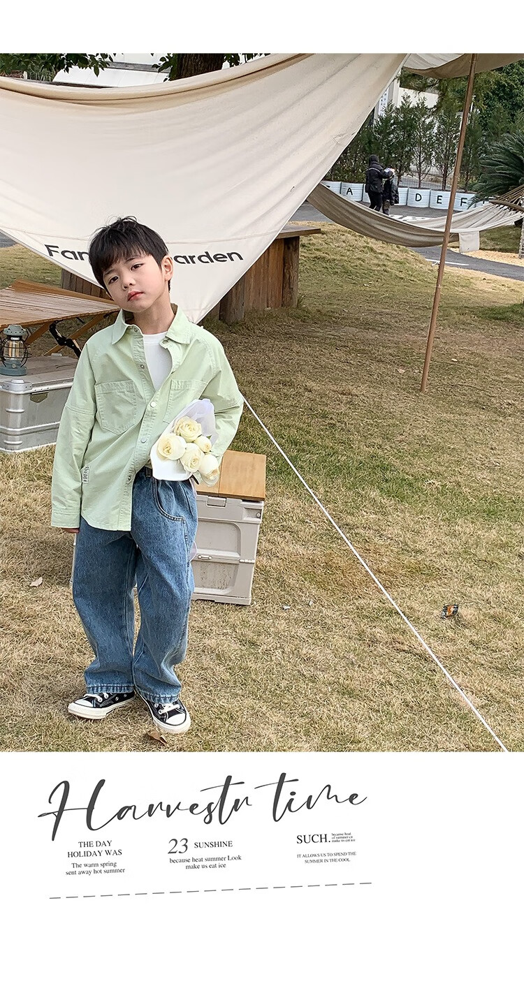 Children's clothing boys' contrasting line shirts 2025 new children's shirts spring and autumn styles for medium and large children long-sleeved trendy autumn tops green 130