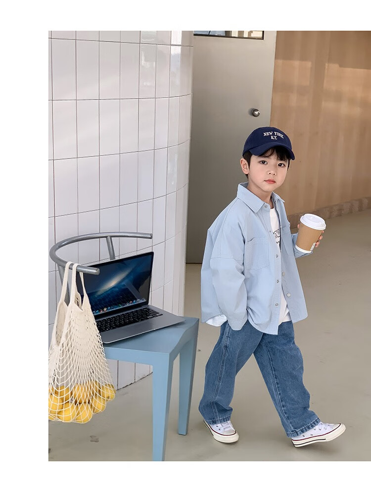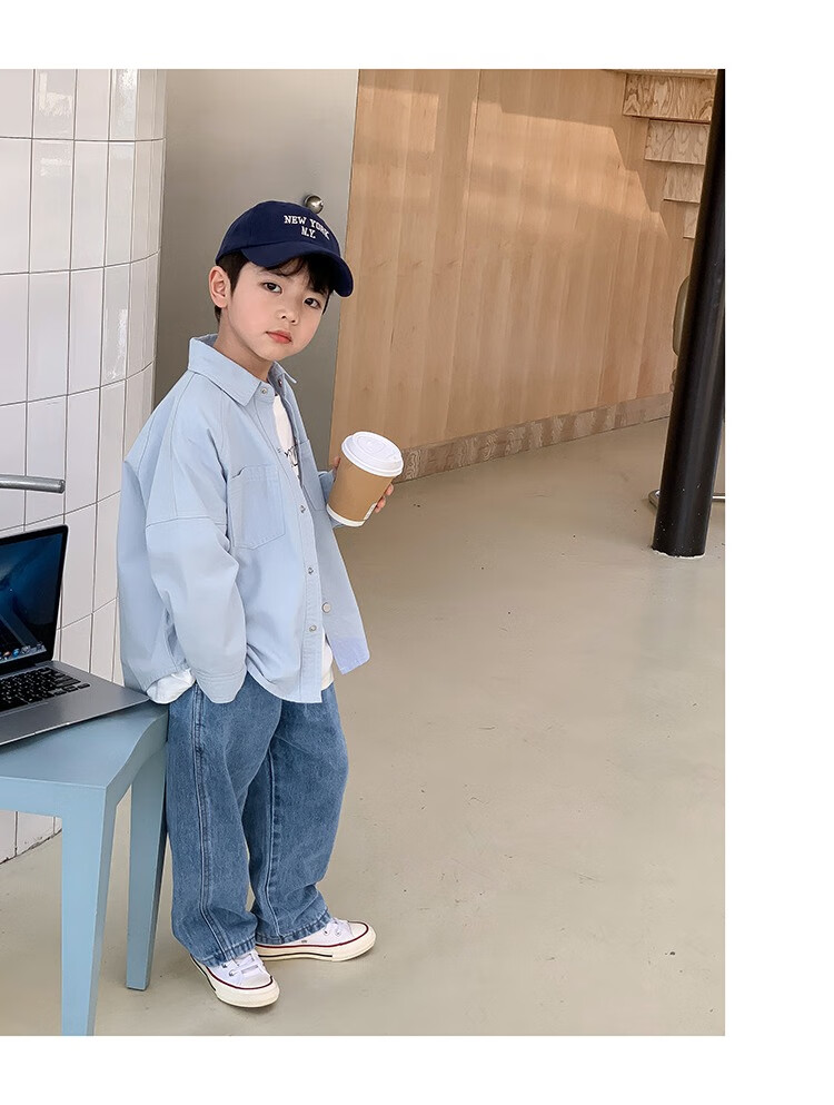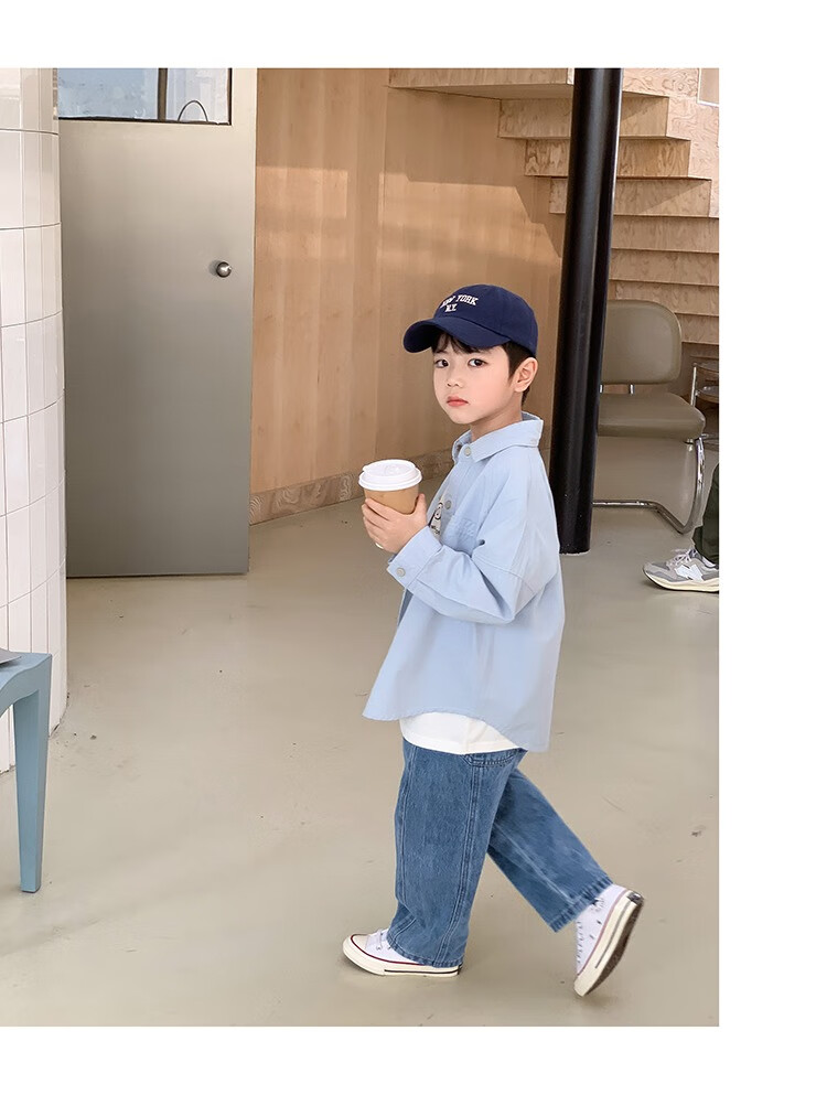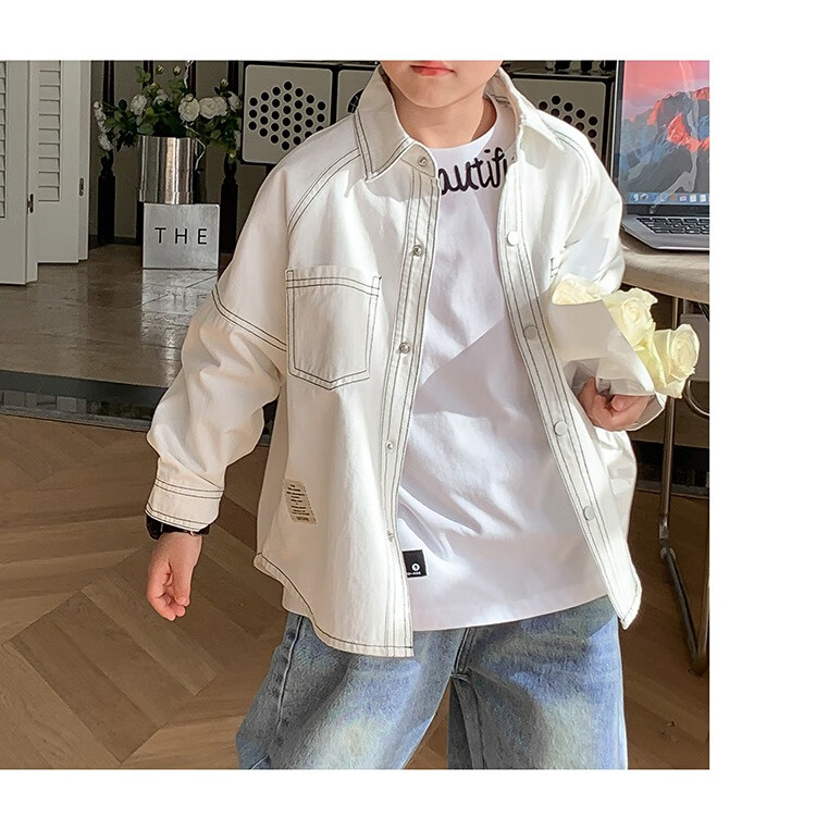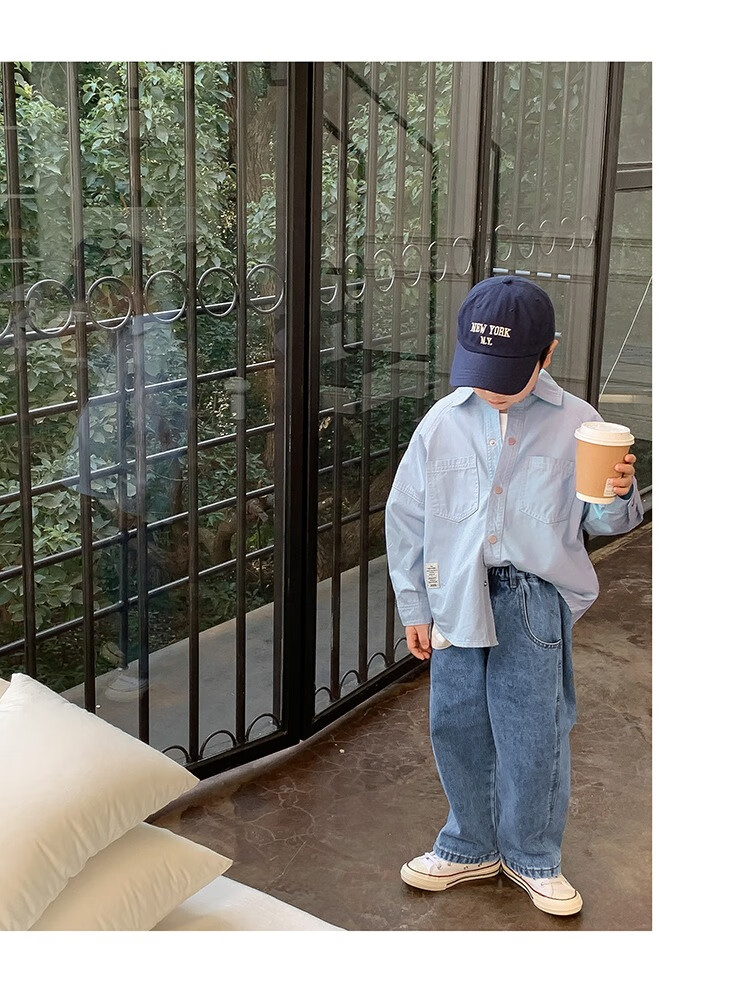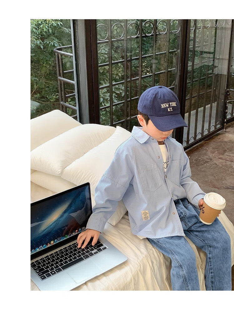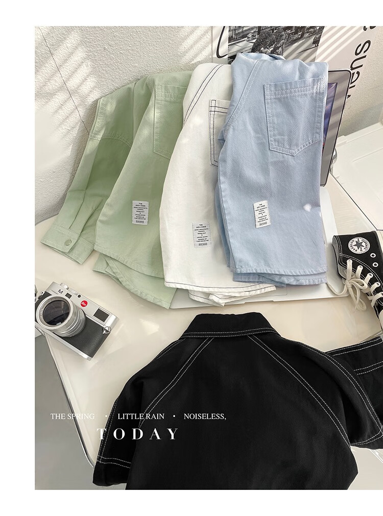 Children's clothing boys' contrasting line shirts 2025 new children's shirts spring and autumn styles for medium and large children long-sleeved trendy autumn tops green 130