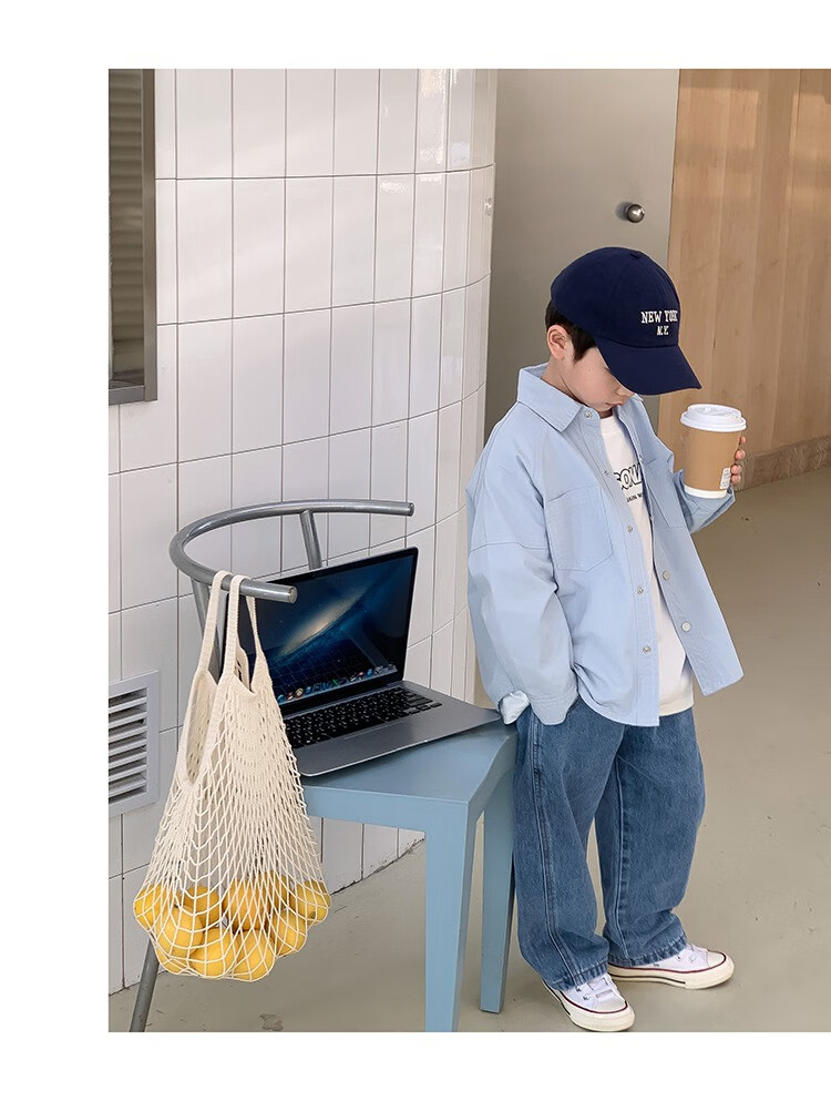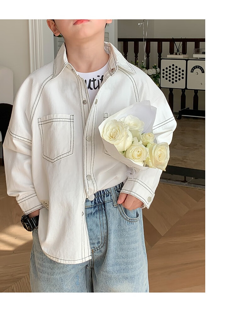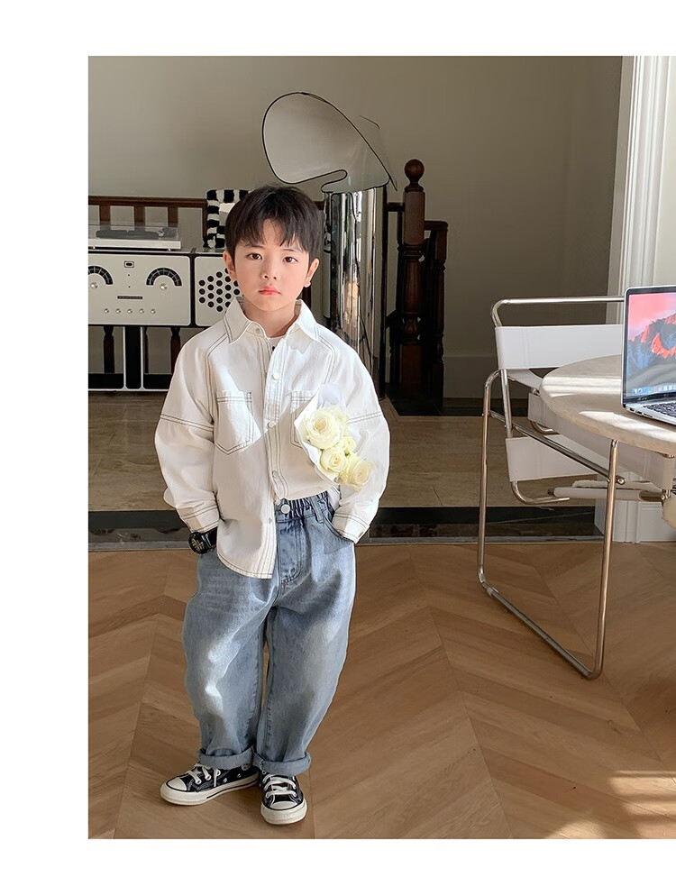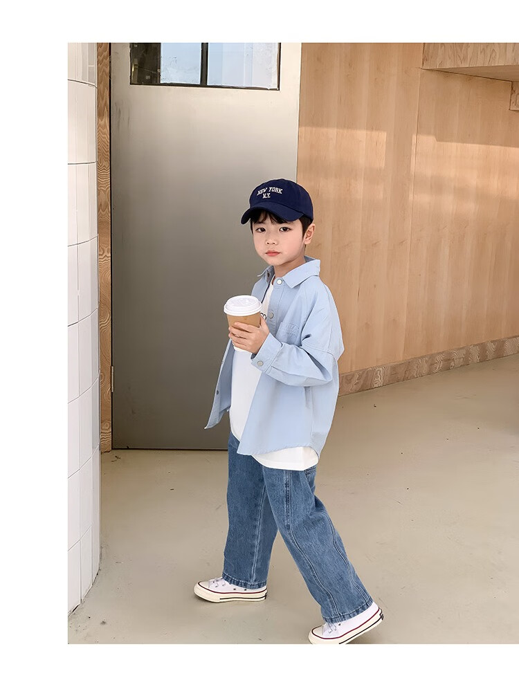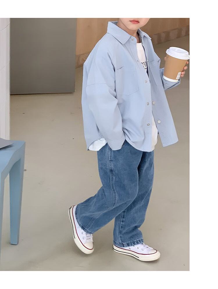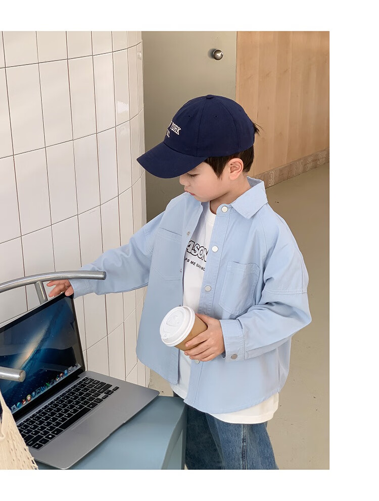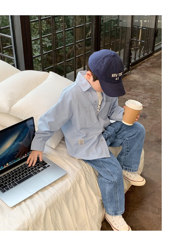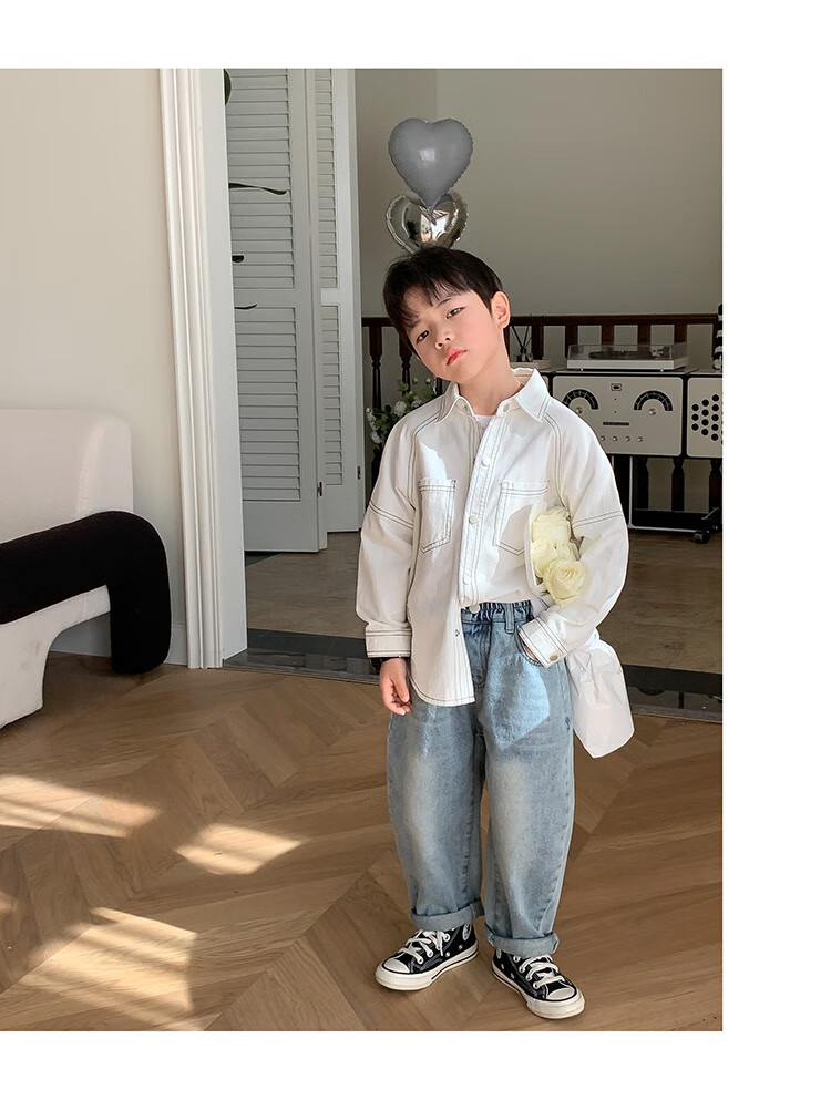 Children's clothing boys' contrasting line shirts 2025 new children's shirts spring and autumn styles for medium and large children long-sleeved trendy autumn tops green 130