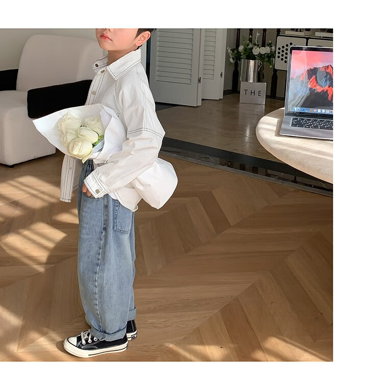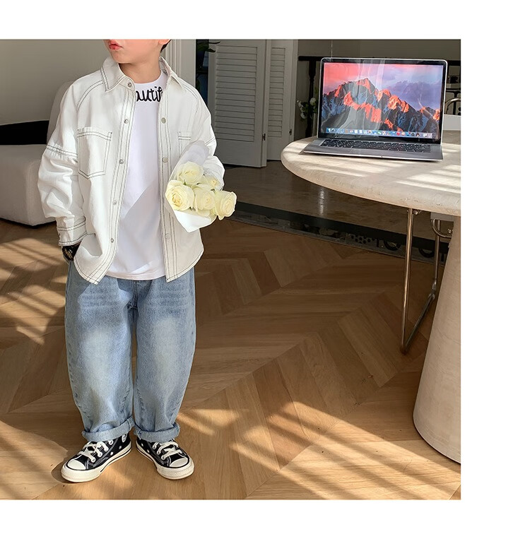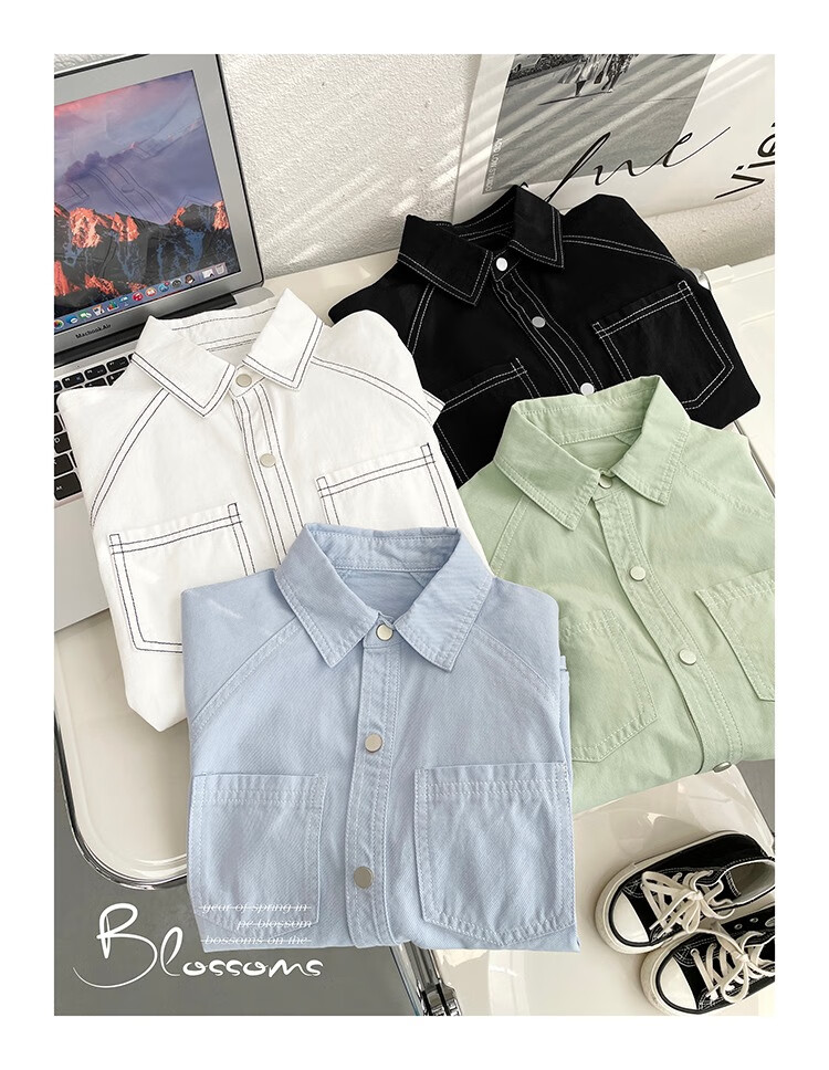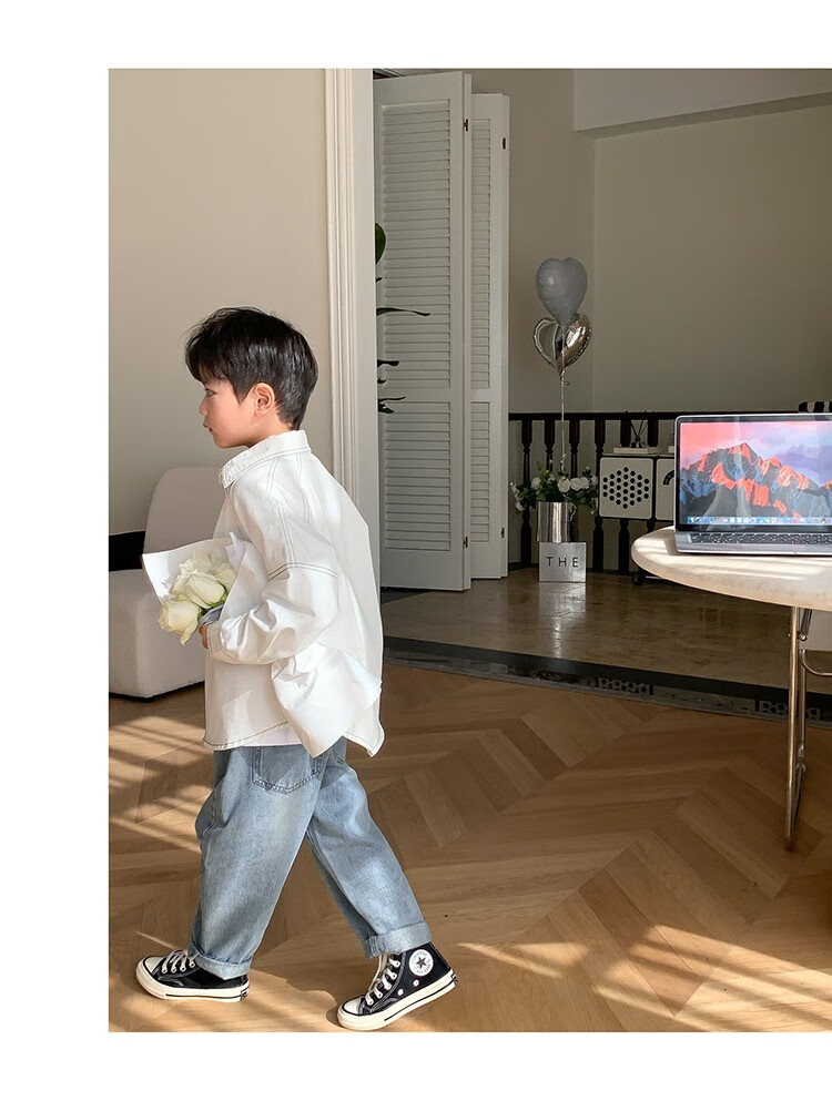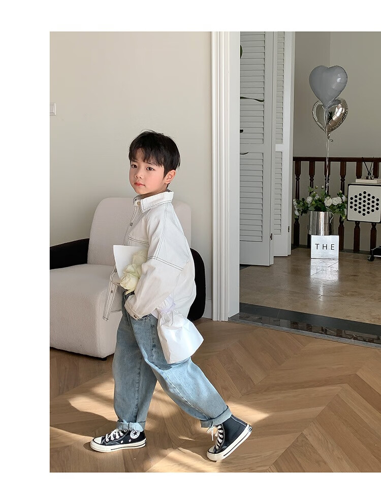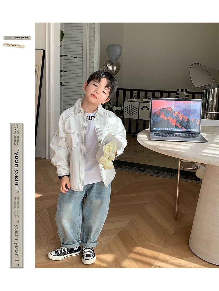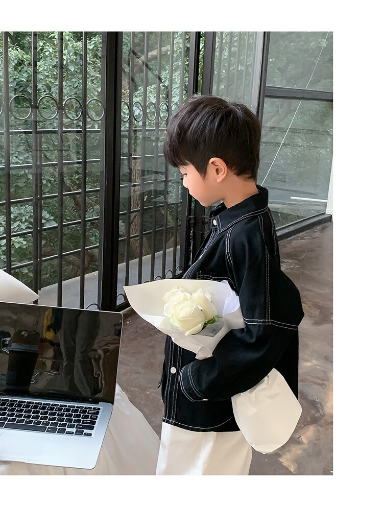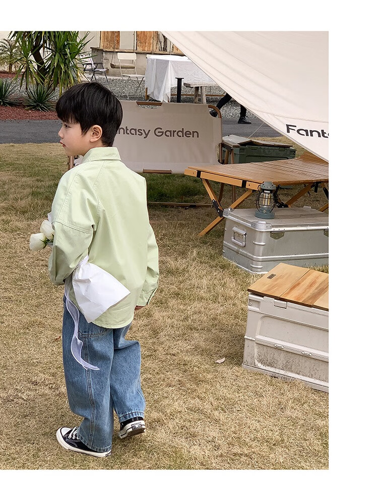 Children's clothing boys' contrasting line shirts 2025 new children's shirts spring and autumn styles for medium and large children long-sleeved trendy autumn tops green 130