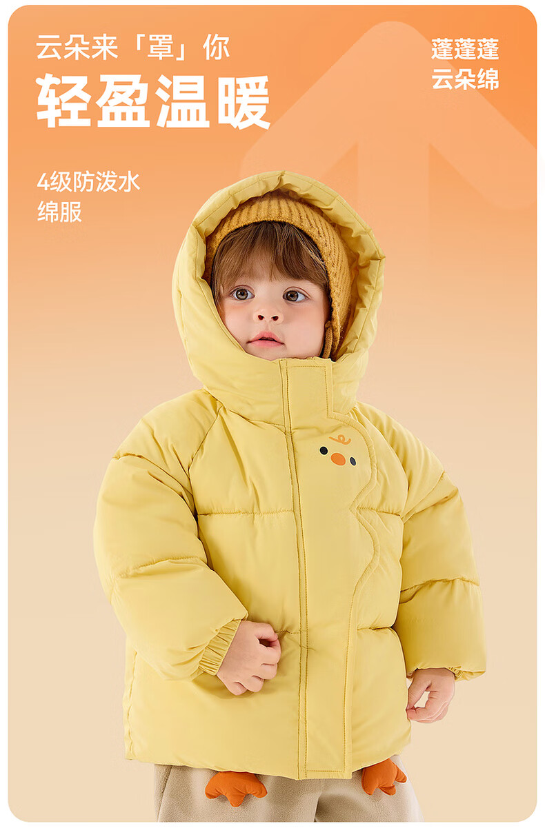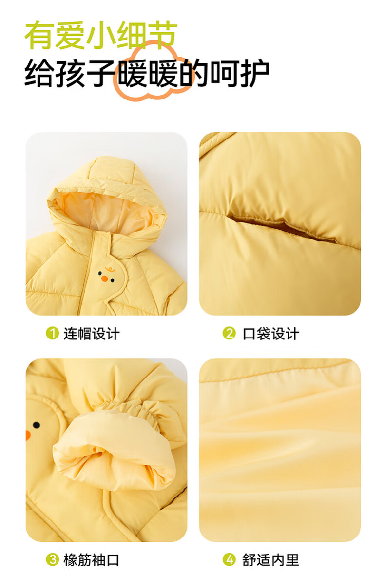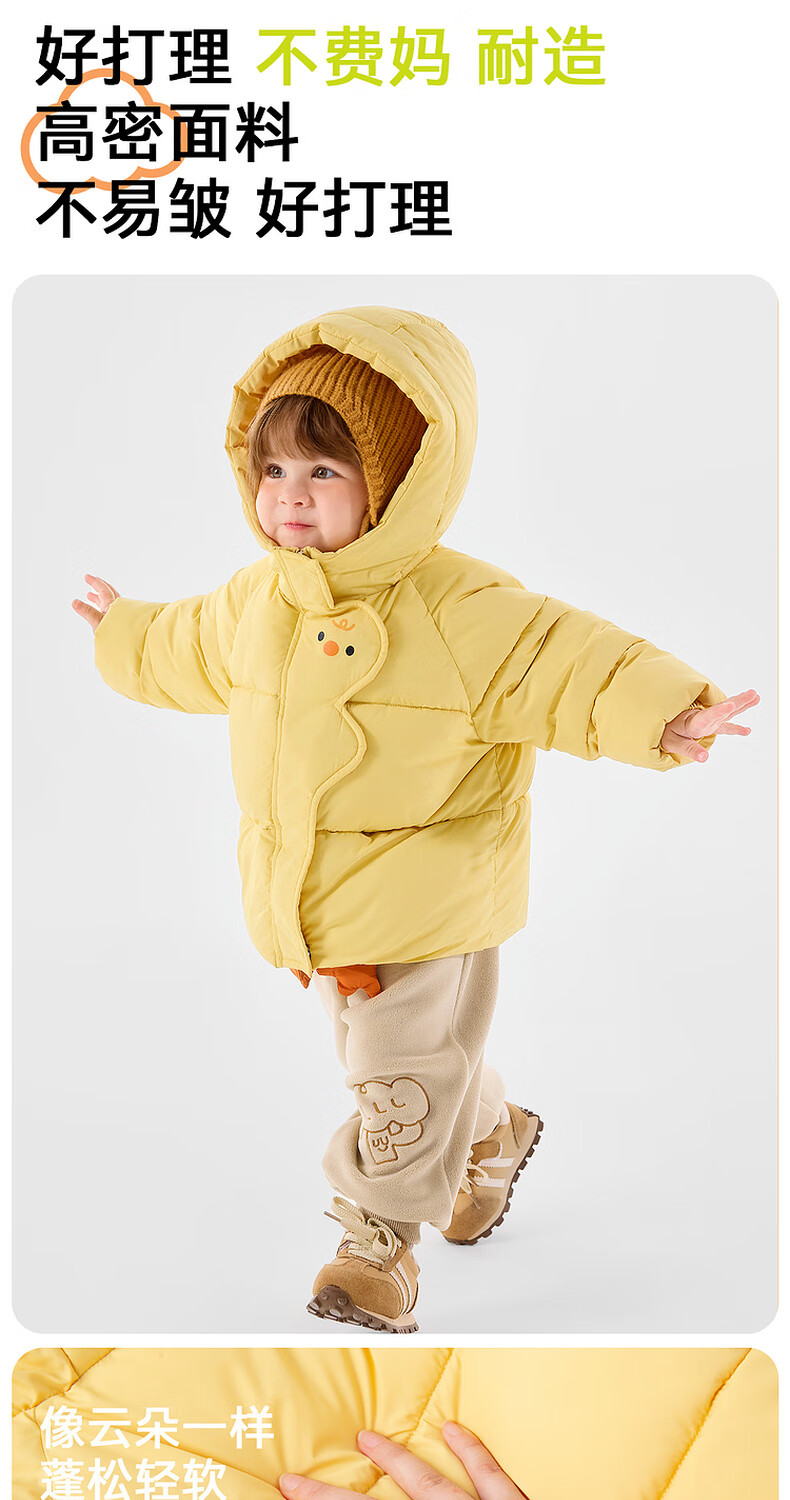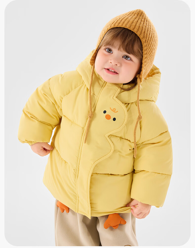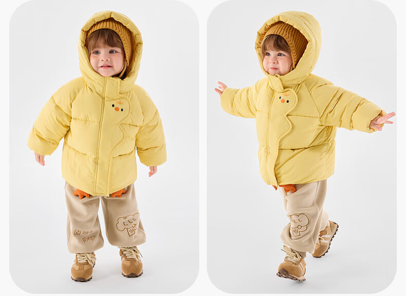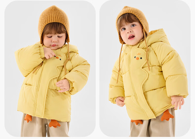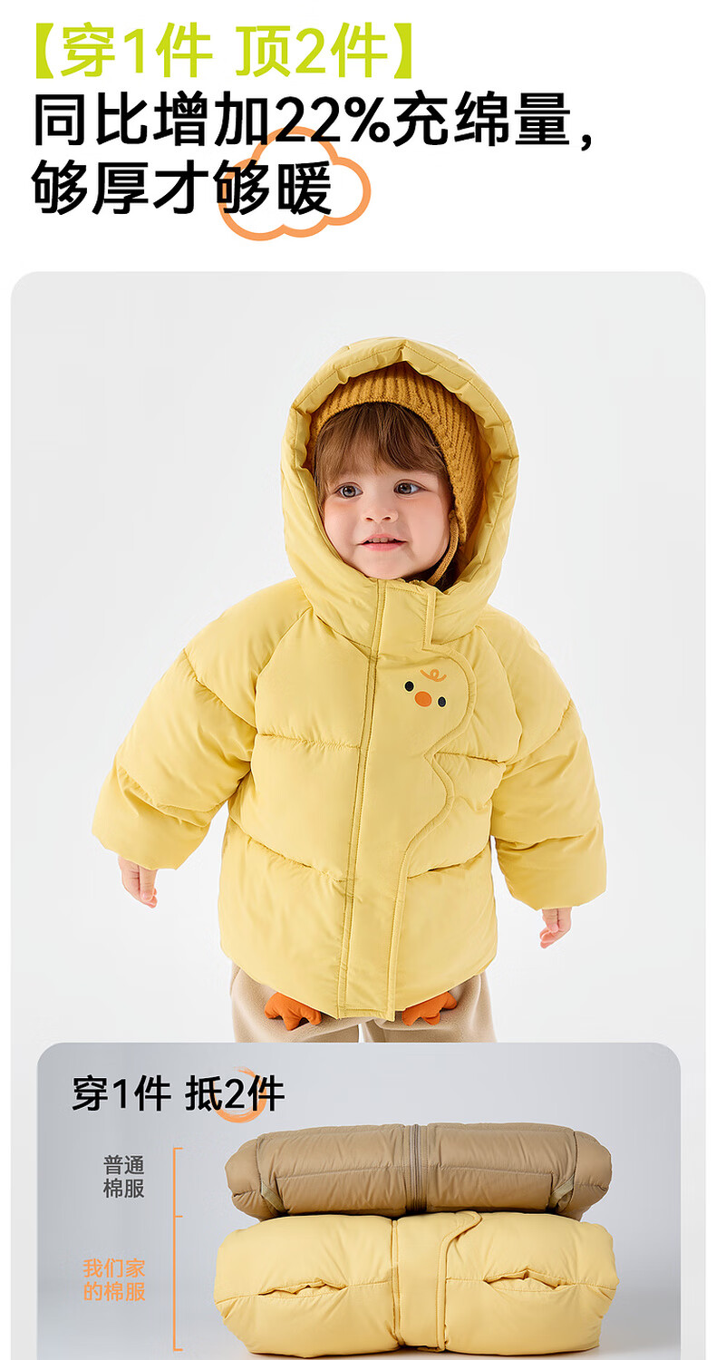 Dudujia Children's Cotton Clothes Cartoon Red New Year Winter Clothes Baby Cotton Jackets Winter Boys Hooded Jackets Girls Clothes Children's Clothes Yellow 90