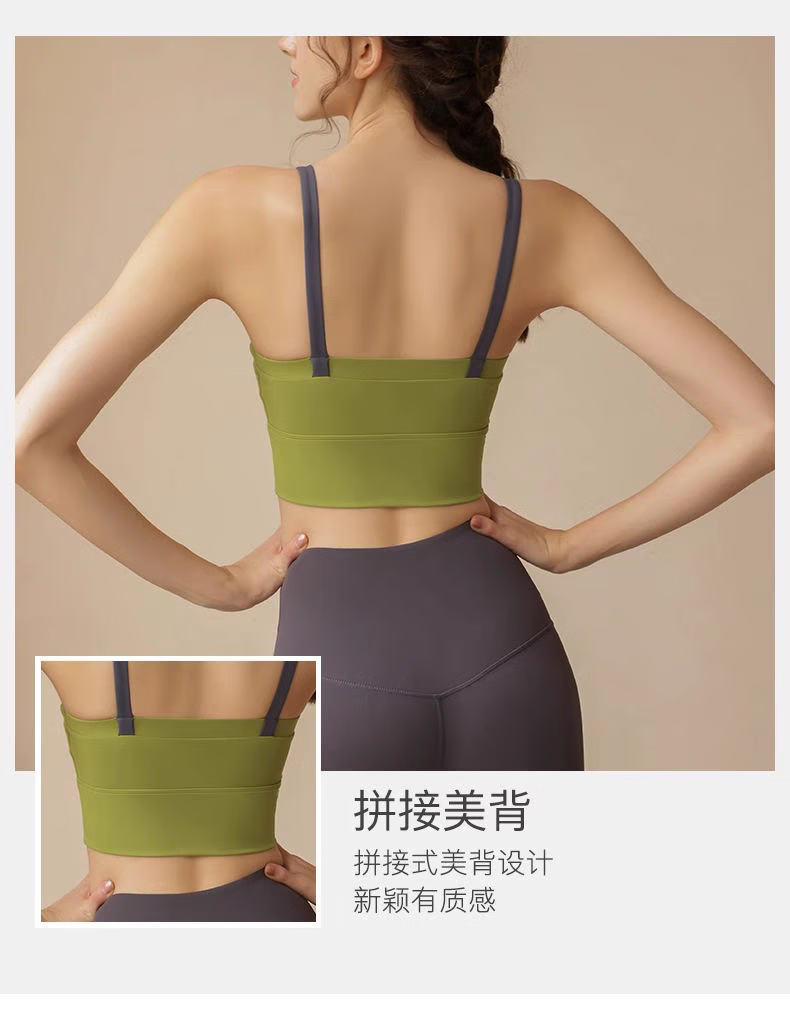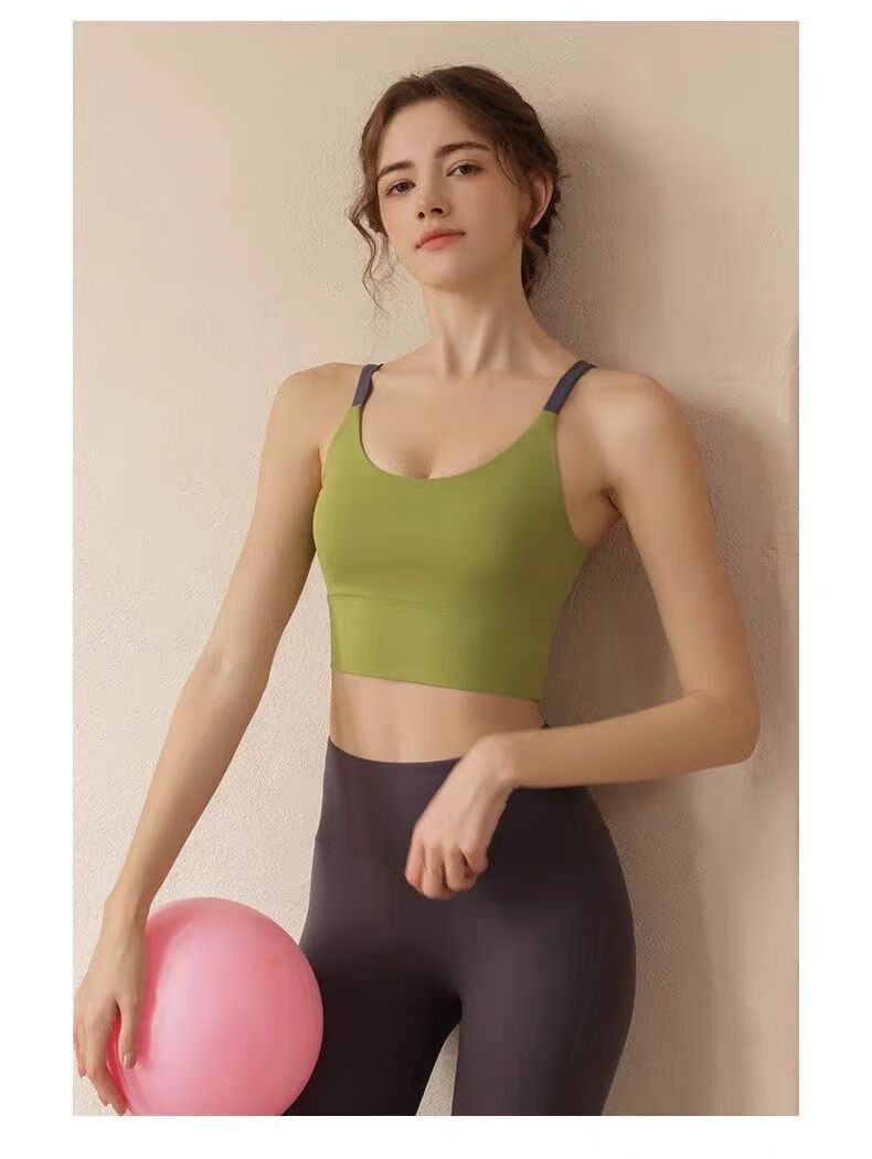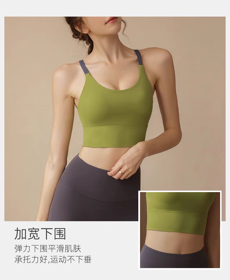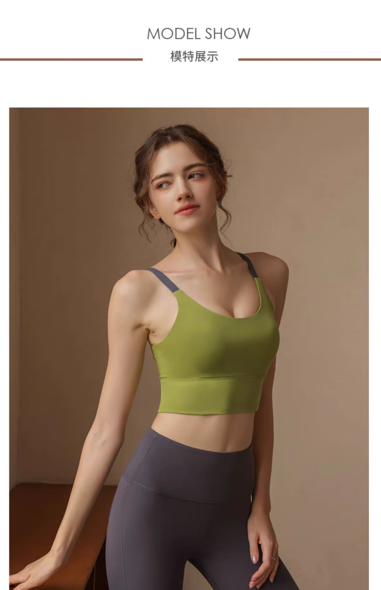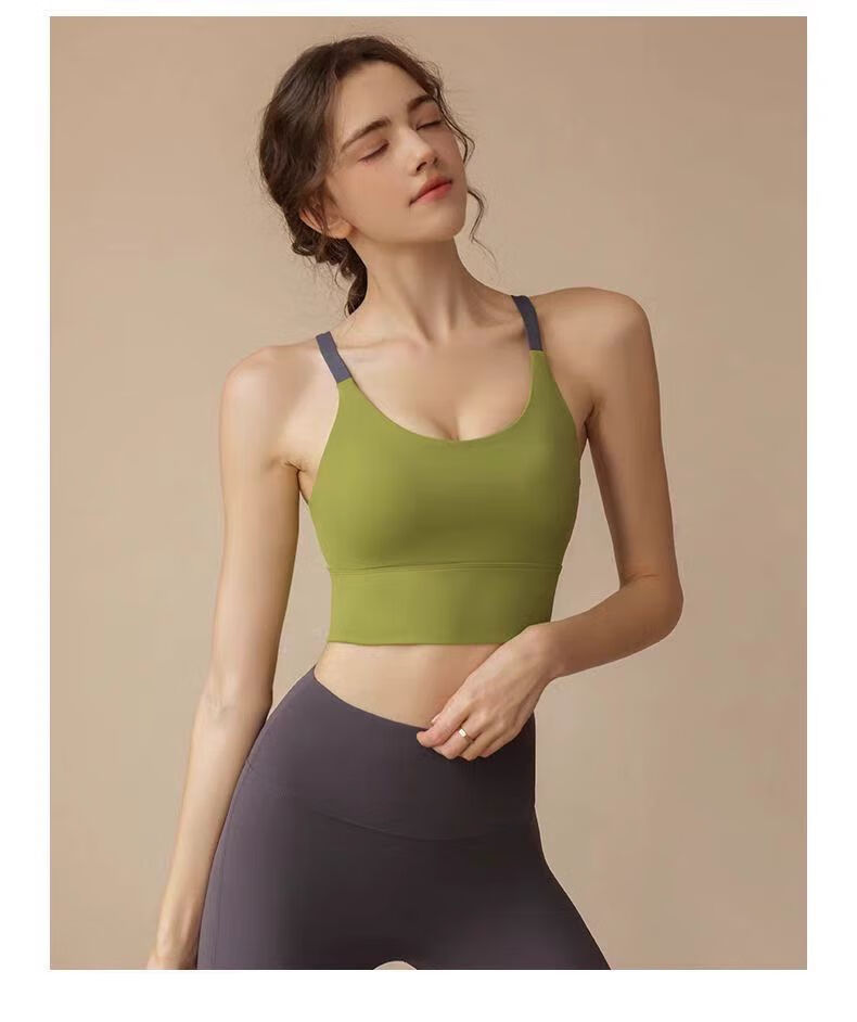 Professional sports bra for women, shock-proof running all-in-one bra, yoga vest, fitness Pula to increase strength, outer wear, avocado green L