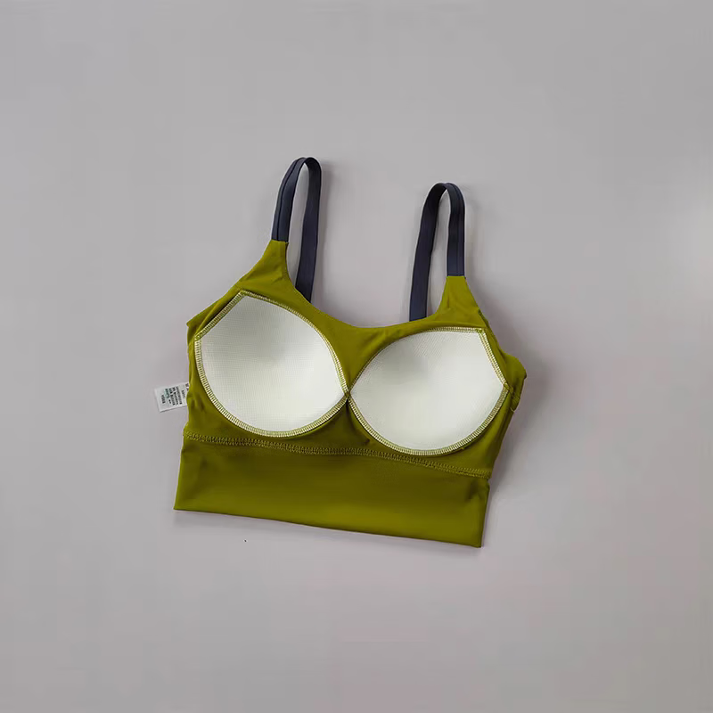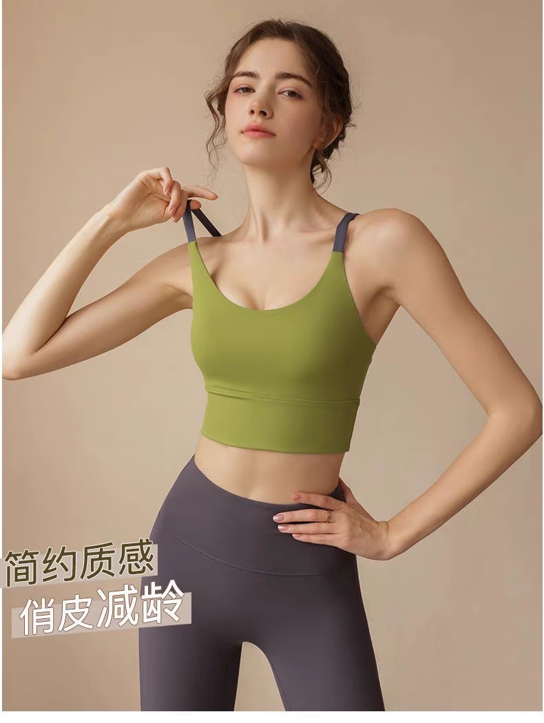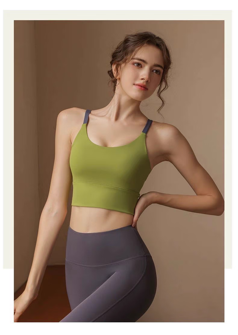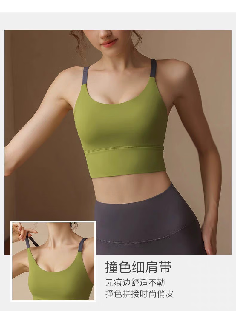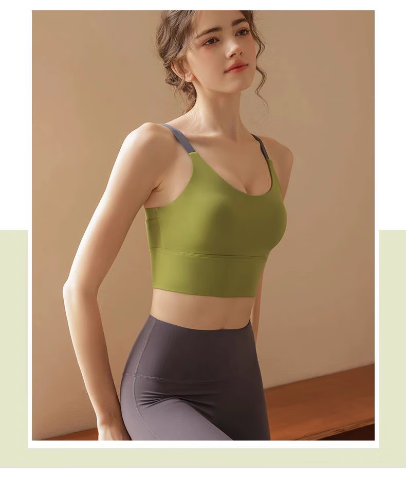 Professional sports bra for women, shock-proof running all-in-one bra, yoga vest, fitness Pula to increase strength, outer wear, avocado green L