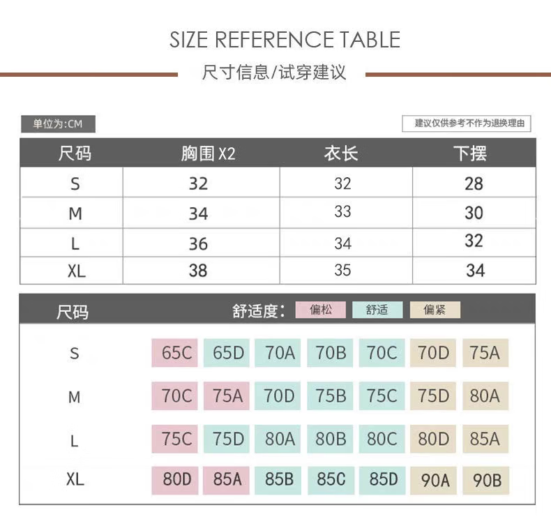 China (cm) 160-165/84-86 165-170 / 88-90 167-172 / 92-96 168-173 / 98-102 170-176 / 106-110