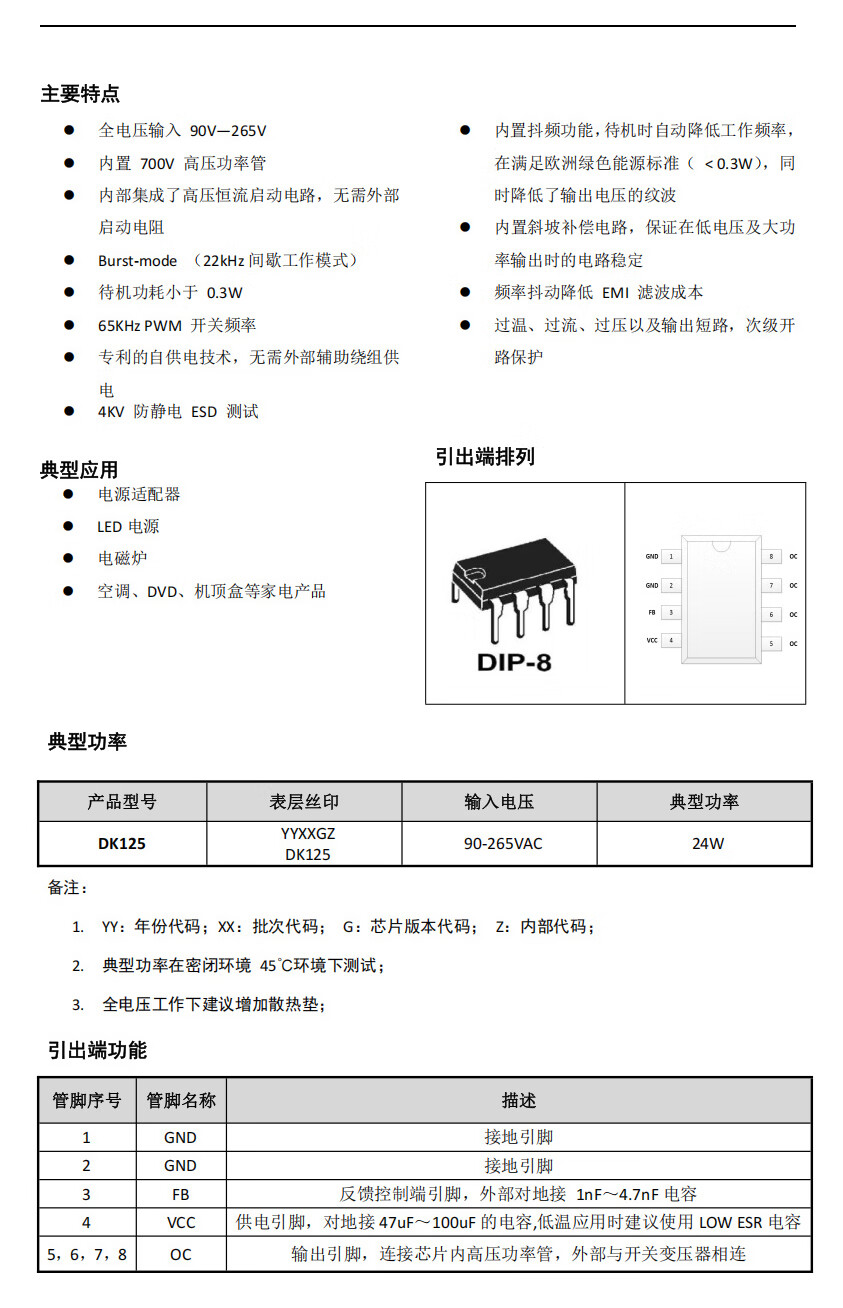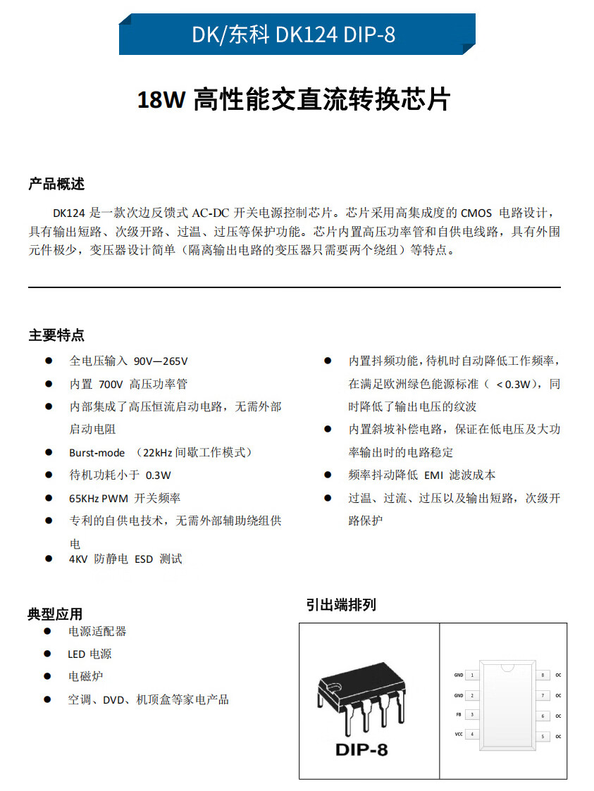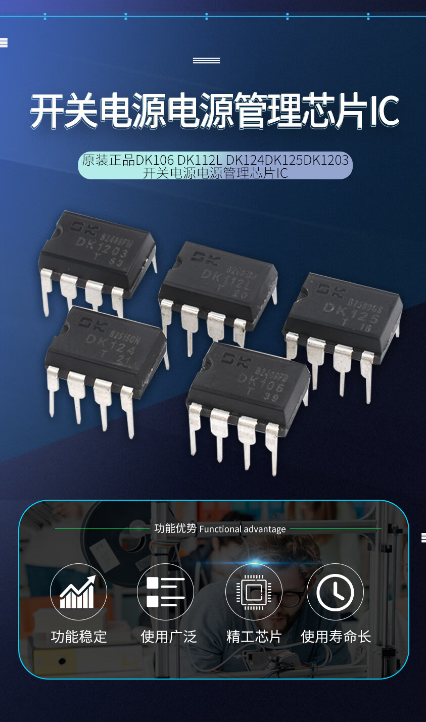 Original genuine DK106 DK112L DK124 DK125DK1203 switching power supply power management chip IC DK/Dongke DK124DIP-8 (2 pieces) No Specifications