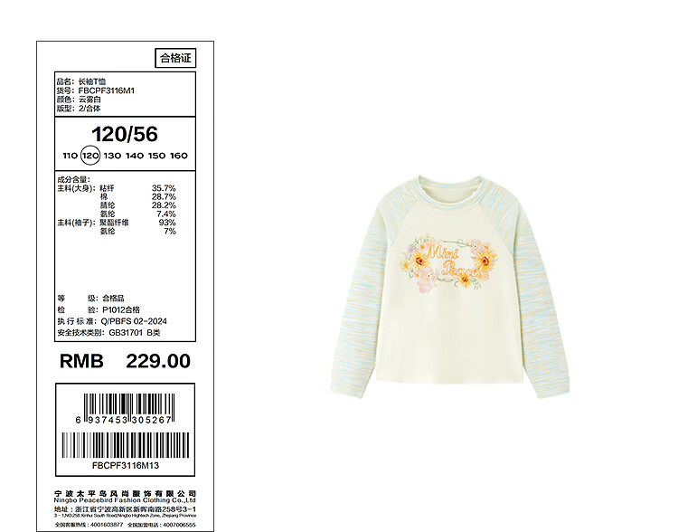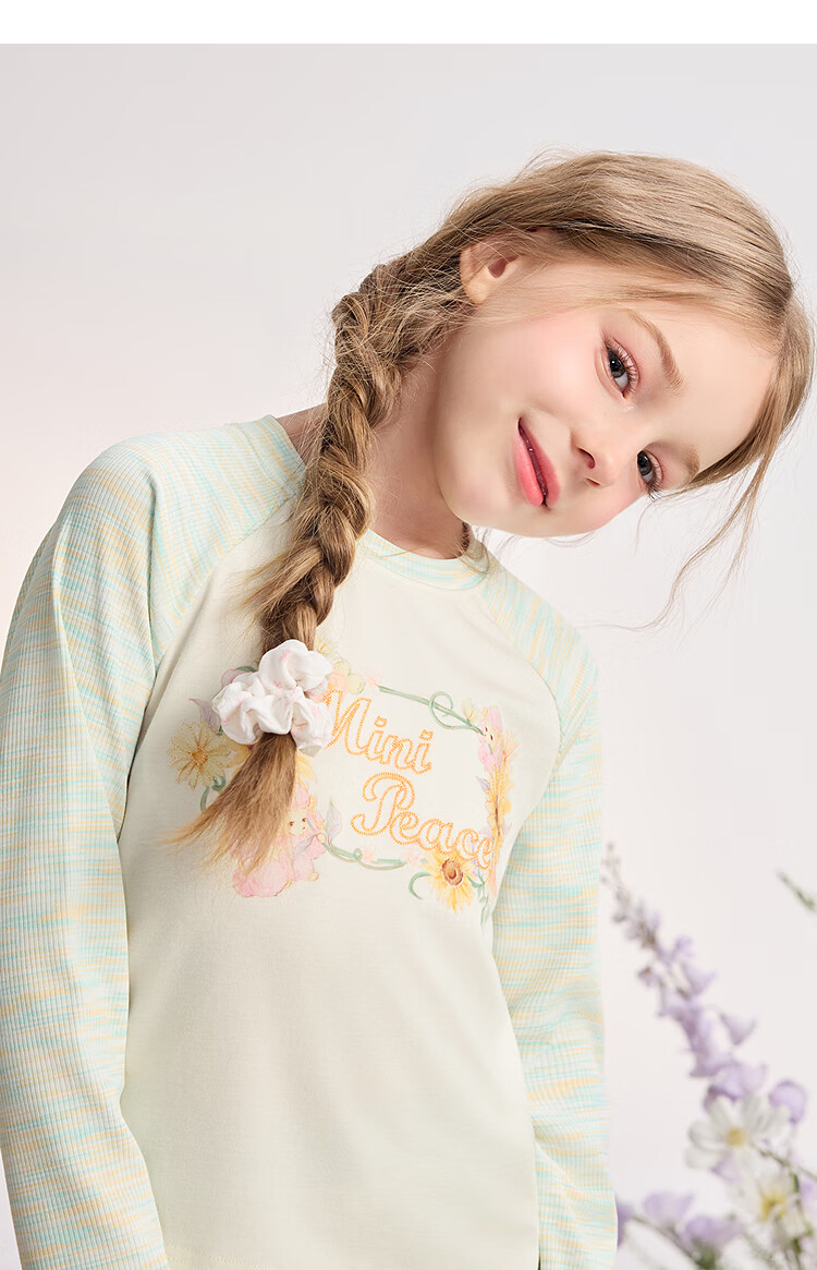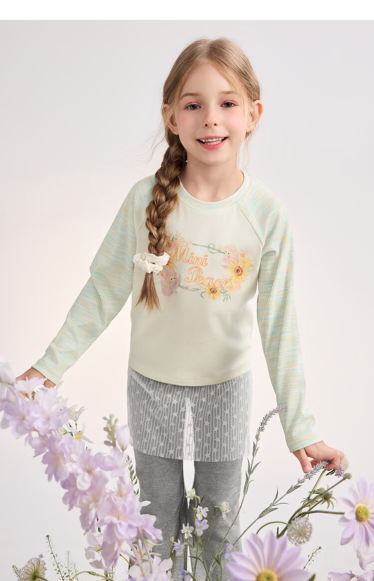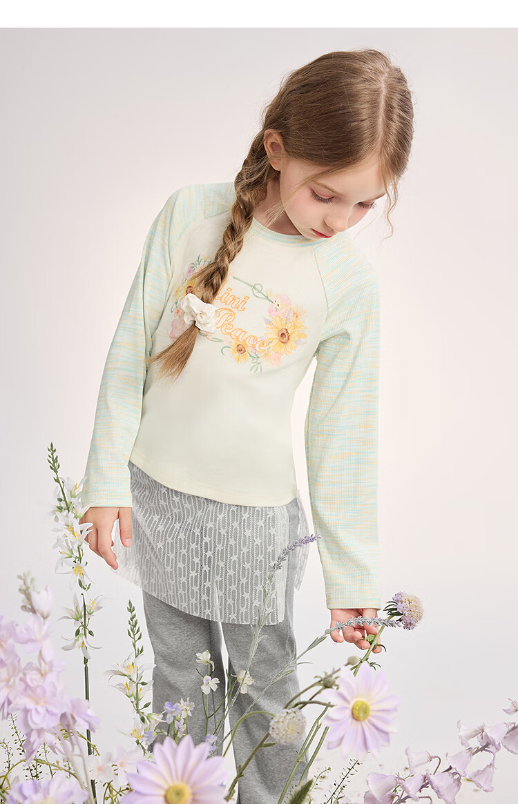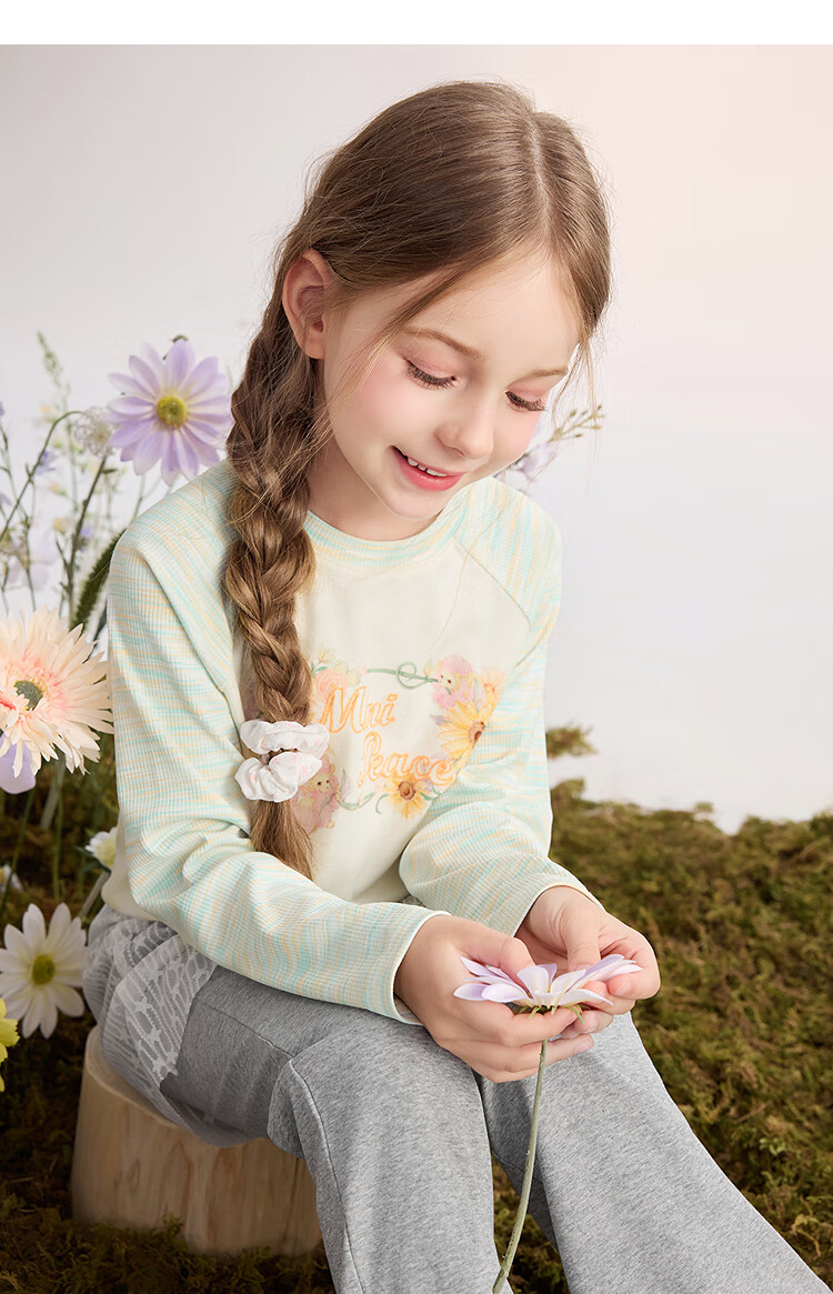 MiniPeace 5A antibacterial PEACEBIRD children's clothing girls long-sleeved T-shirt children's autumn clothing sweet baby girl bottoming shirt cloud white 120