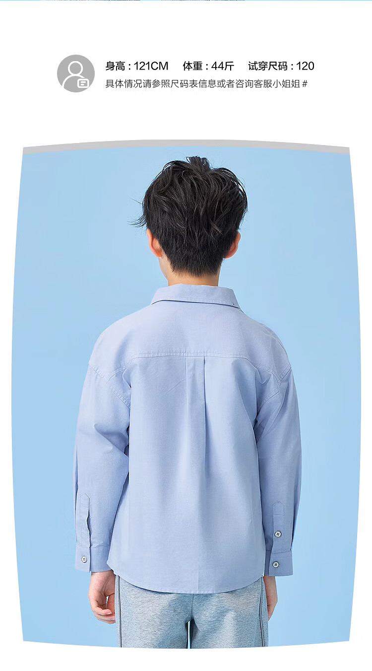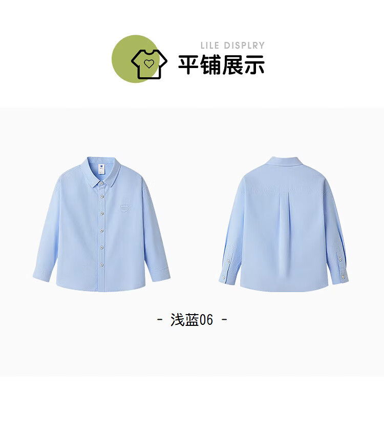 Heilan long-sleeved shirt for boys and girls, autumn pure cotton embroidered shirt for men, light blue 06 140 /68