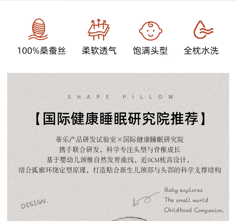 Tile Baby Shaping Pillow Mulberry Silk 0 to 1 Years Old Silk Pillow Baby Gift Newborn Anti-Mild Head Gift Box Gift Box - Mulberry Silk Shaping Pillow (0-1 Years Old)