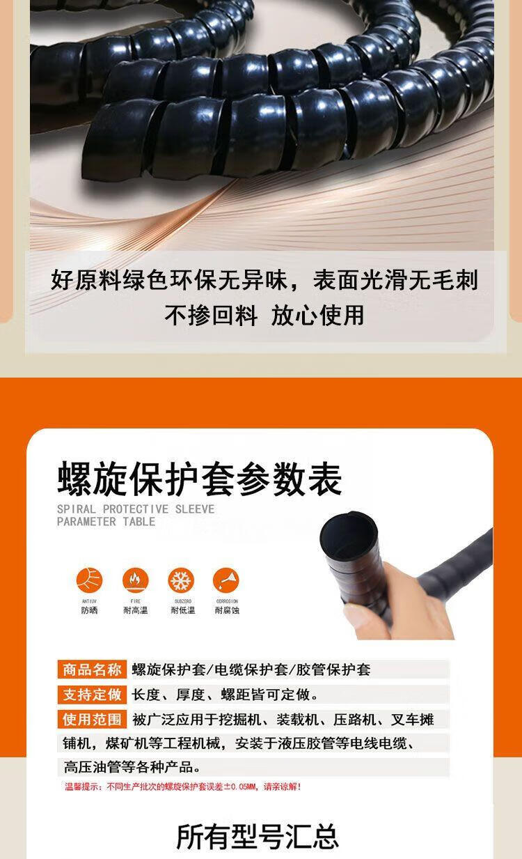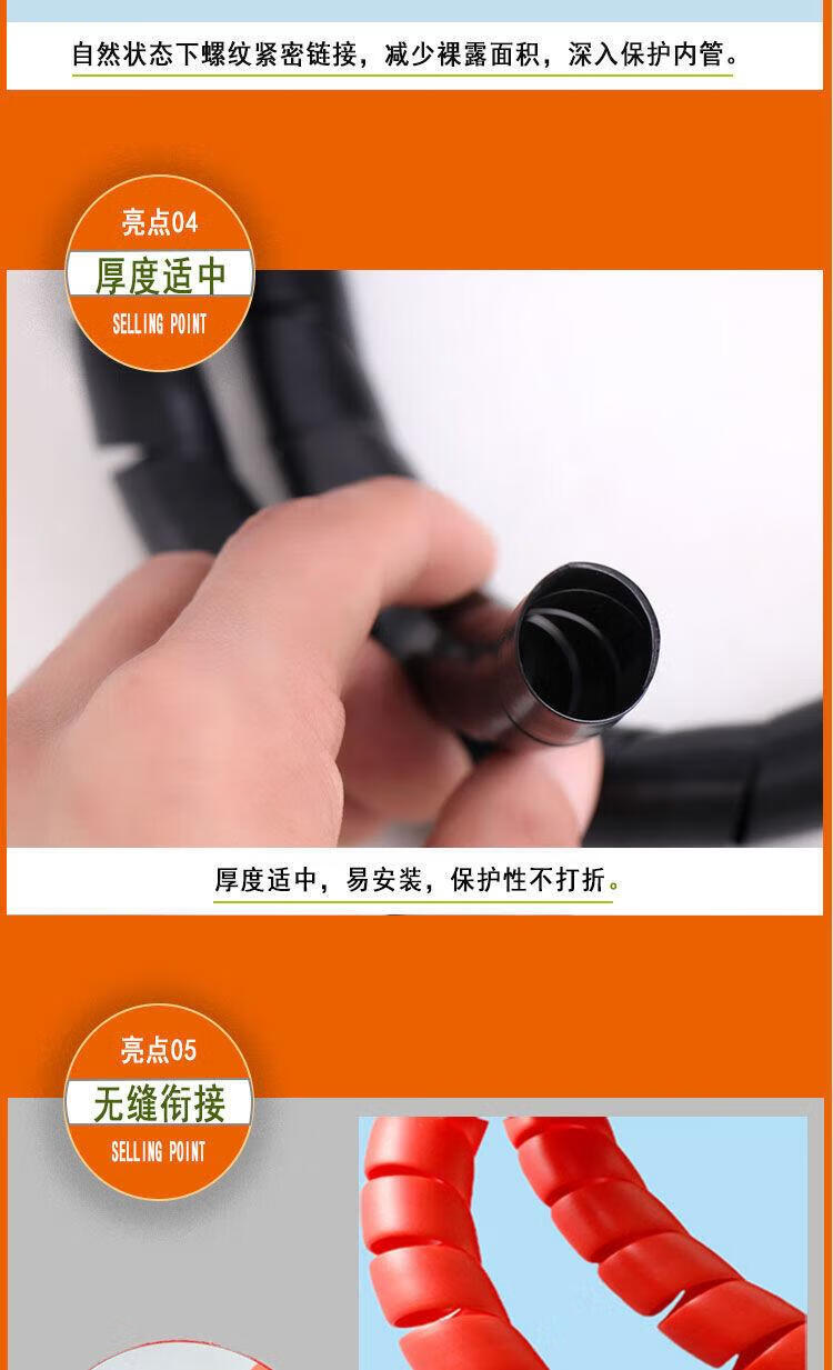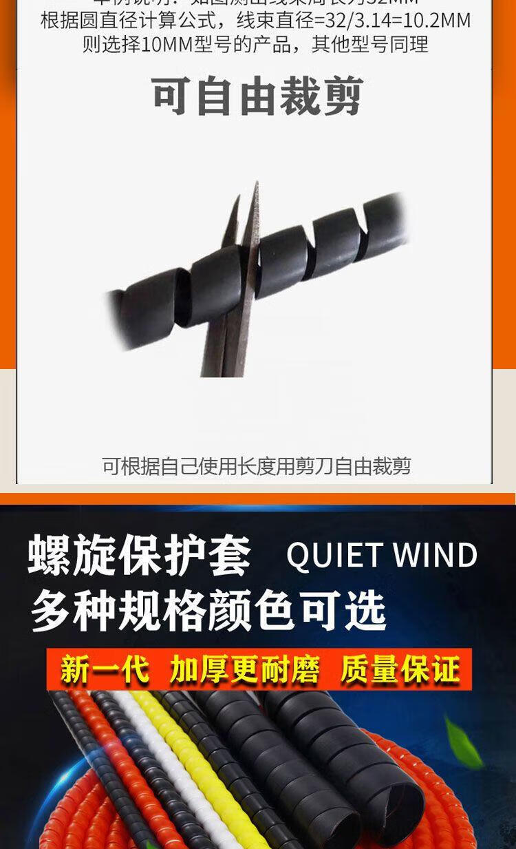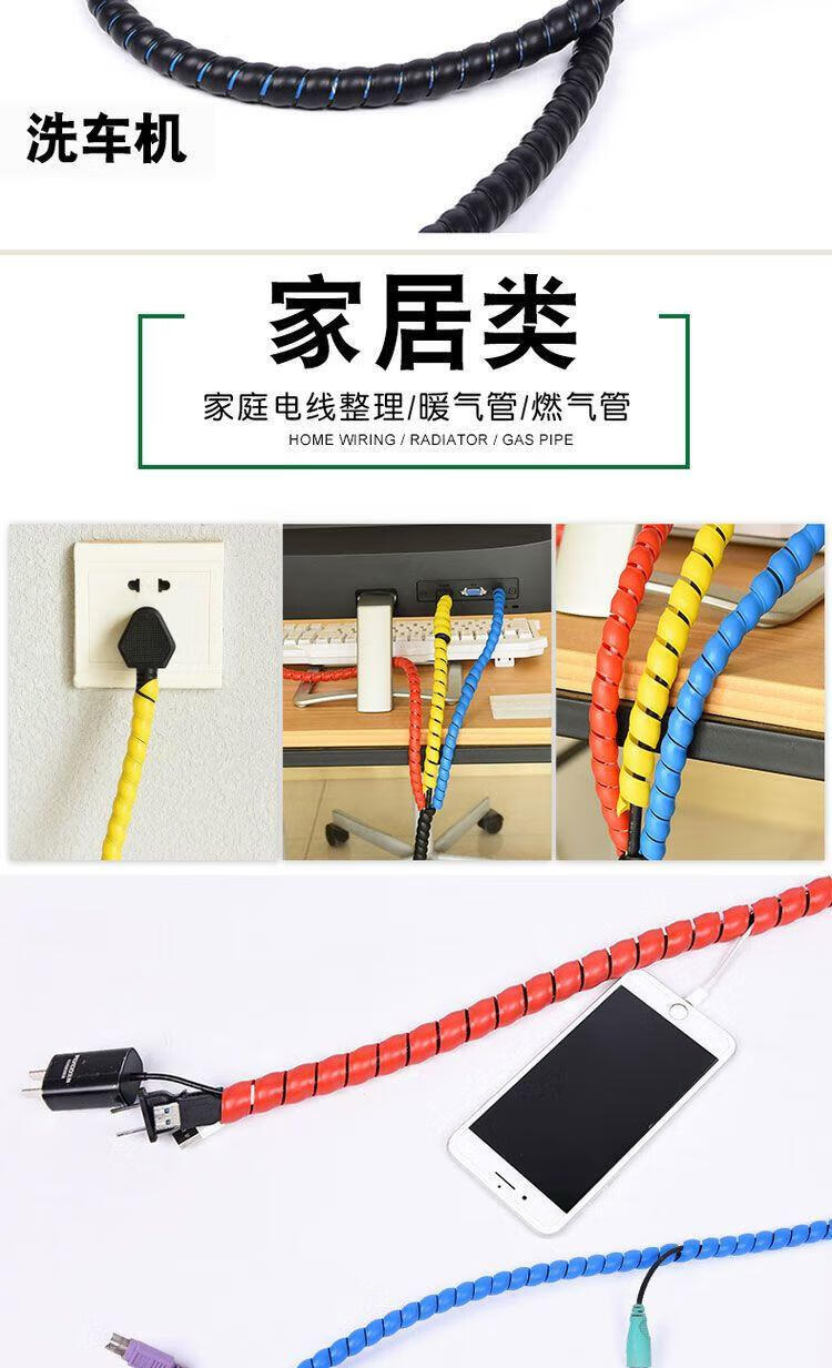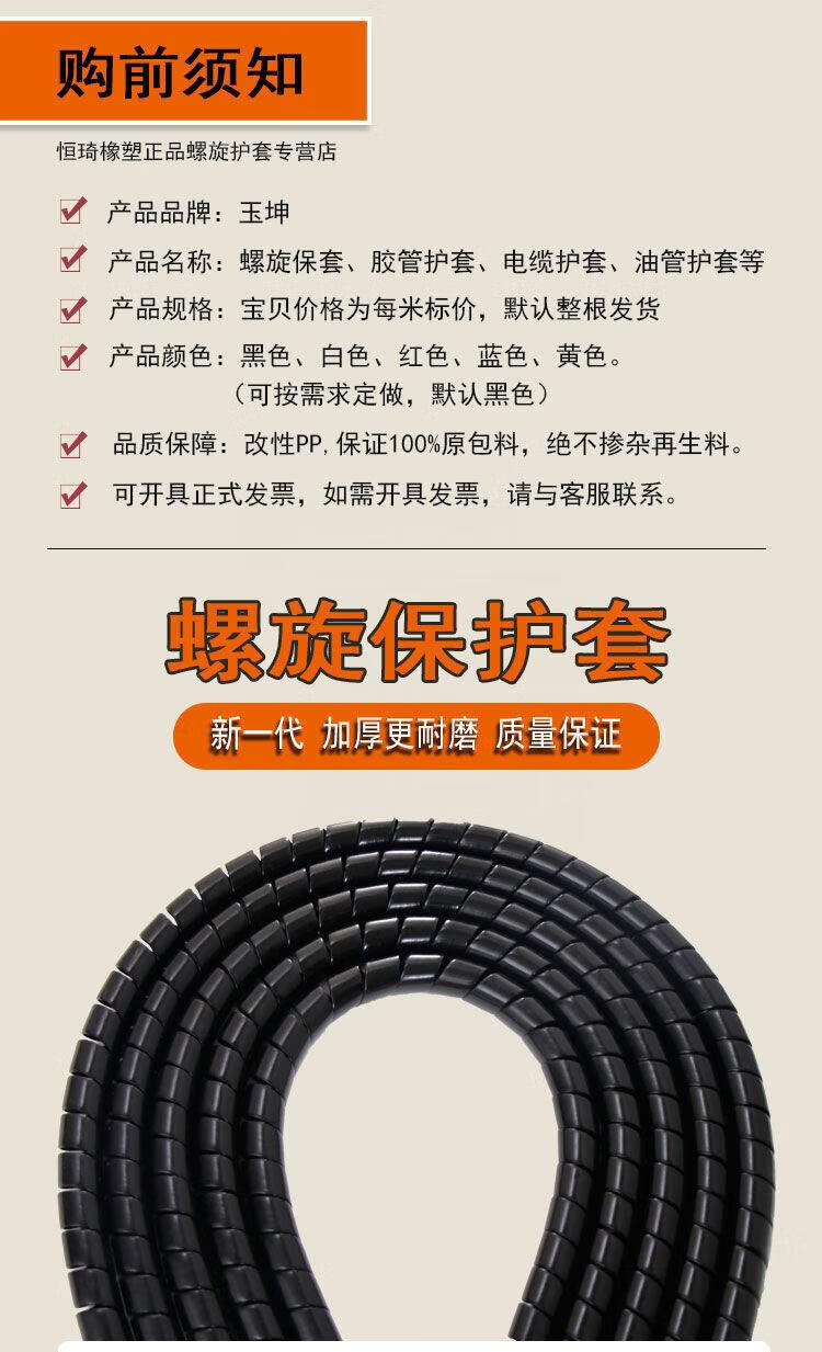 Threaded protective cover for wire and cable computer cable storage and cable organizer spiral oil-resistant, anti-biting and high-temperature resistant 10mm, 5 meters long, black, inner diameter 14mm, black 10 meters