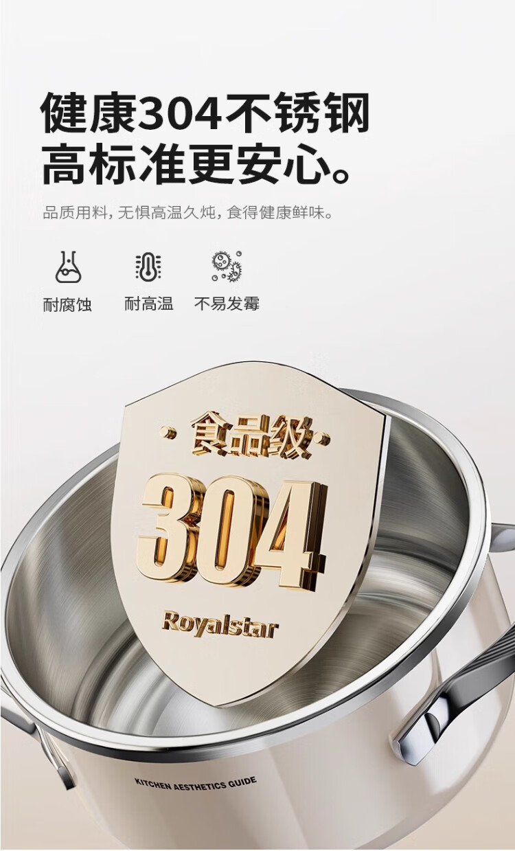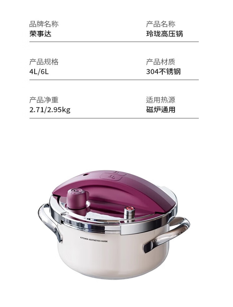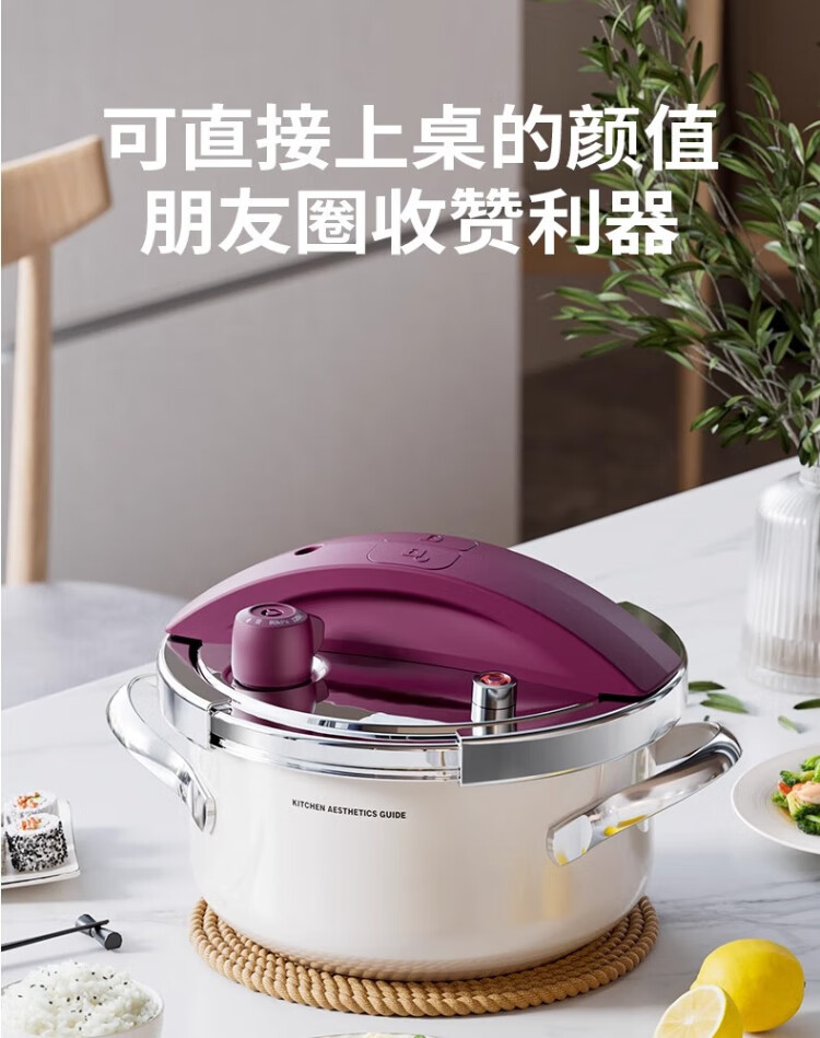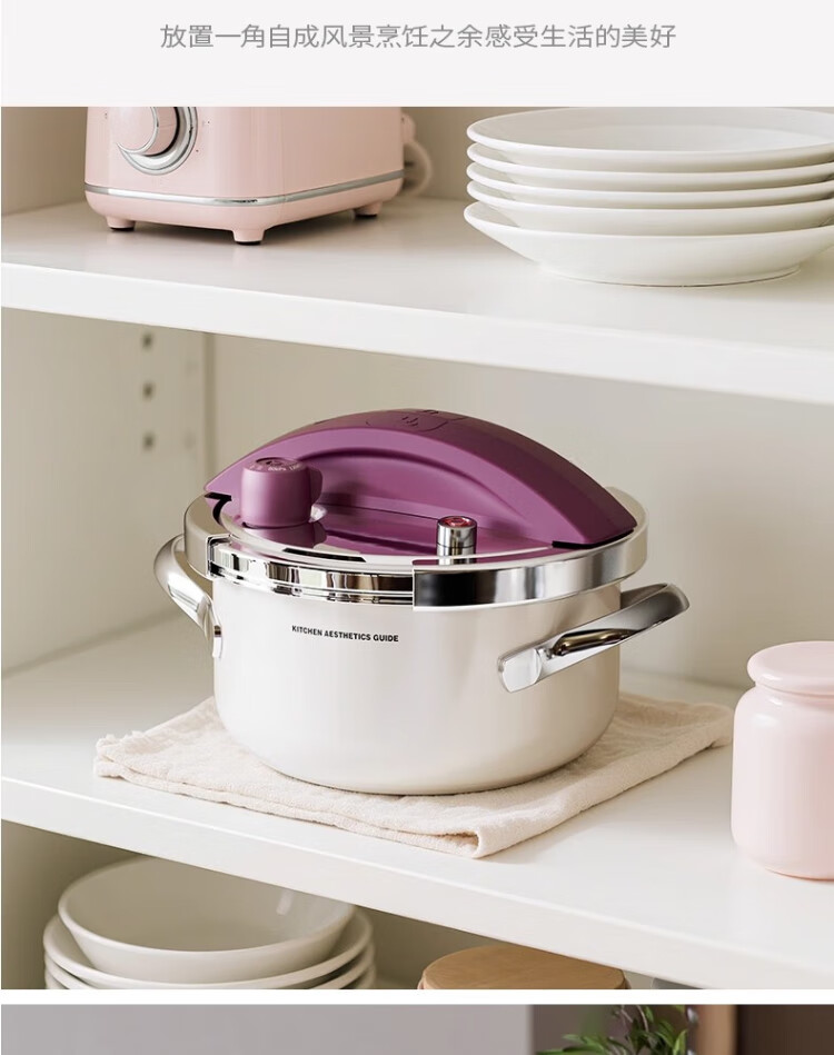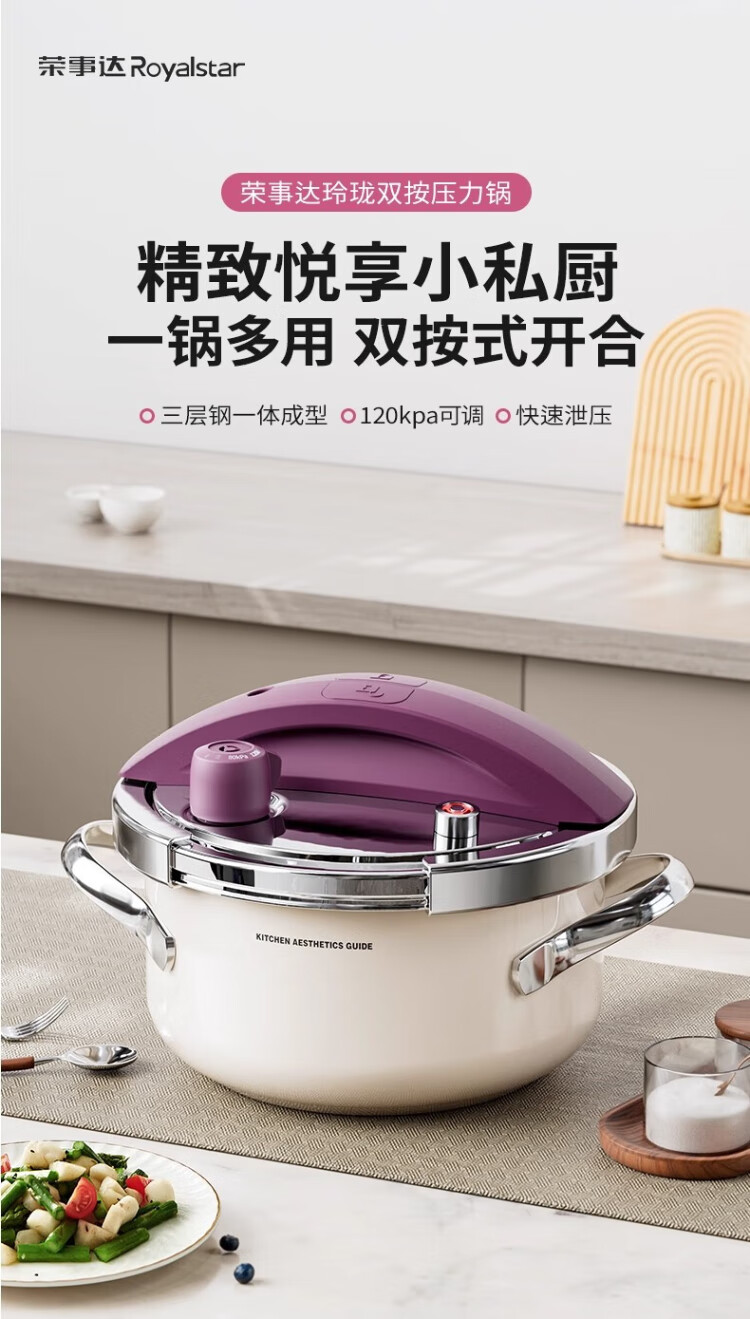 Royalstar 304 stainless steel pressure cooker small household gas induction cooker universal explosion-proof small capacity pressure cooker lotus purple enamel pressure cooker 22cm 4L