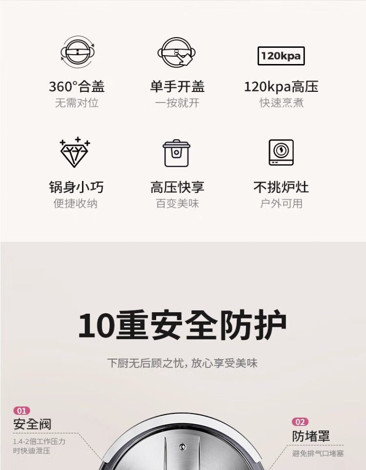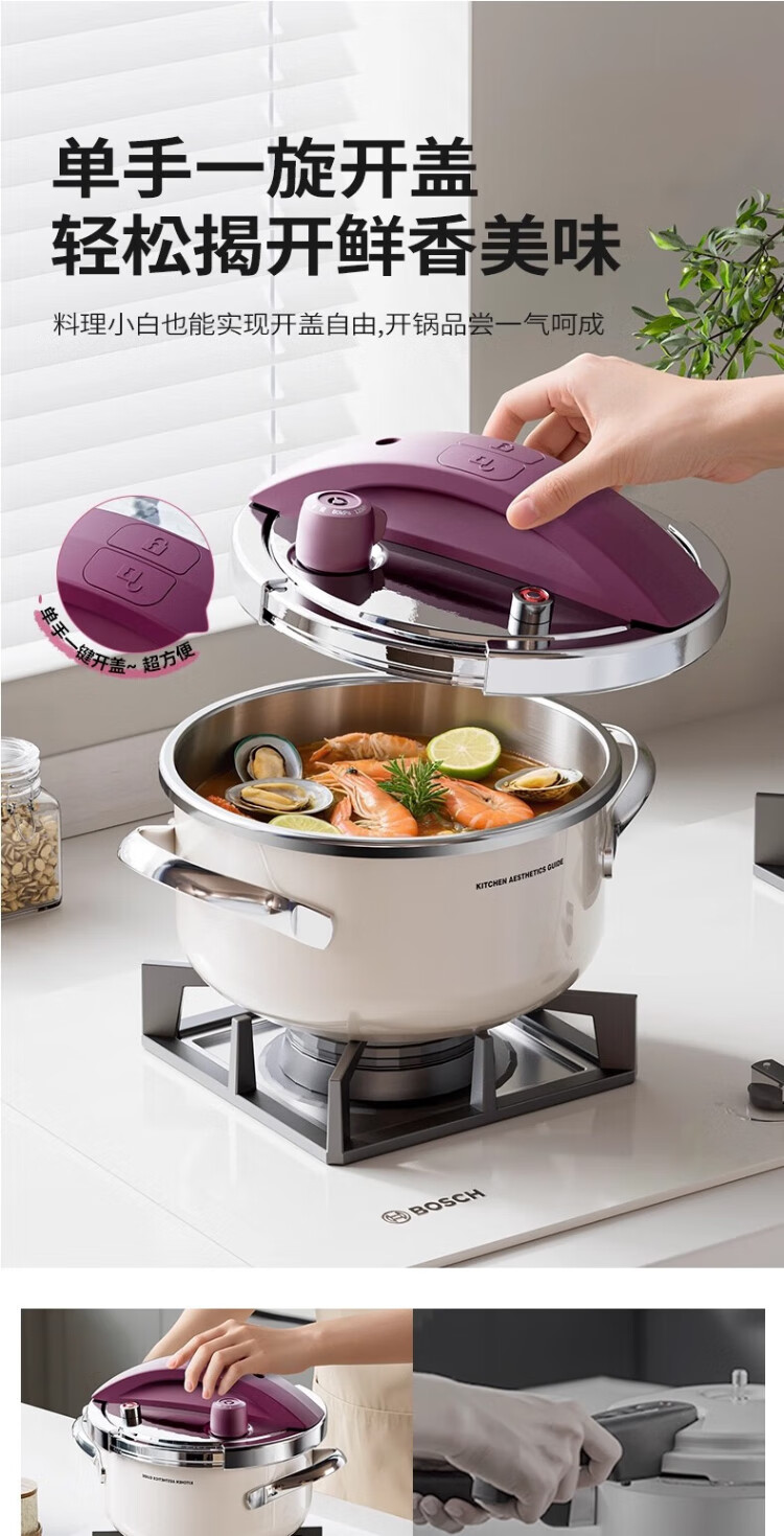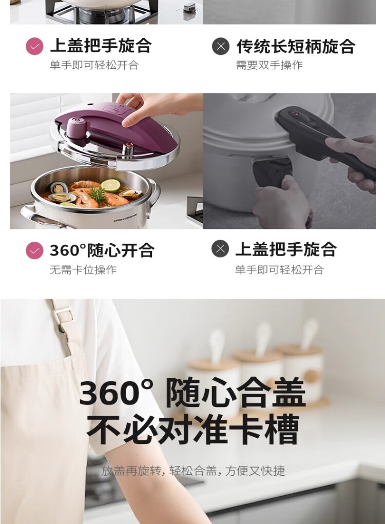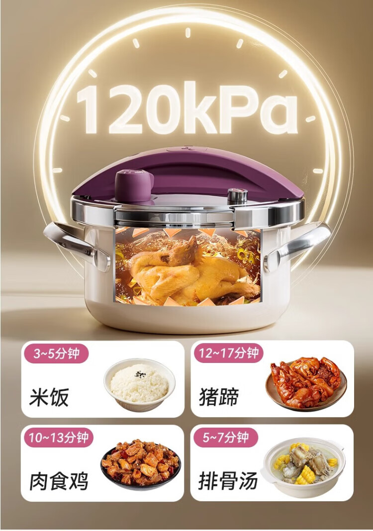 Royalstar 304 stainless steel pressure cooker small household gas induction cooker universal explosion-proof small capacity pressure cooker lotus purple enamel pressure cooker 22cm 4L