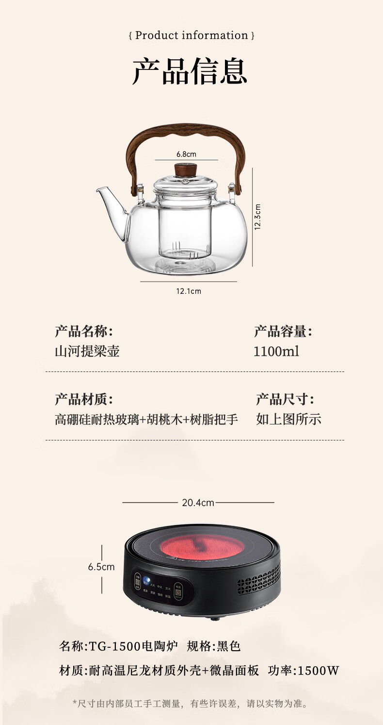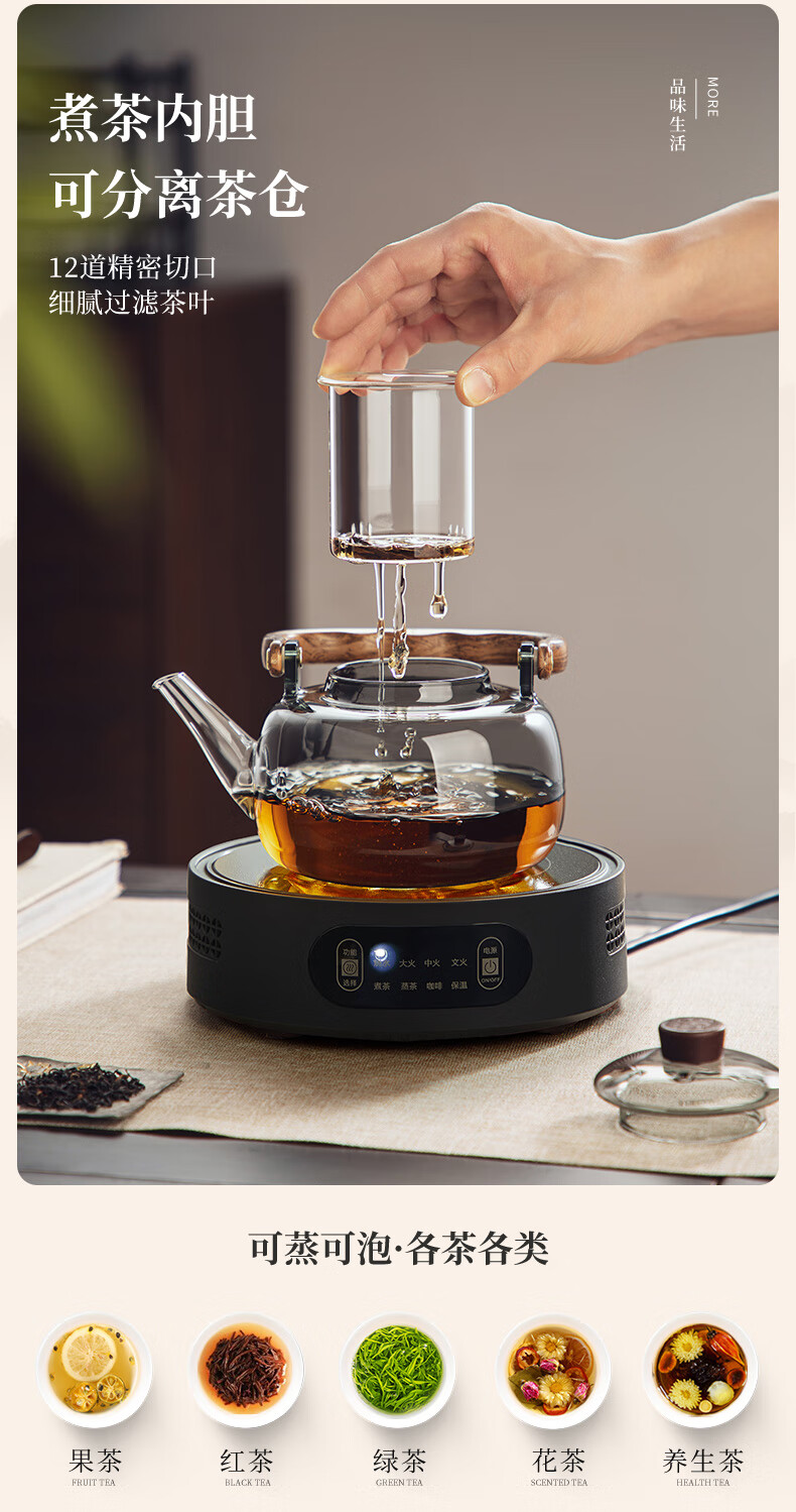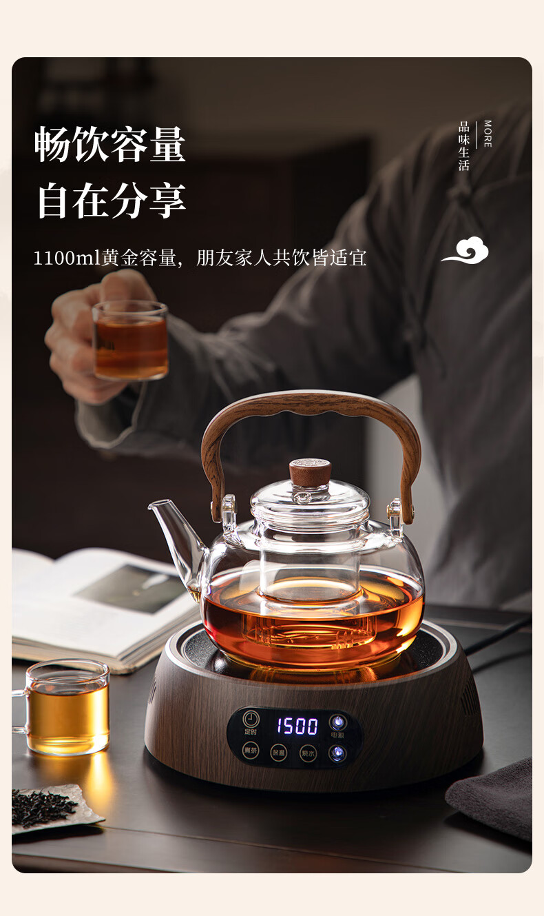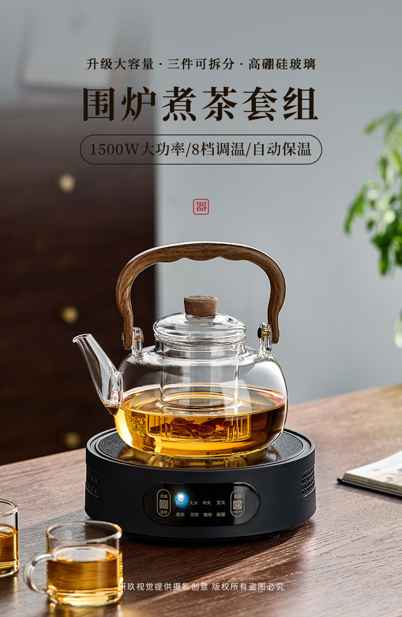 Yipot Tea Glass Teapot Electric Ceramic Stove Tea Maker New Health Pot Kettle Kettle Teapot Tea Set 1.1L Transparent Pot + 1500 Watt Black Stove