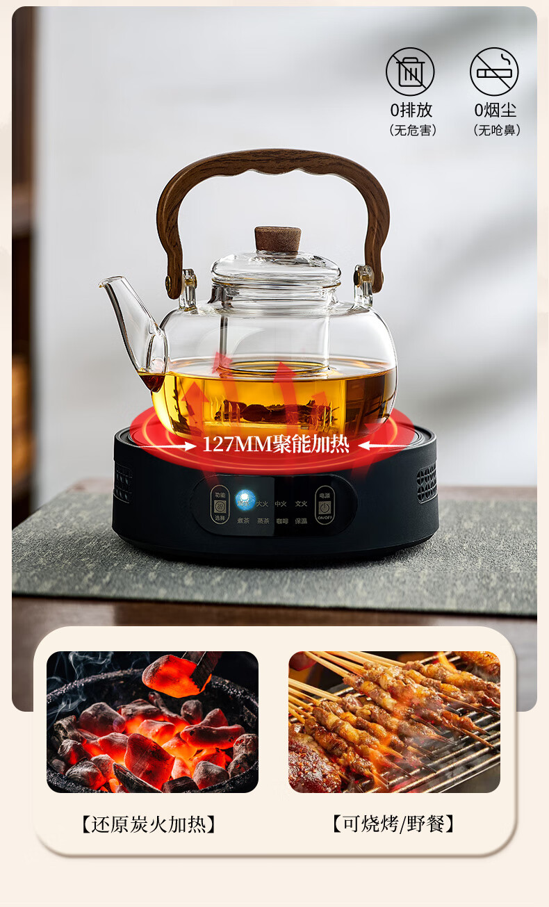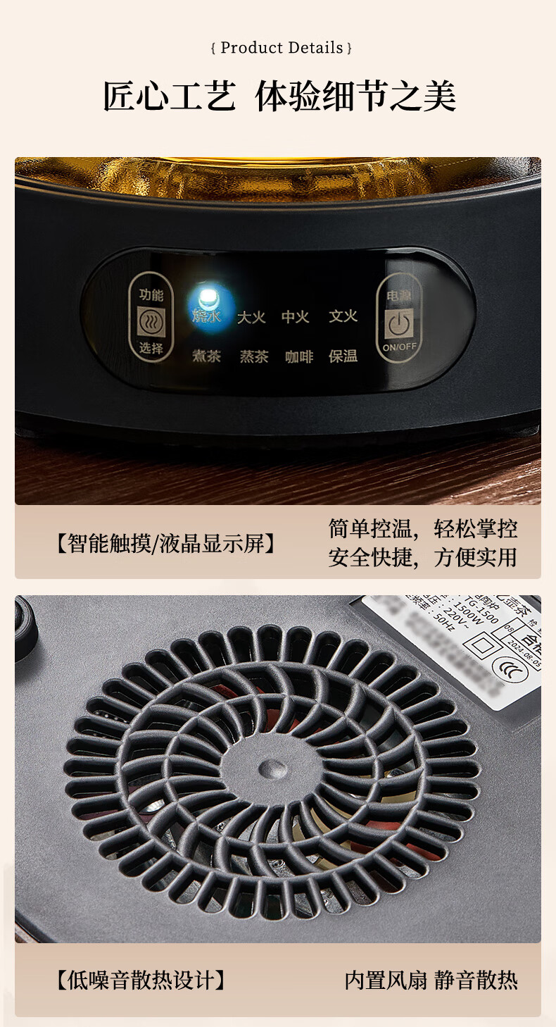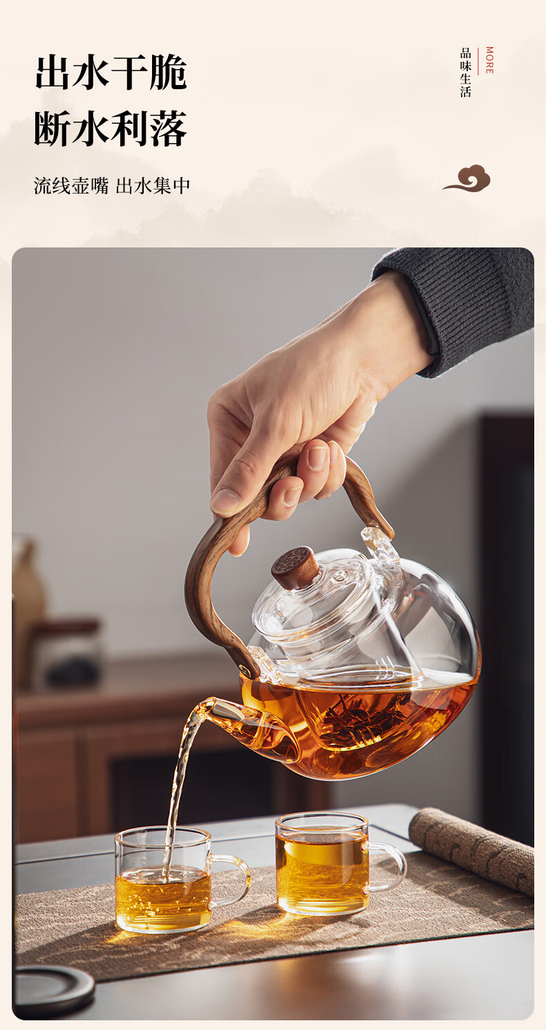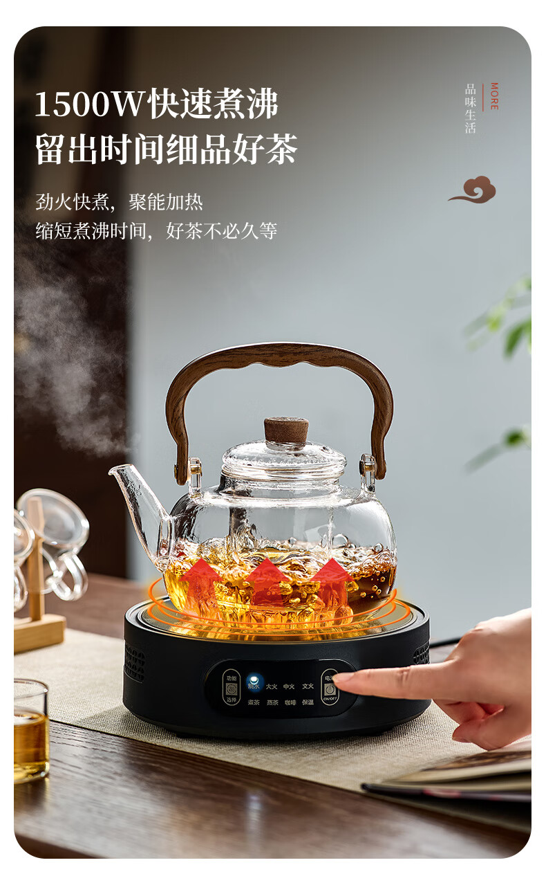 Yipot Tea Glass Teapot Electric Ceramic Stove Tea Maker New Health Pot Kettle Kettle Teapot Tea Set 1.1L Transparent Pot + 1500 Watt Black Stove