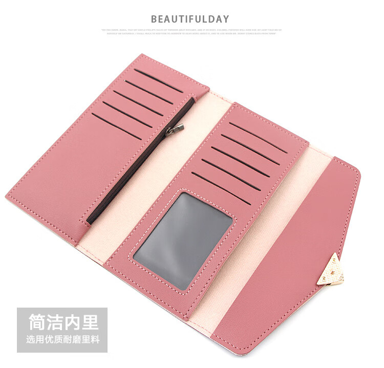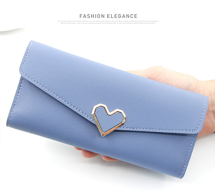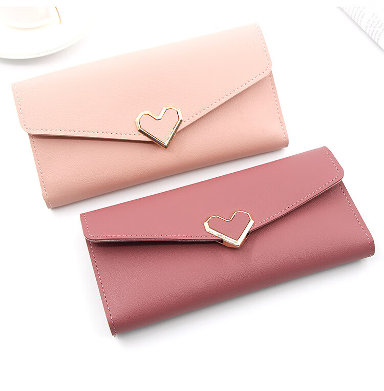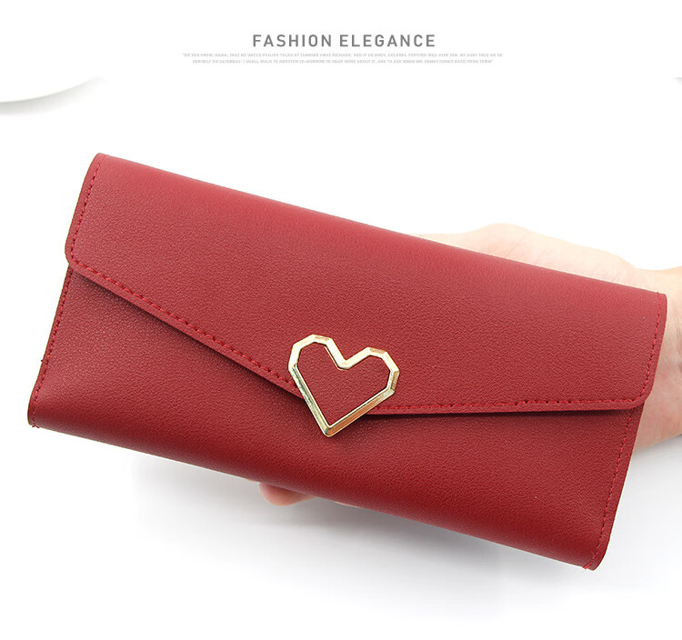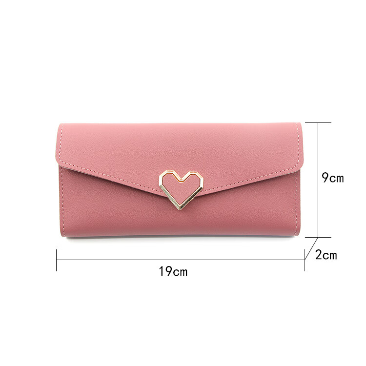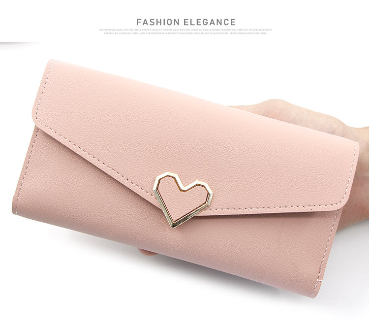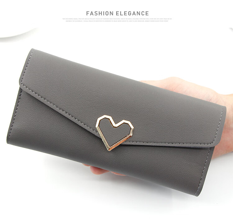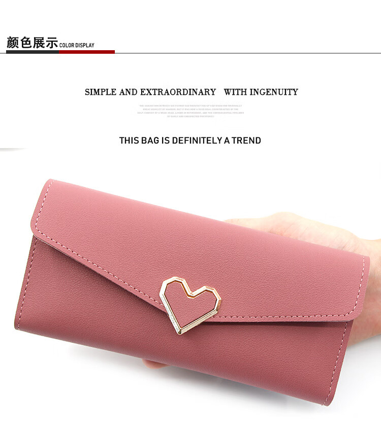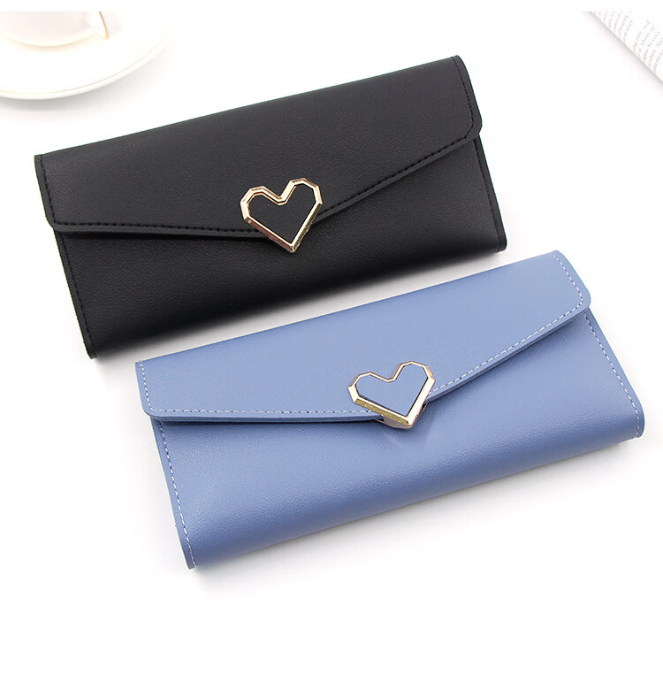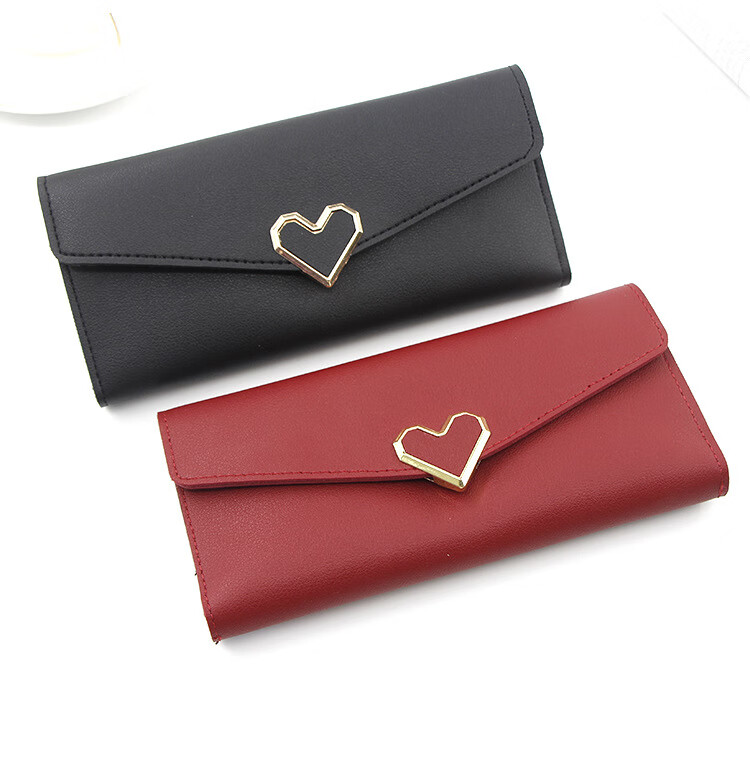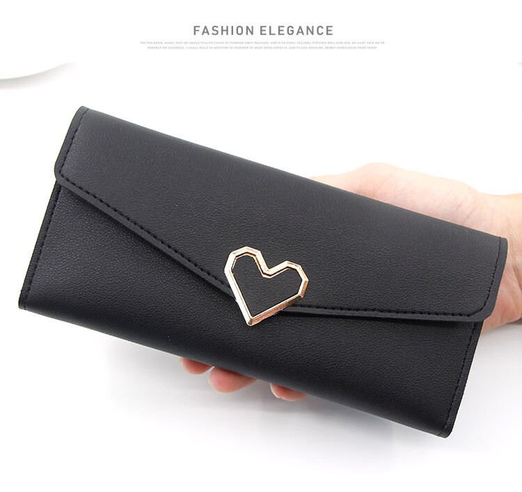 New wallet women's long heart-shaped snap clutch bag Korean style small fresh wallet multi-card slot ID bag black