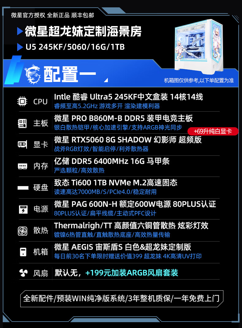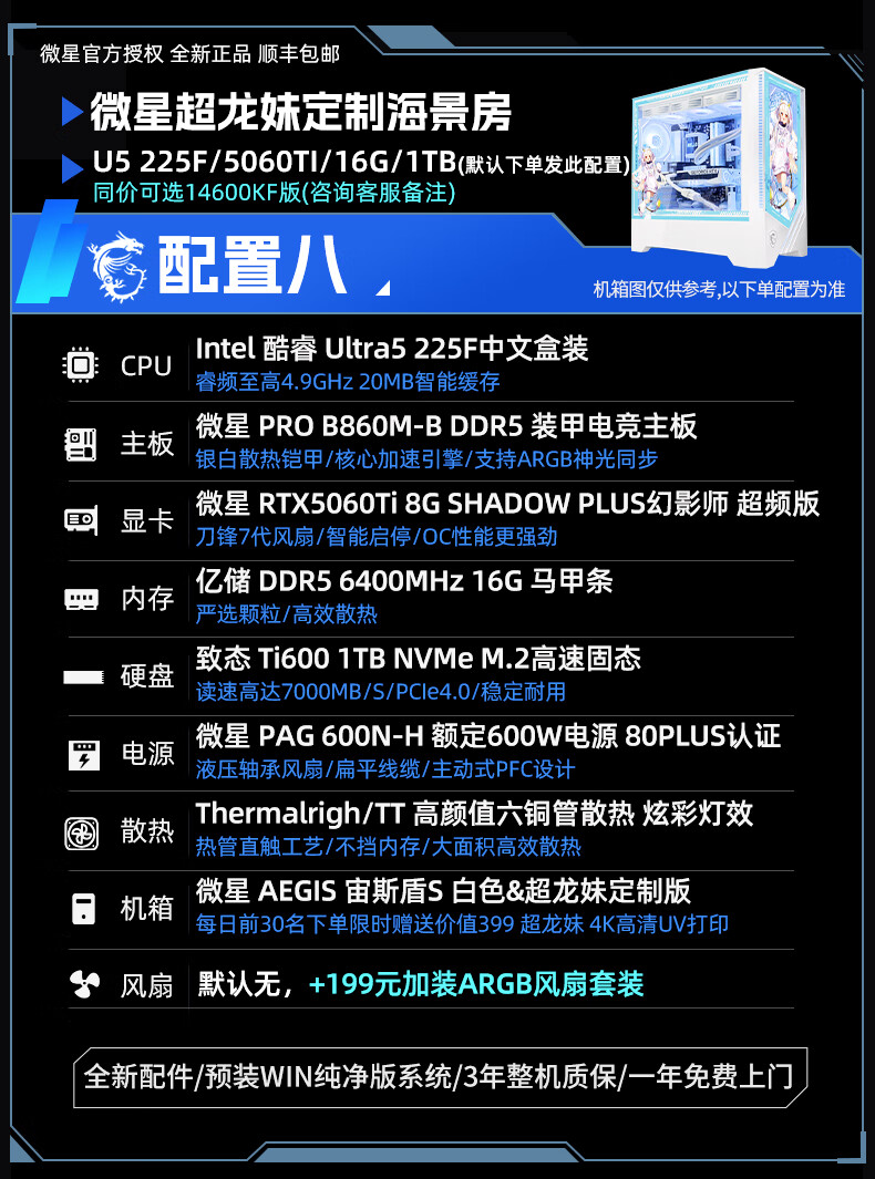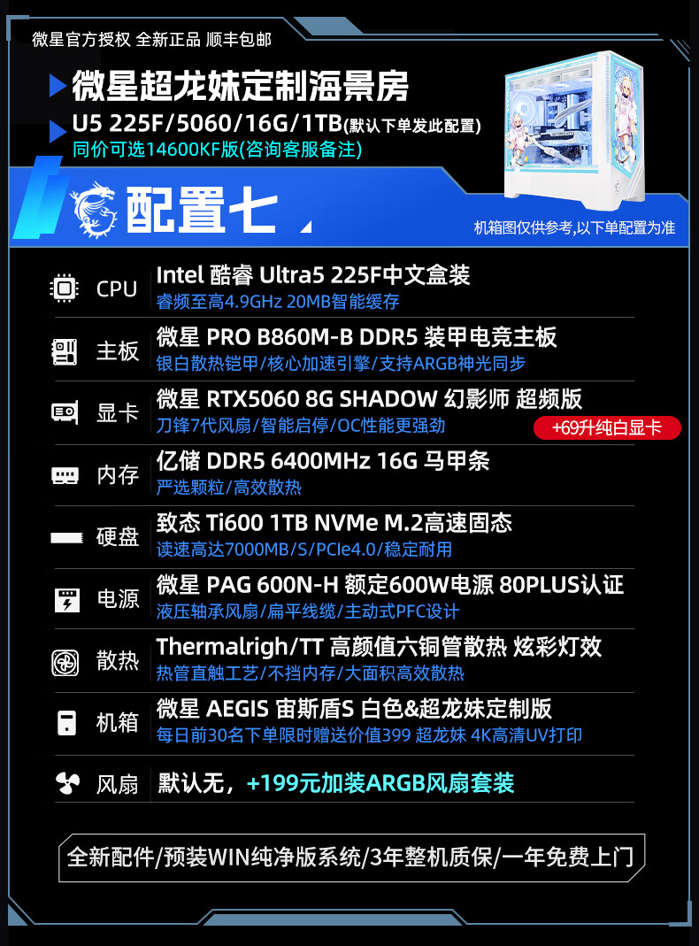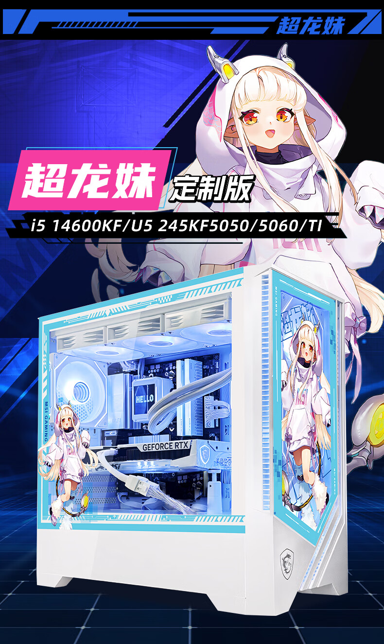 MSI Family Bucket Aegis i5 14600KF/U5 225F/RTX5060 graphics card live e-sports game desktop assembly computer host complete machine DIY assembly machine white i5 14600KF+RTX5060丨Configuration 6 MSI Family Bucket Host