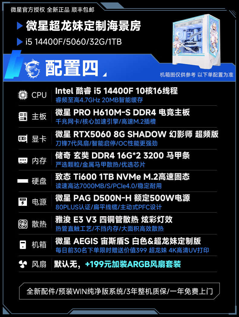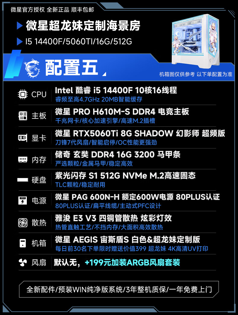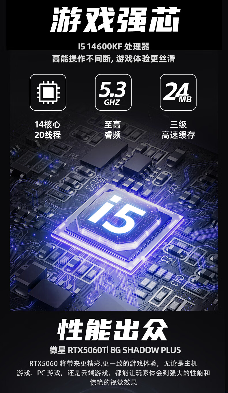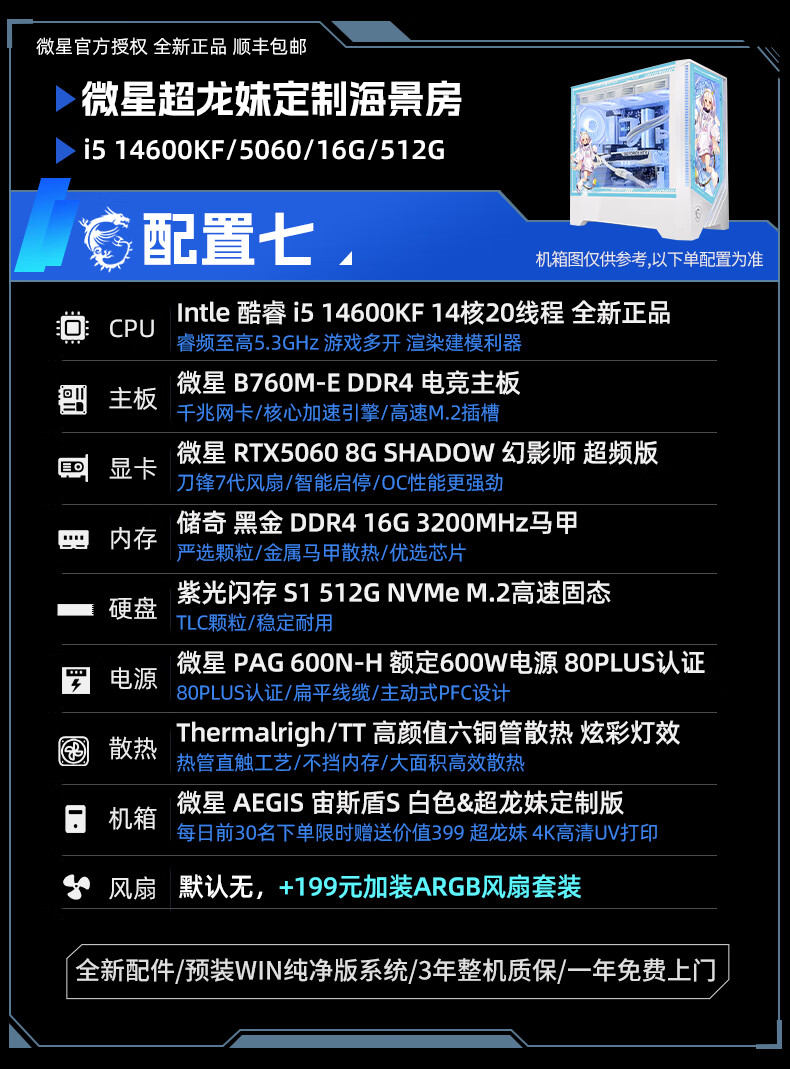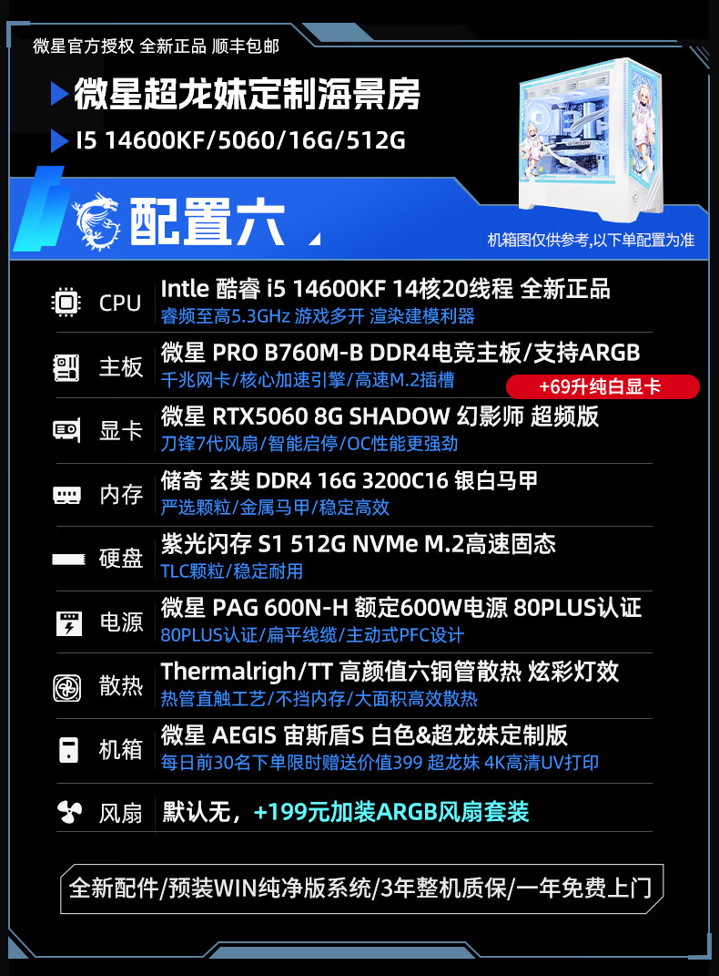 MSI Family Bucket Aegis i5 14600KF/U5 225F/RTX5060 graphics card live e-sports game desktop assembly computer host complete machine DIY assembly machine white i5 14600KF+RTX5060丨Configuration 6 MSI Family Bucket Host