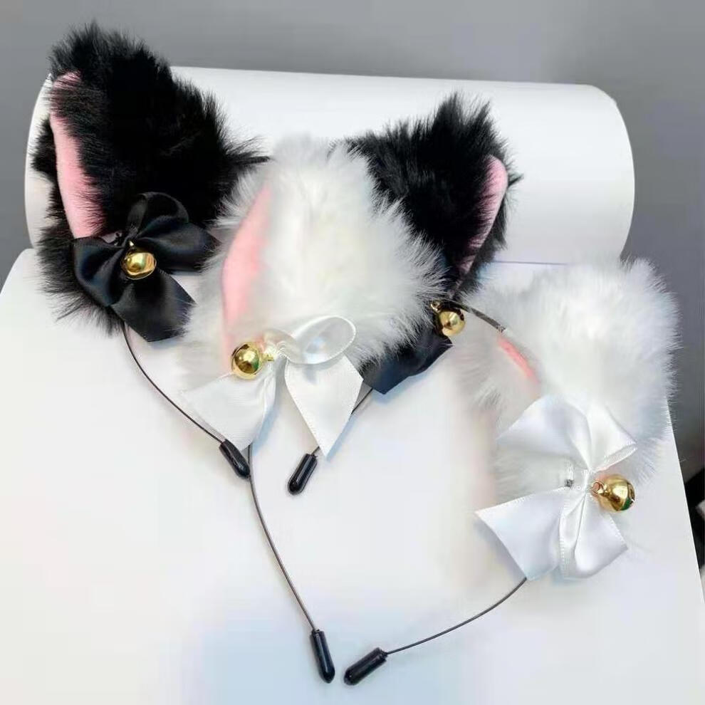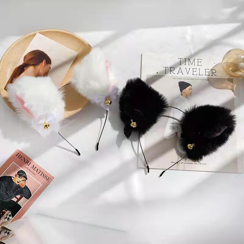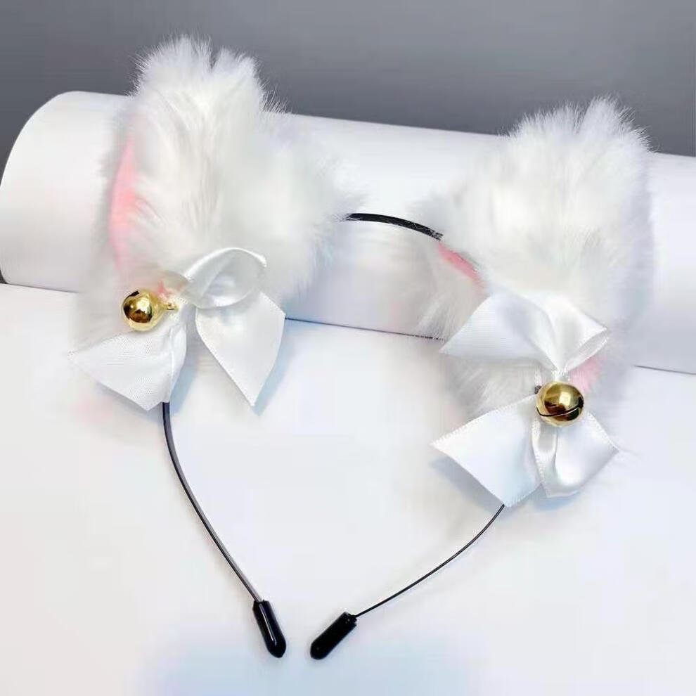 Cute plush cat ears headband cosplay anime cat girl headband fox ears bell performance headdress plush cat ears white
