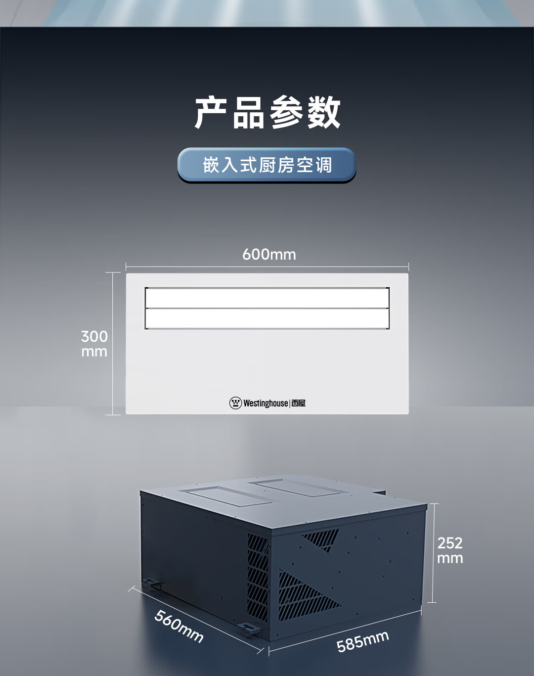 Westinghouse kitchen air conditioner ceiling-mounted embedded 1.5 HP home kitchen dedicated air conditioner water cooling technology without external unit 1.5 HP color screen wall control