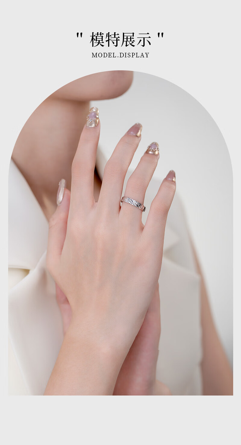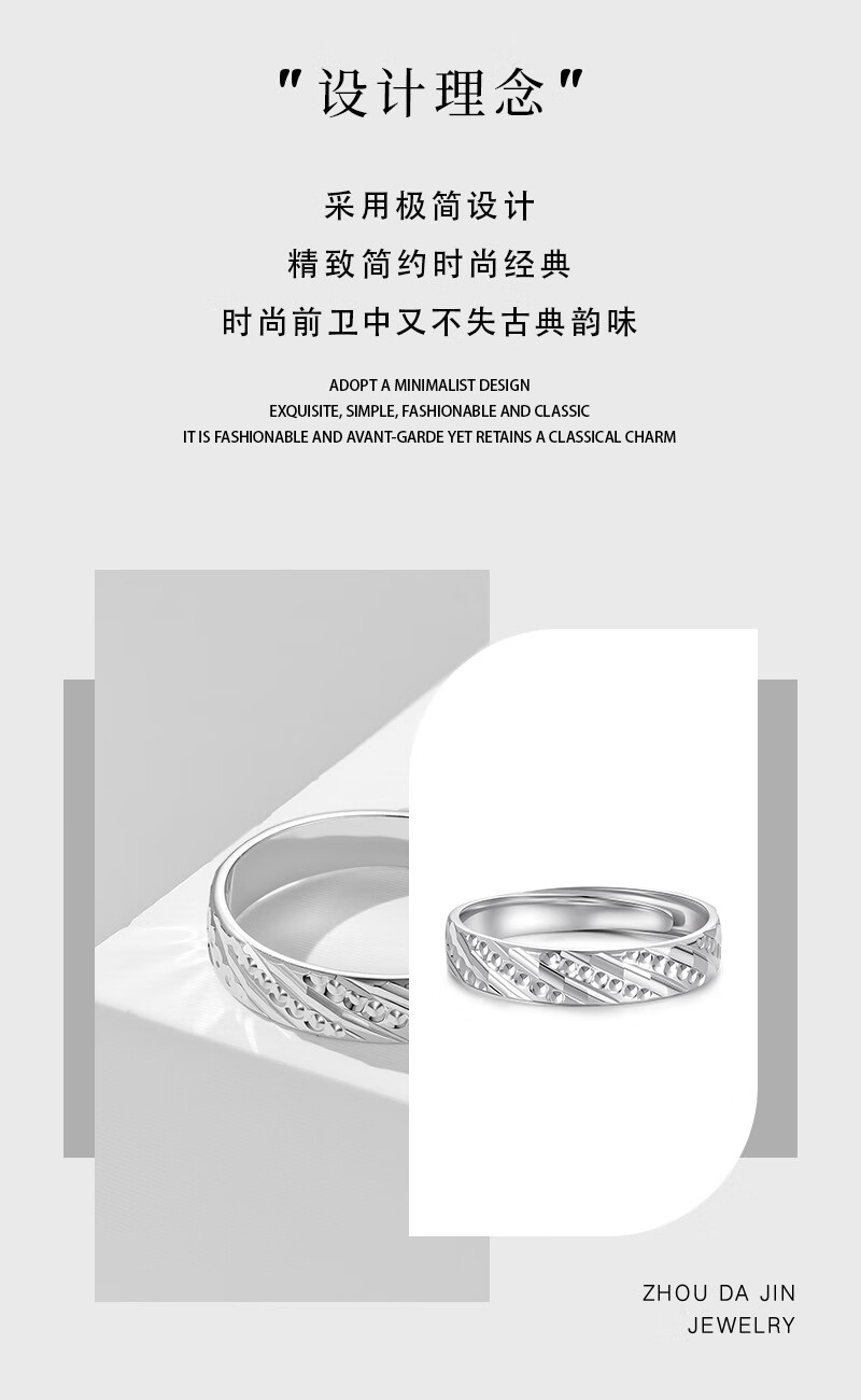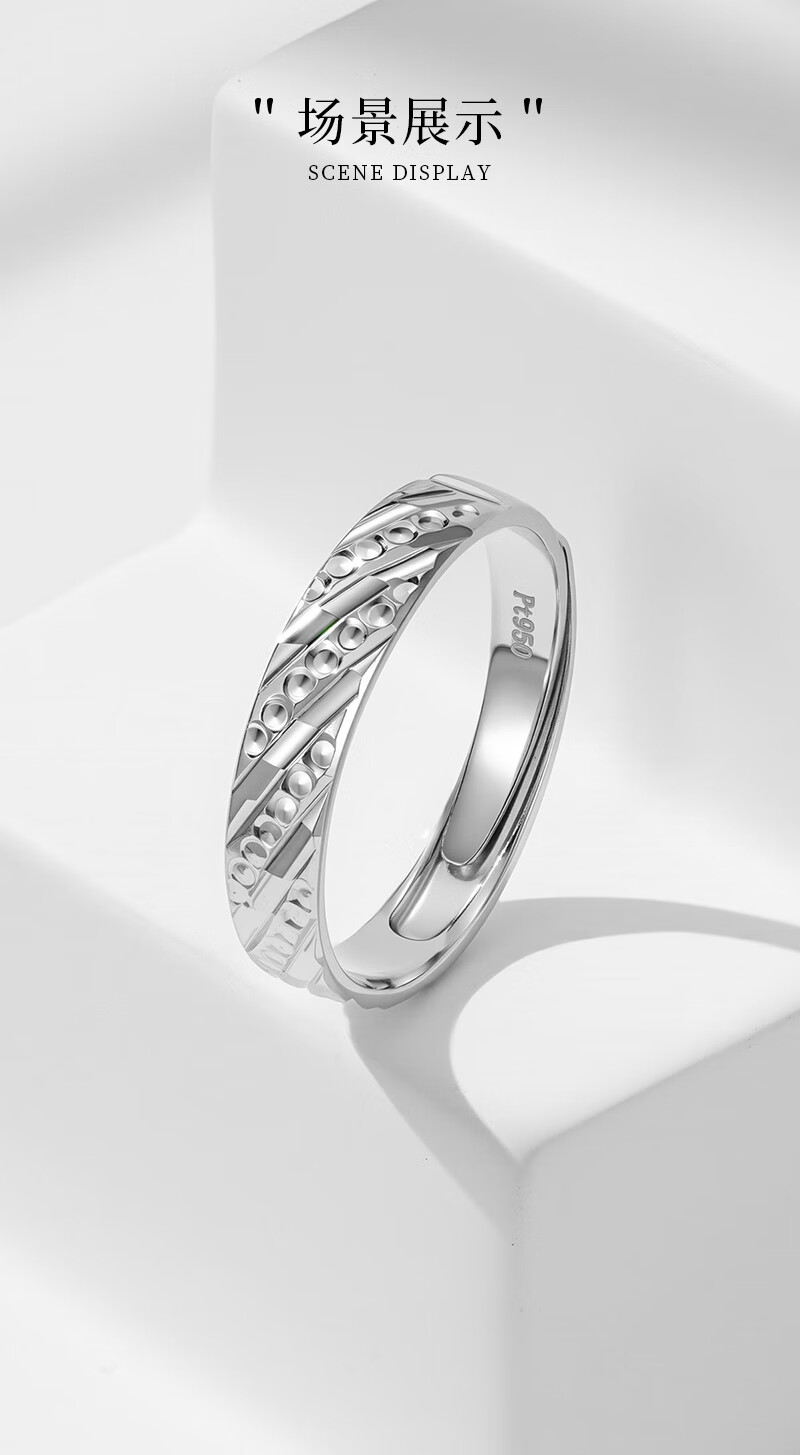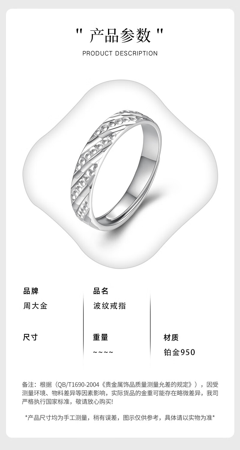Zhou Dajin CHOW TAI KING platinum corrugated ring simple adjustable couple ring diamond ring wedding gift high-end Chinese Valentine's Day gift to girlfriend platinum ring 5.54g