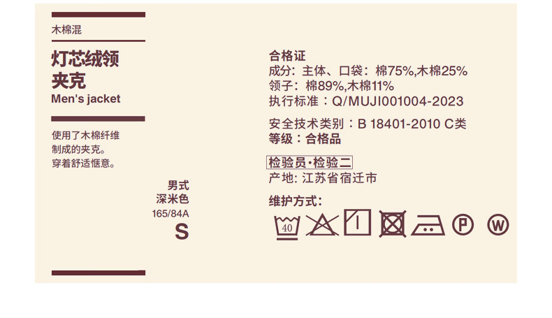 MUJI Men's Kapok Blend Corduroy Collar Jacket Men's Jacket Fall 25 Outerwear Men's Men's Dark Gray M (170/92A)