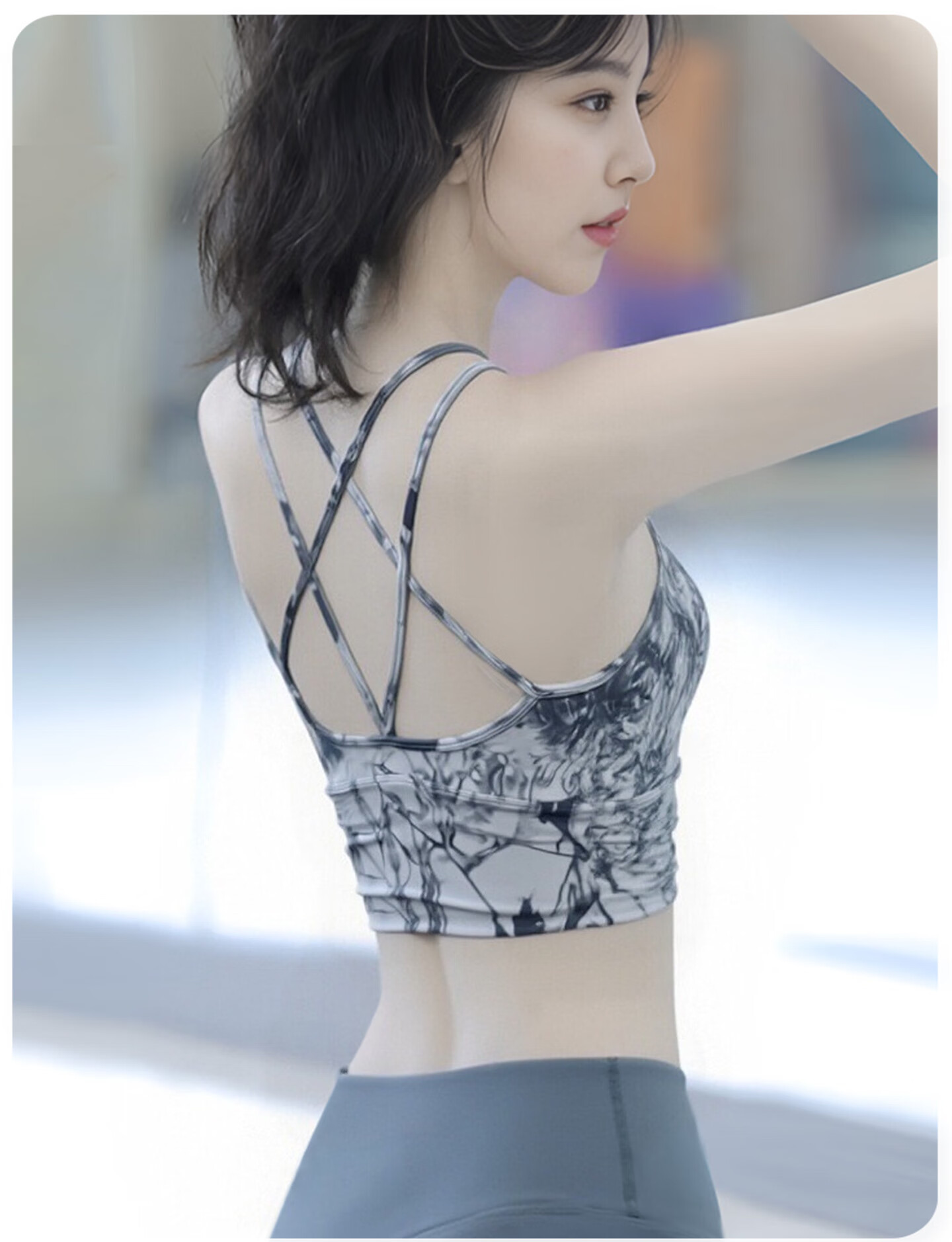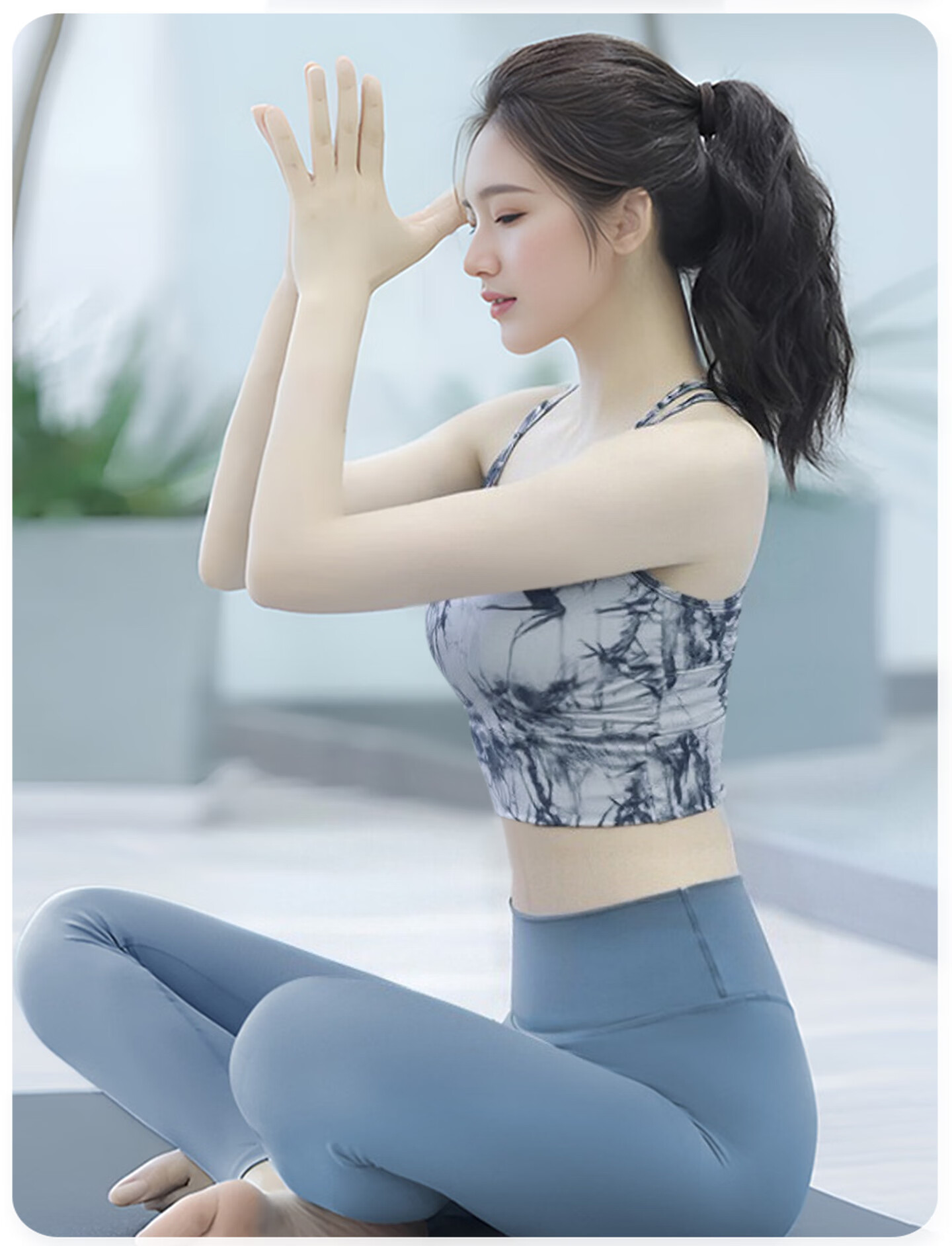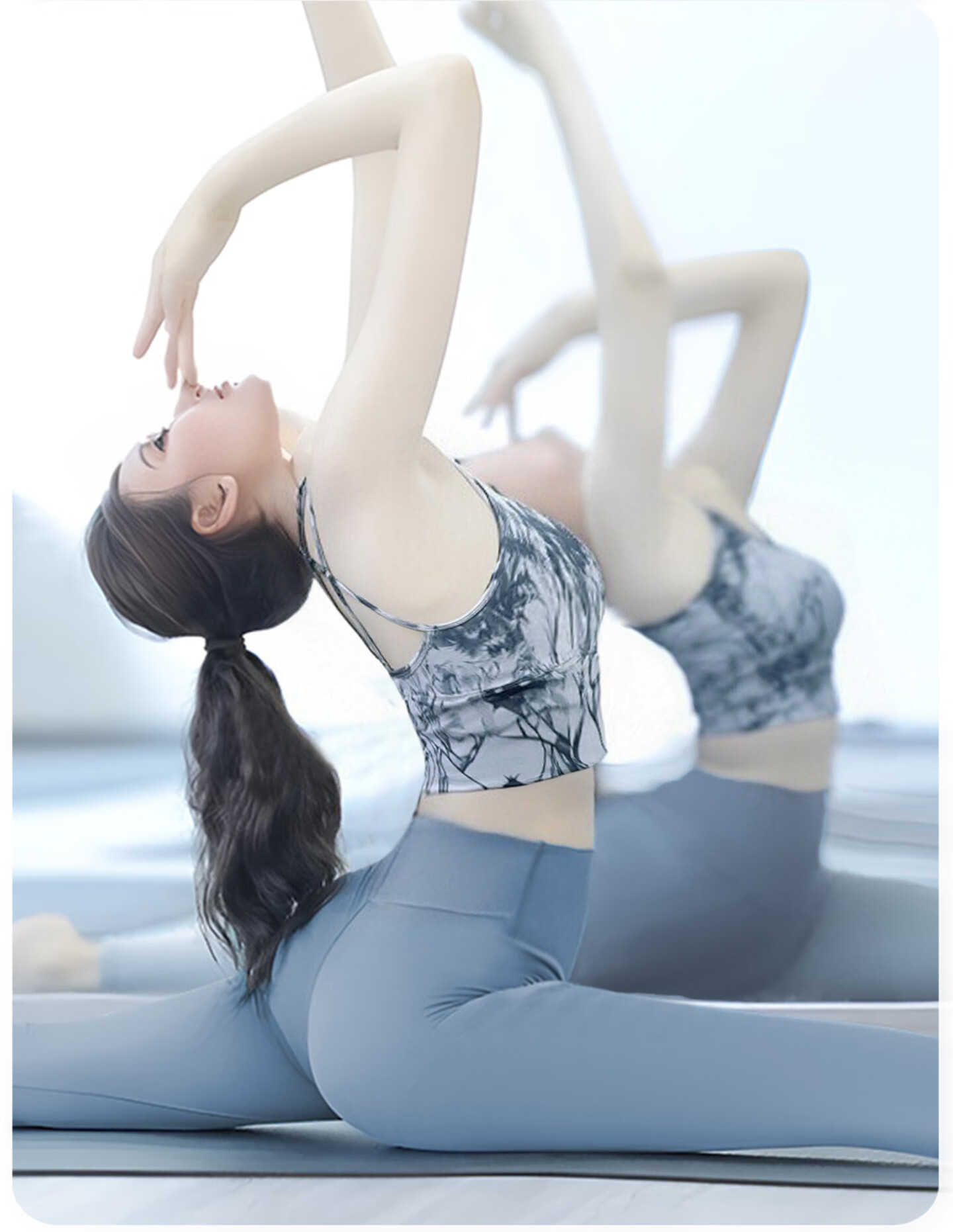 Shuangxiu Chinese style yoga clothes for women 2025 new ink with chest pads, beautiful back, beautiful Pilates training sports fitness suit, light mountain color top L 110-120