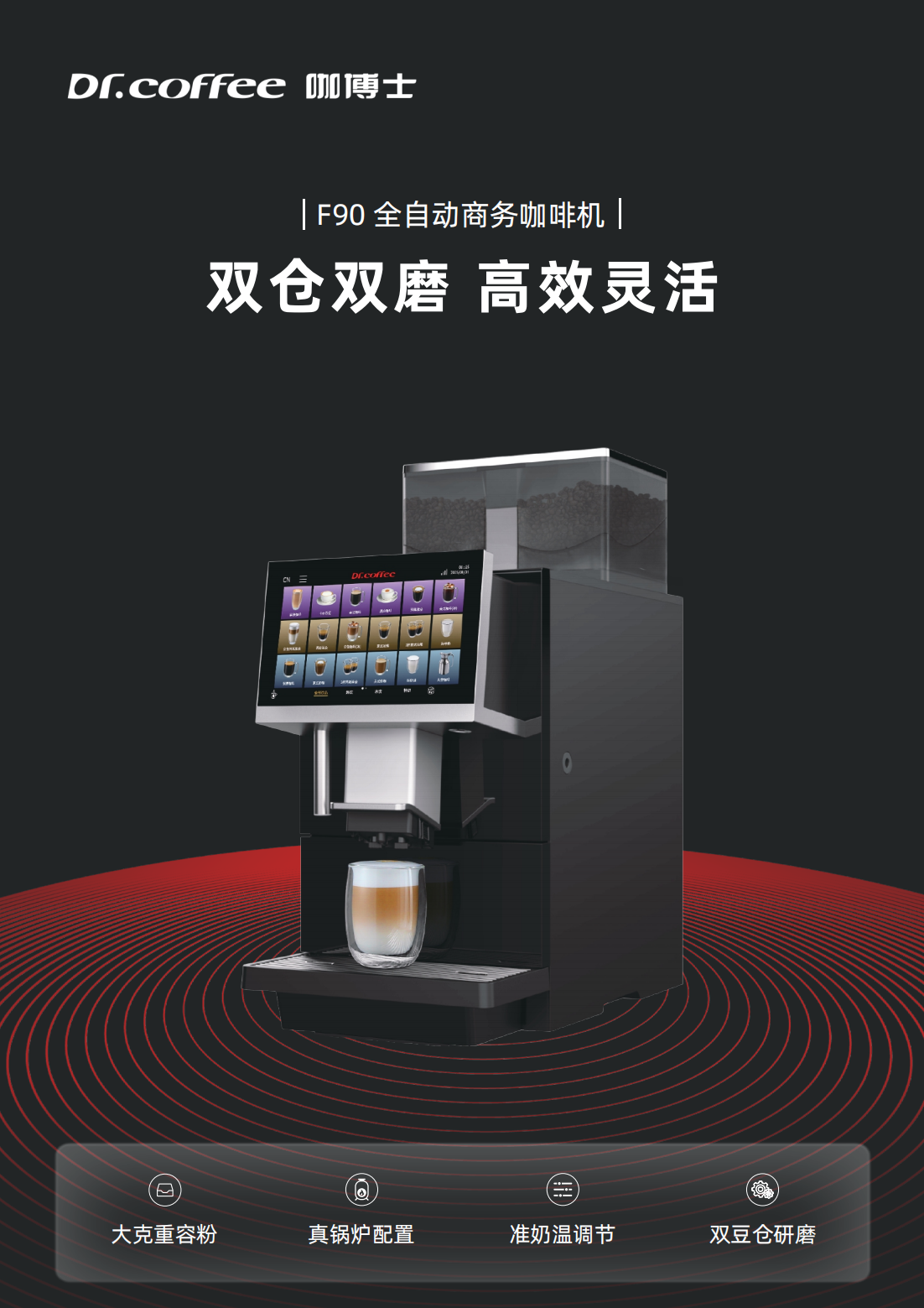 Dr.coffee F90 fully automatic coffee machine, double heating, 21g brewer, double bean bin, double grinding, large commercial coffee machine F90 coffee machine + refrigerator + ice maker + gifts