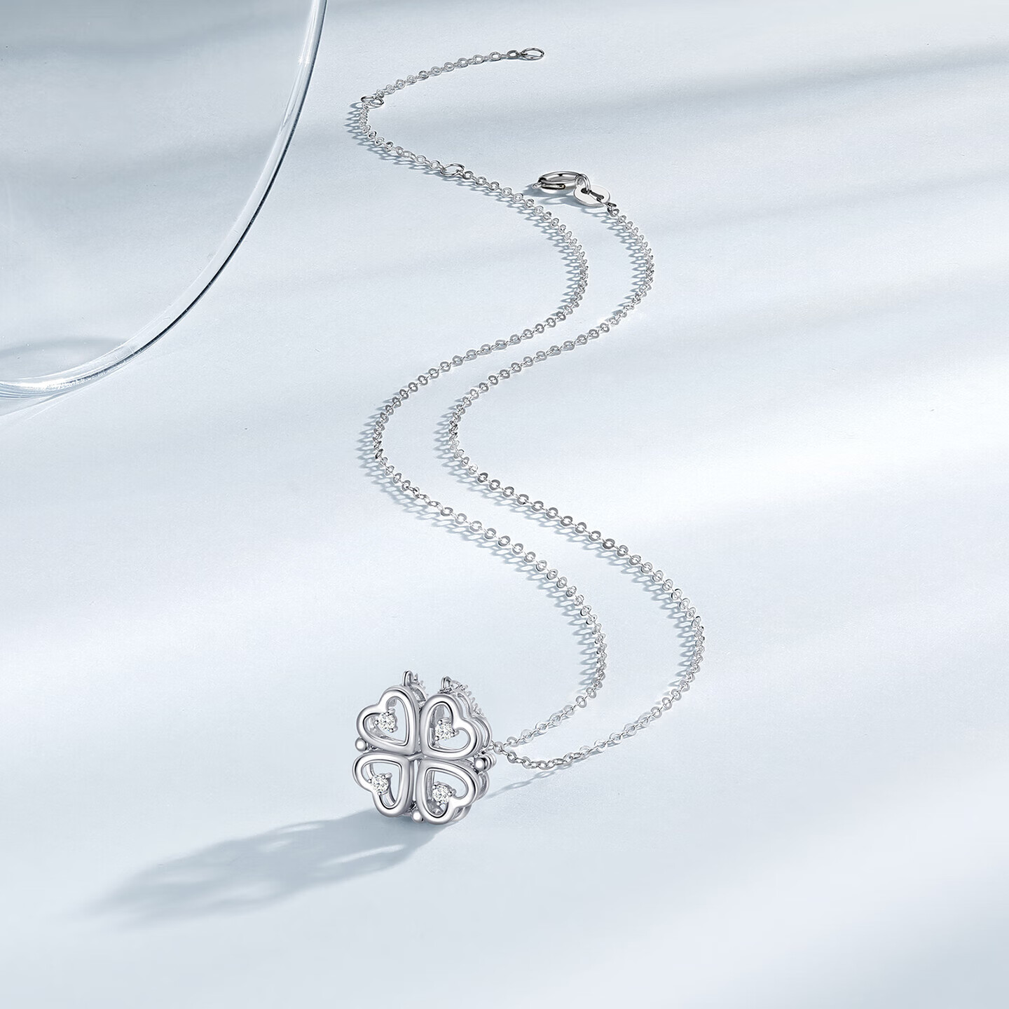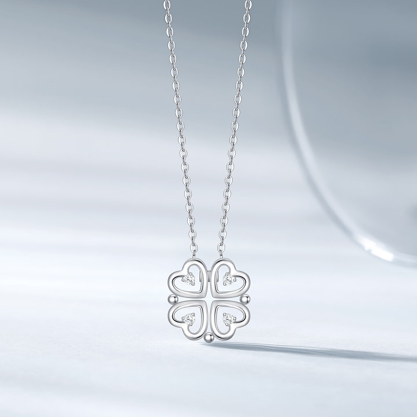Chao Acer Love Four-leaf Clover Platinum Diamond Necklace for Women PT950 A Two-Wear Chain Neck Jewelry Gift for Women, Chain Length Approximately 45cm
