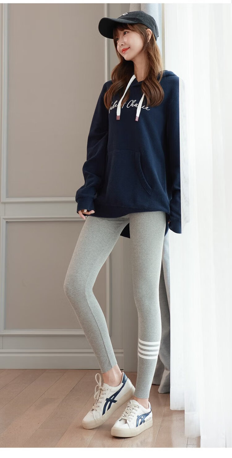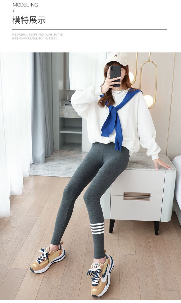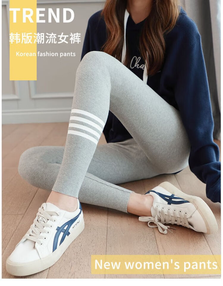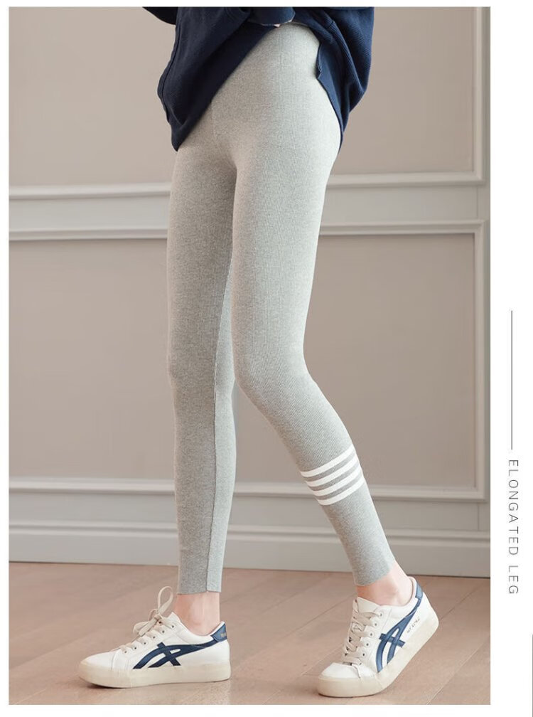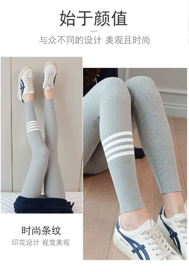 Threaded gray leggings for women 2025 new outer wear spring and autumn trousers high-waisted autumn trousers hip-lifting slimming small-legged trousers light gray brushed style L recommendation 80-125Jin Jin equals 0.5 kg