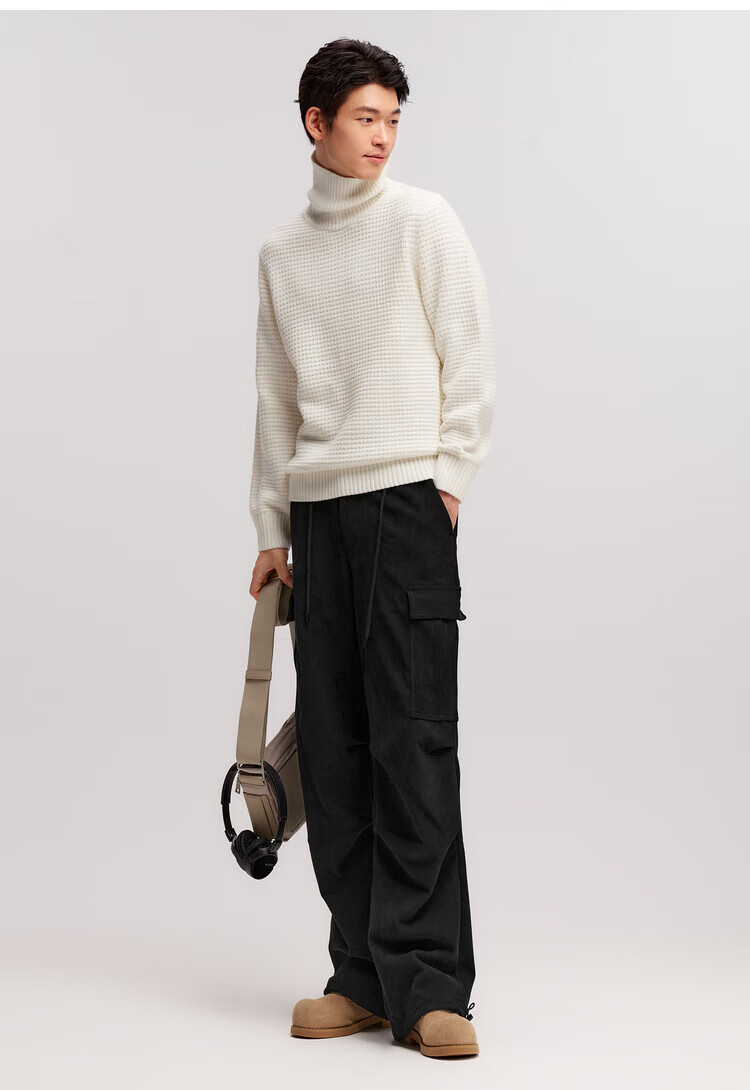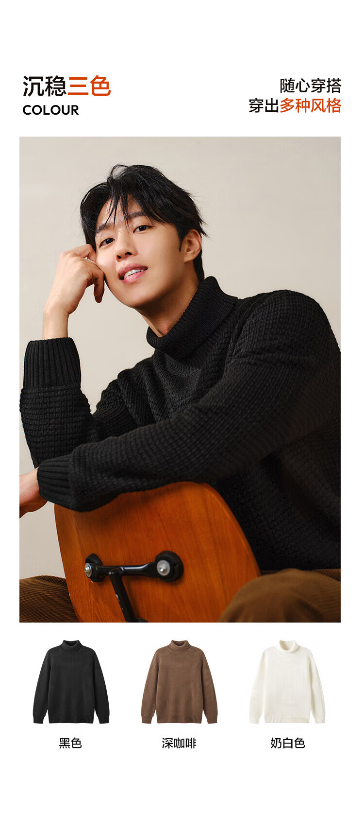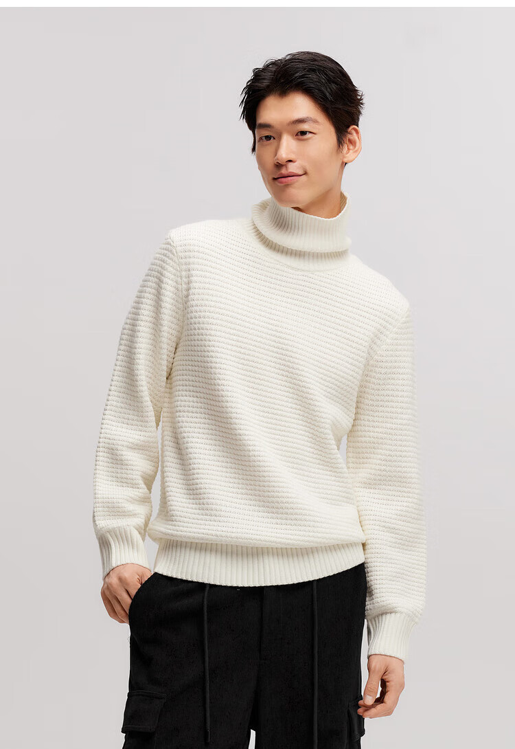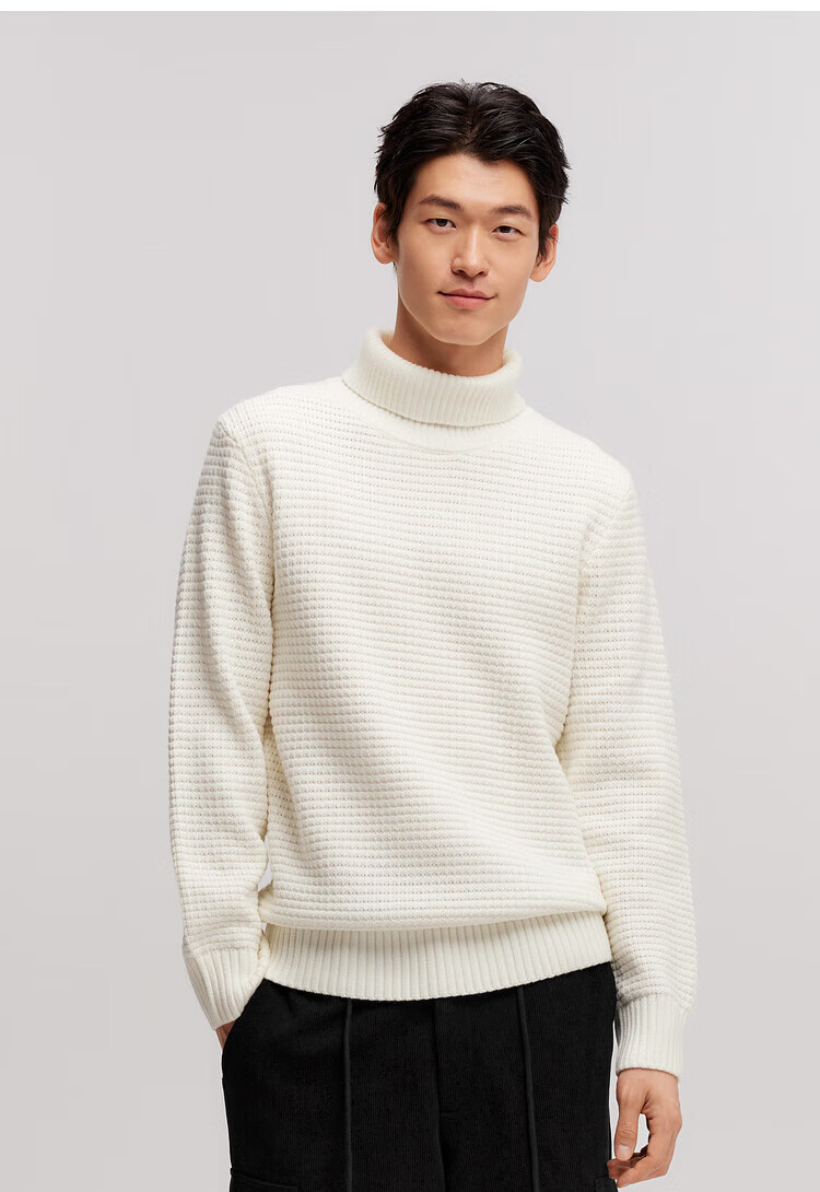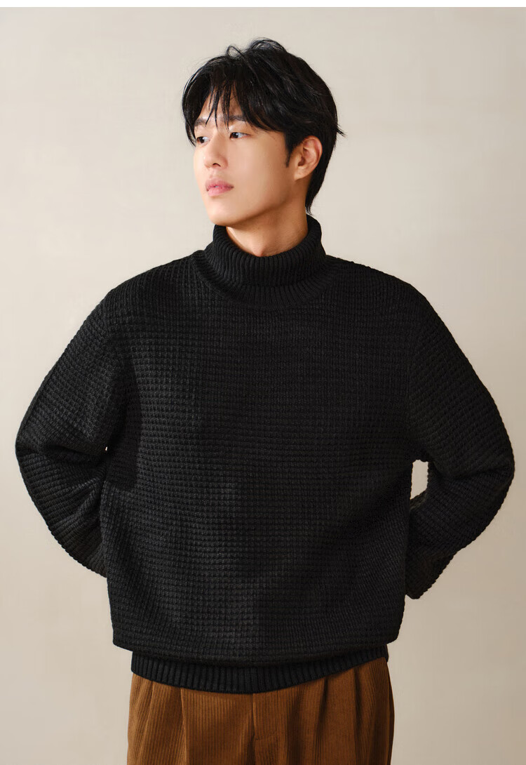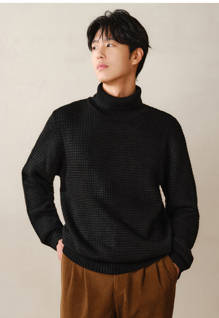 Semir sweater men's turtleneck winter sweater textured cable base sweater black 90001 S