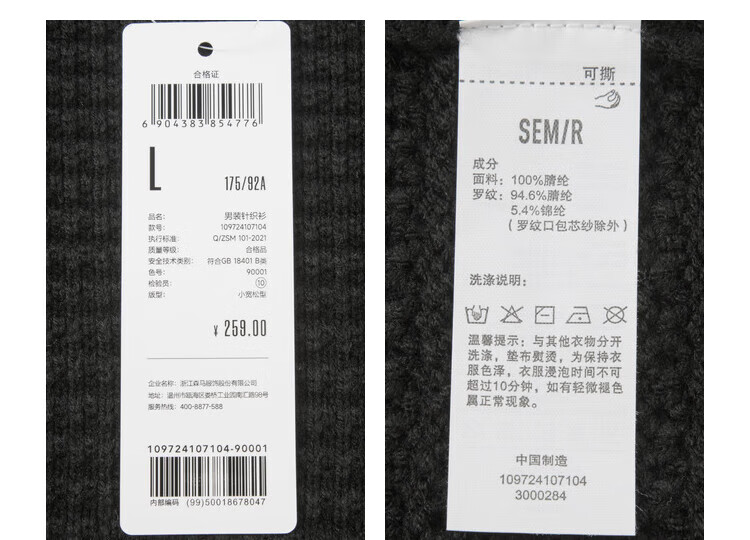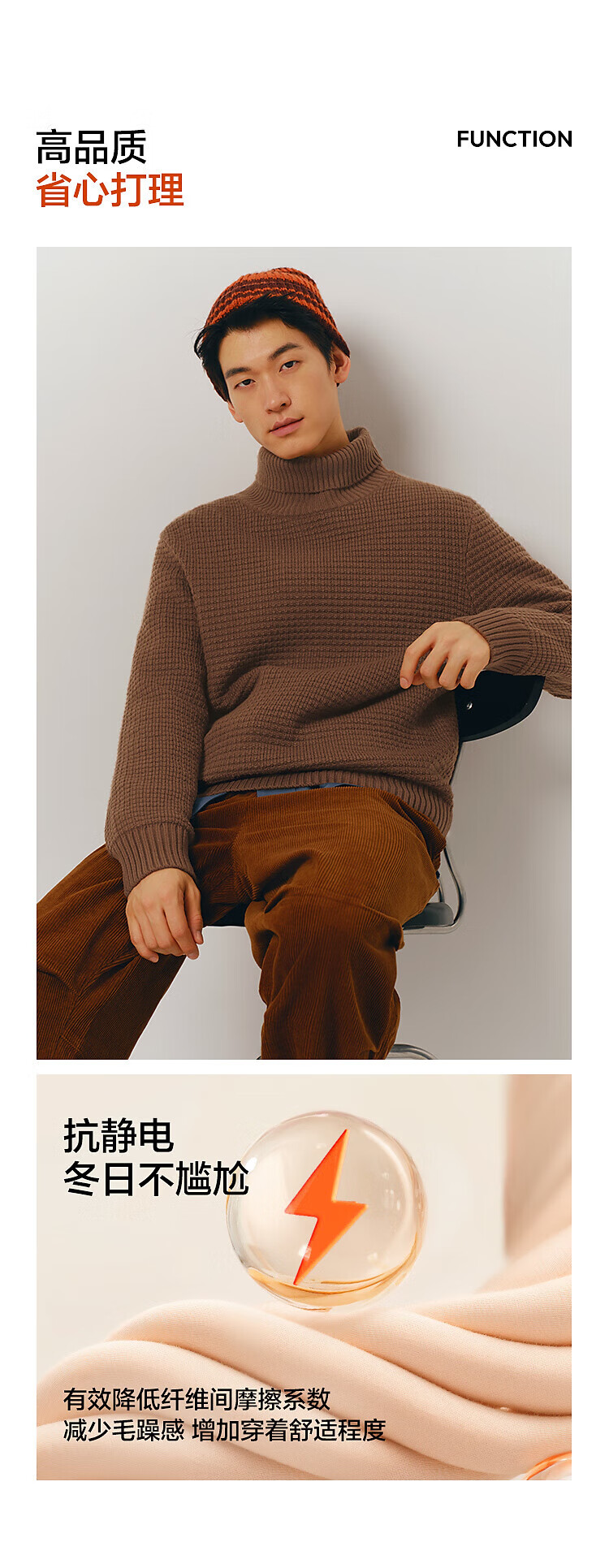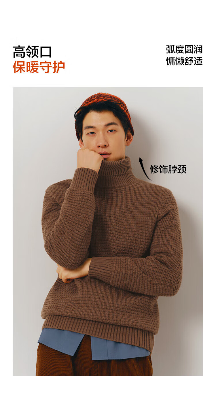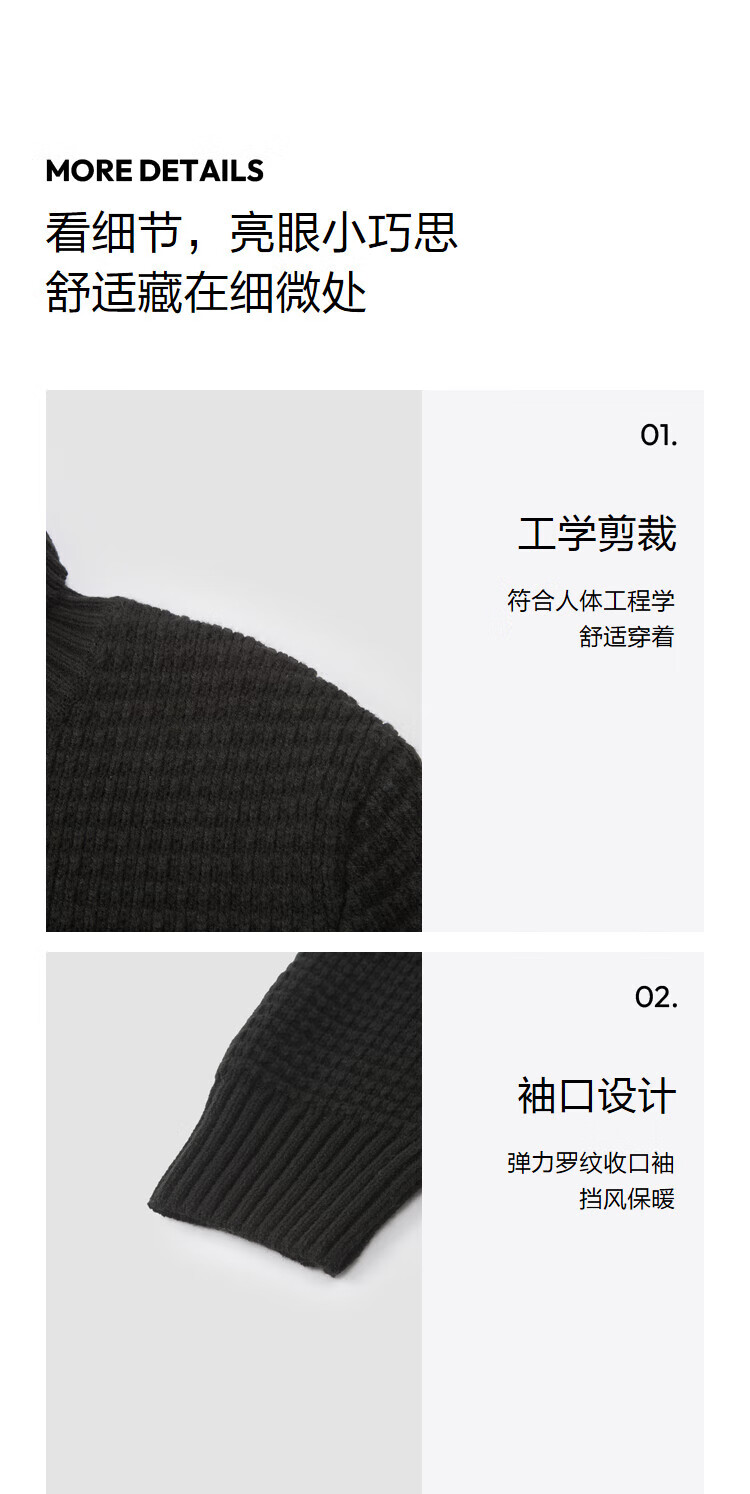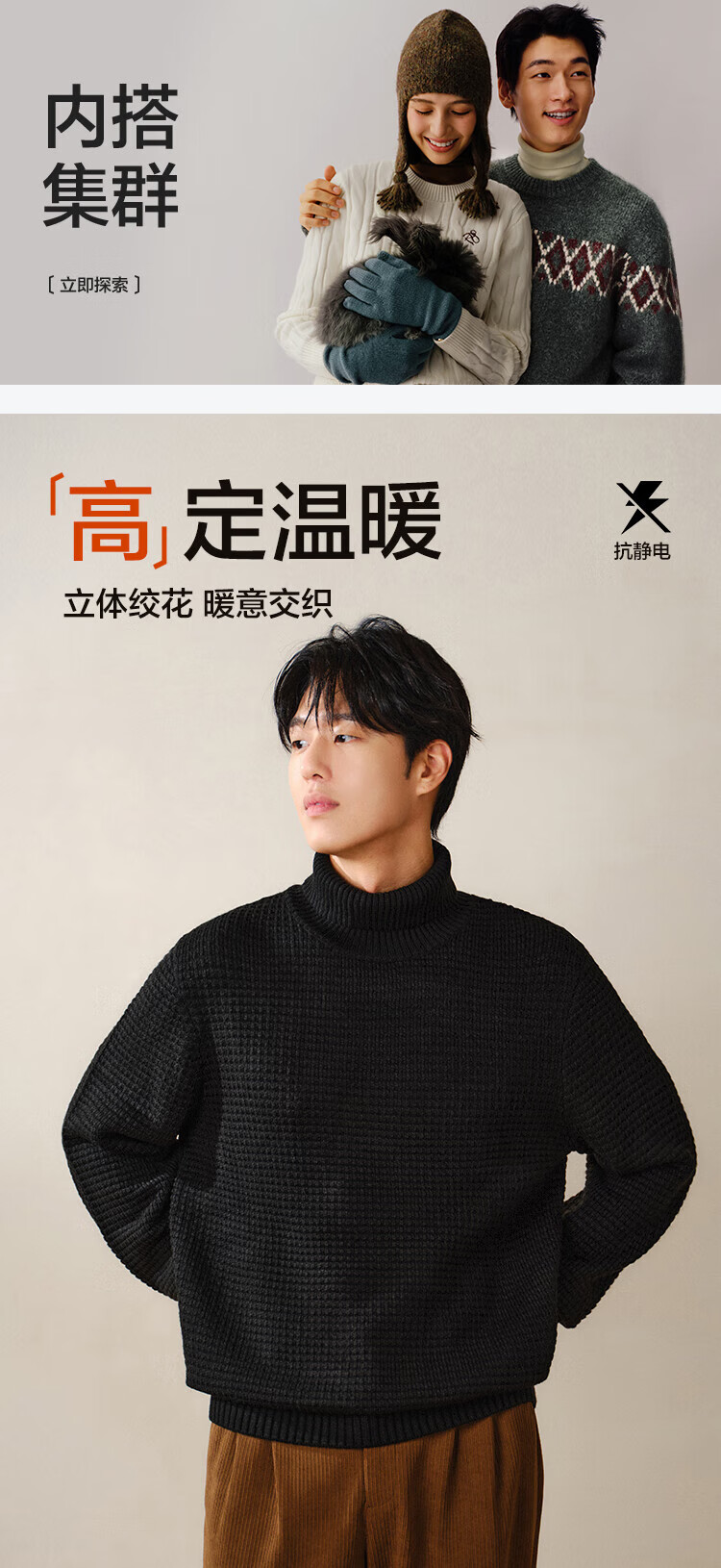Semir sweater men's turtleneck winter sweater textured cable base sweater black 90001 S